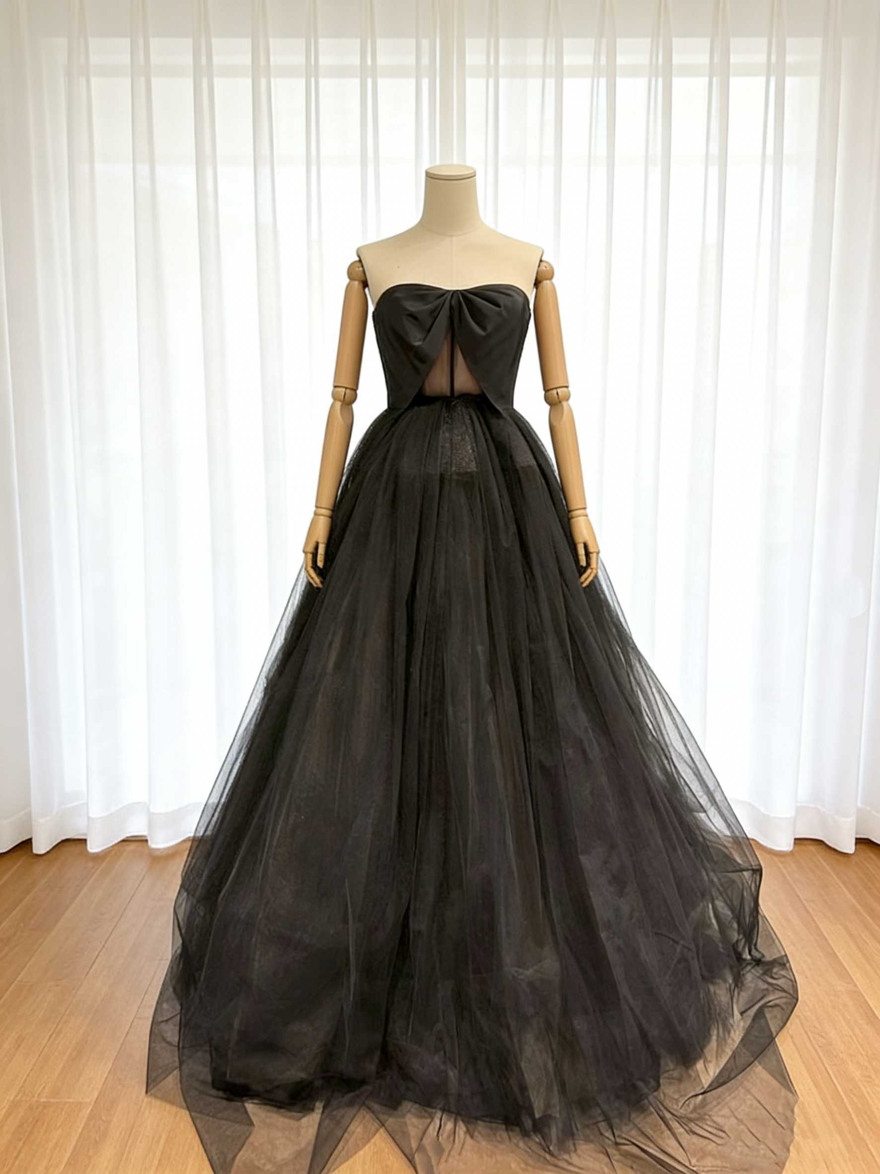 カラードレス ブラック ビスチェドレス 細見えシルエット 柔らかく重ねたチュールスカート 結婚式 エレガント