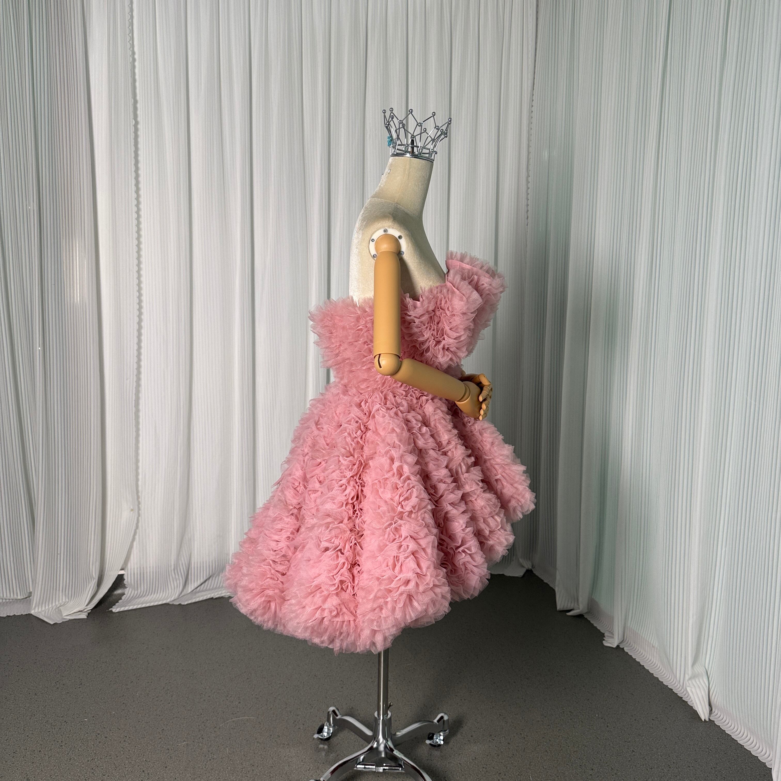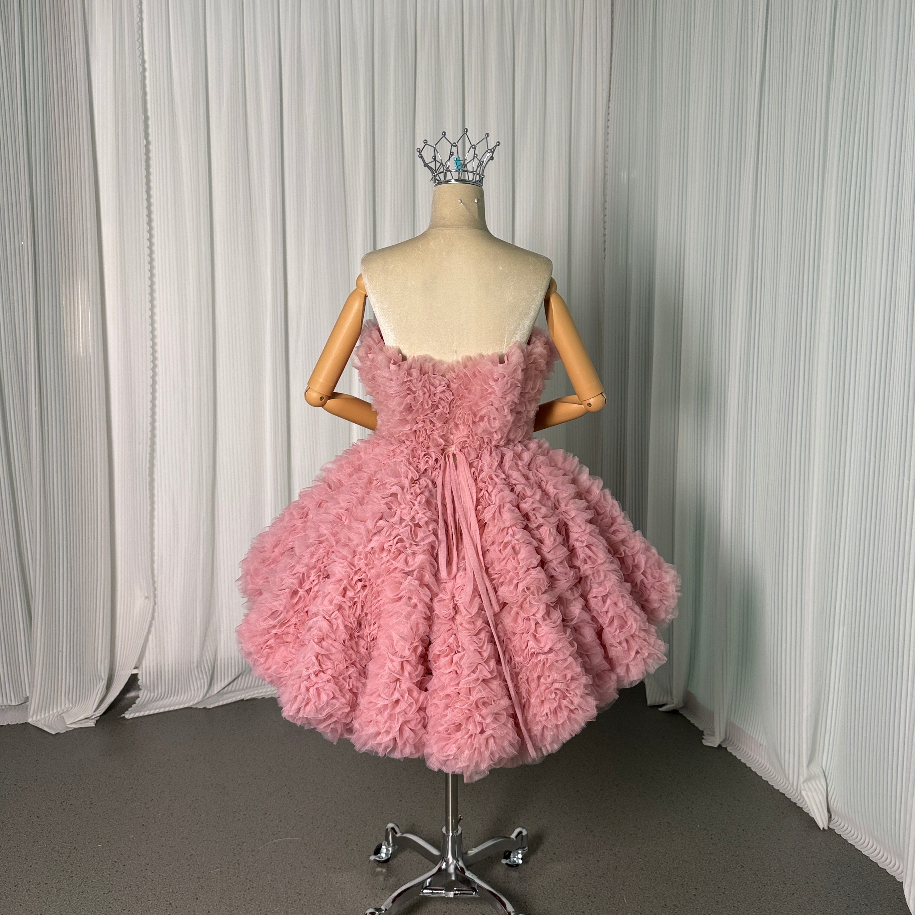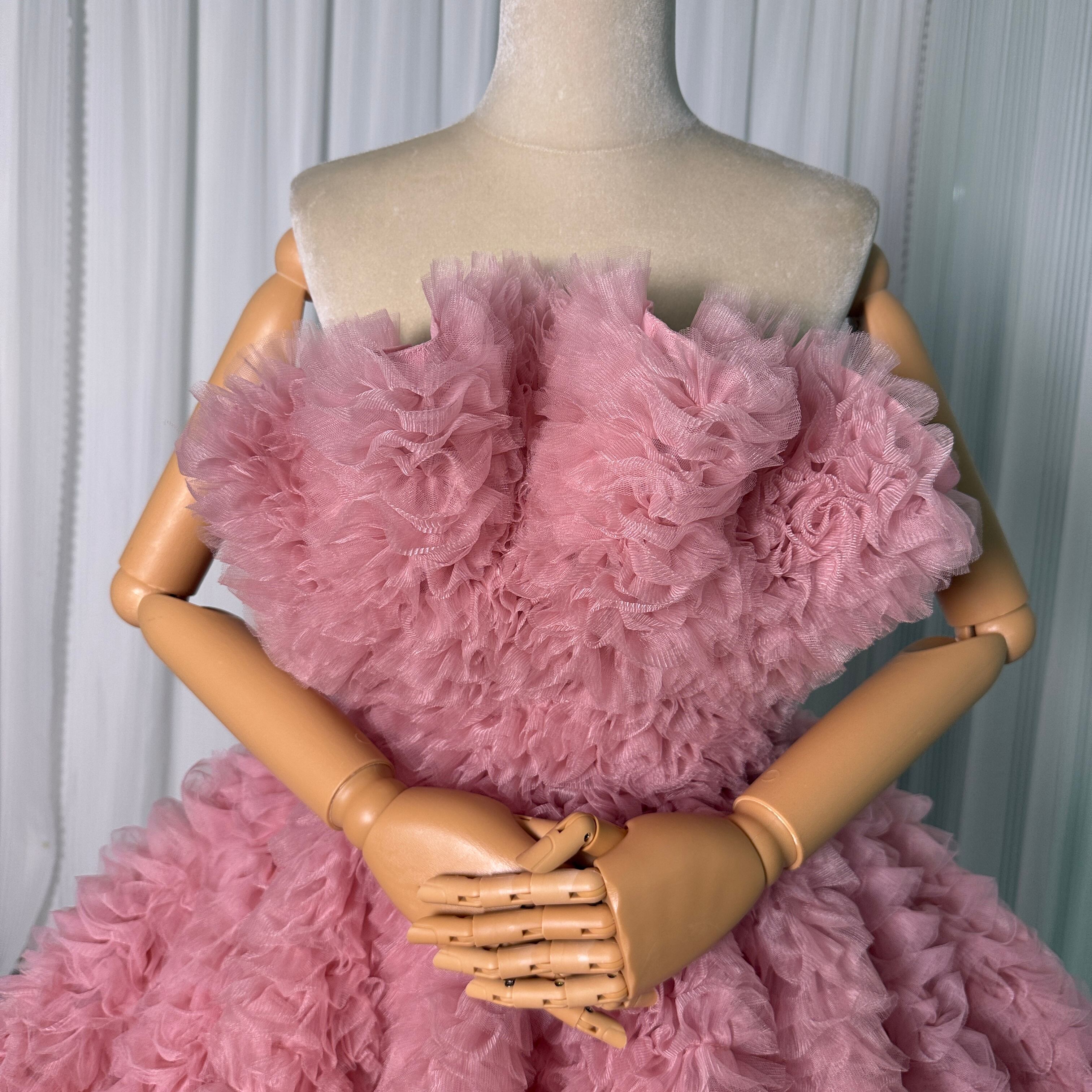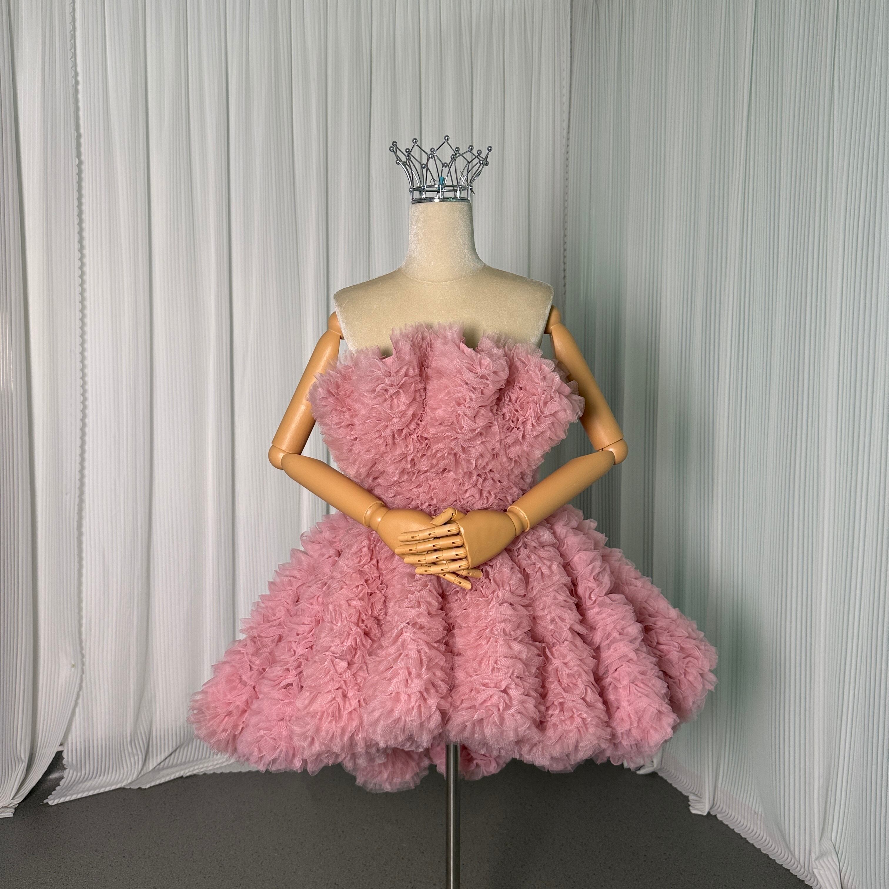 オーバードレス ミニワンピース カラードレス ピンク ラッフルフリル フィッシュテール 前撮り