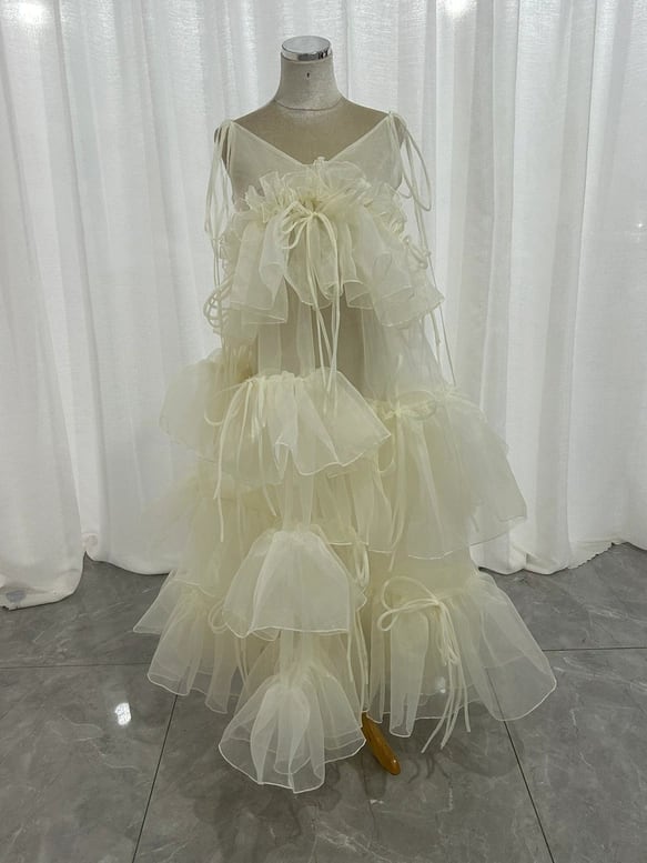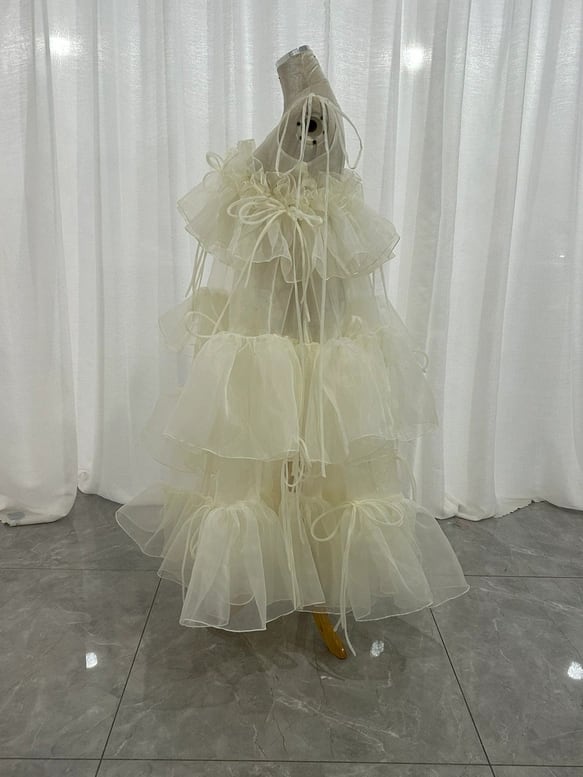 上質オーガンジー チュールドレス パフスリーブ カラードレス 柔らかく重ねたチュールスカートオーバードレス/前撮り/花嫁