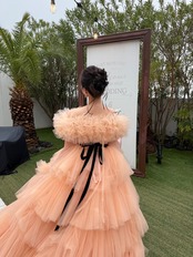 当方は出品するドレス限りではなく、一枚ドレス、リボン、トレーンでもオーダー生産も可能です。お好きなウエディングドレス、パーティー、ステージ衣装、オーバースカートなどの画像を[email protected]もしくはLine :dressodaまで送っていただき、お見積もり致します。お見積もりは完全無料でございます。何かありましたら、取り敢えず一度お問い合わせいただいたら、いかがでしょうか?