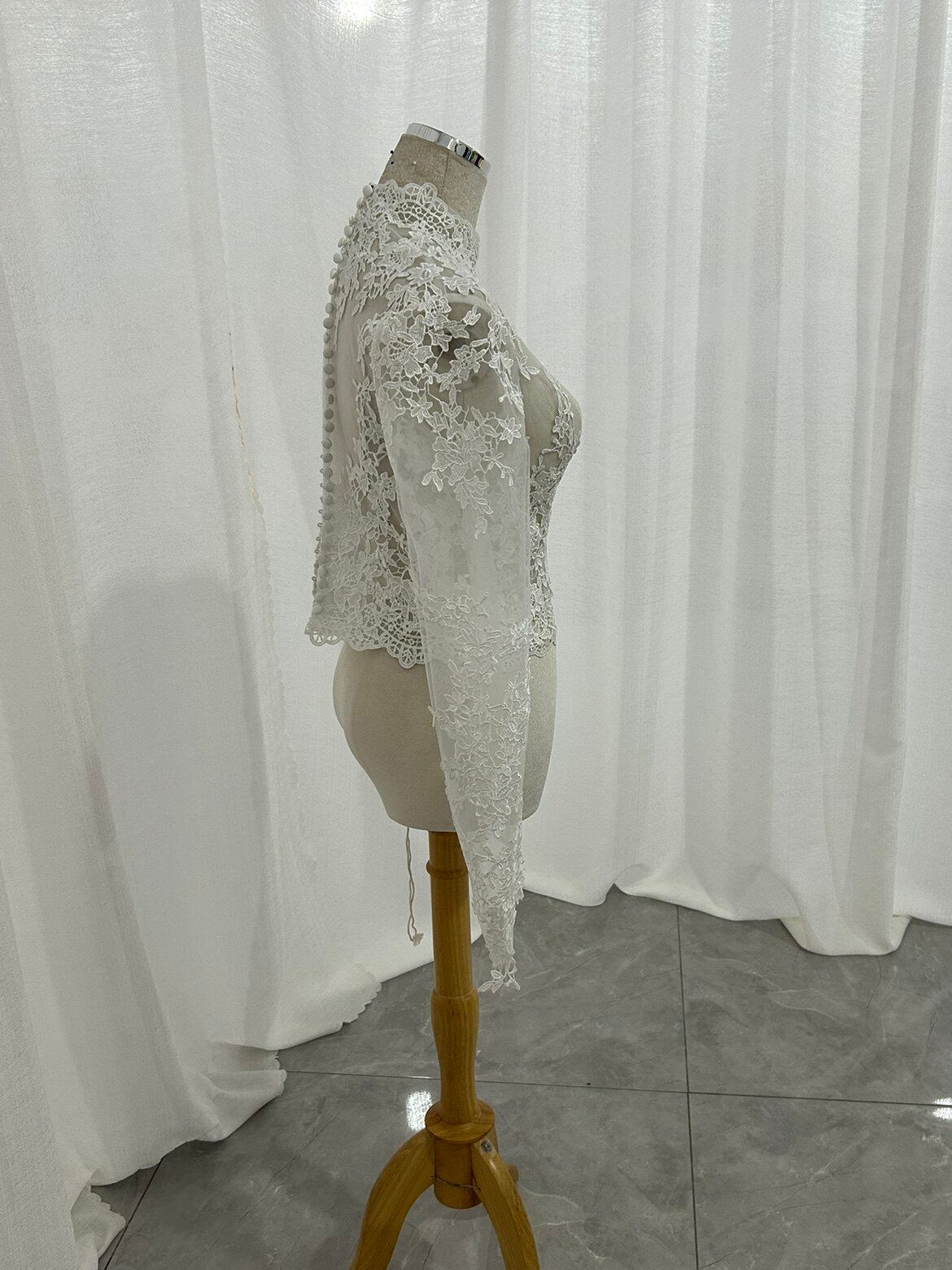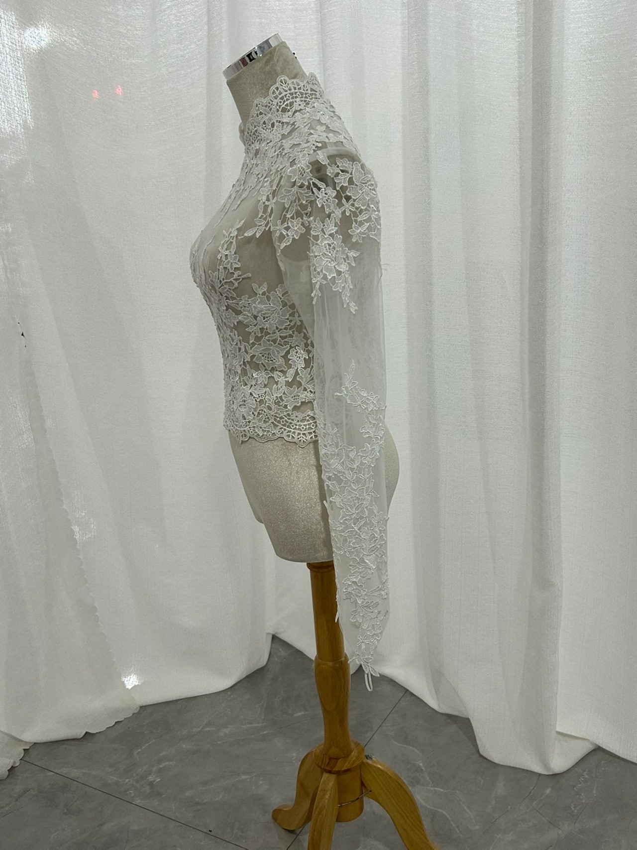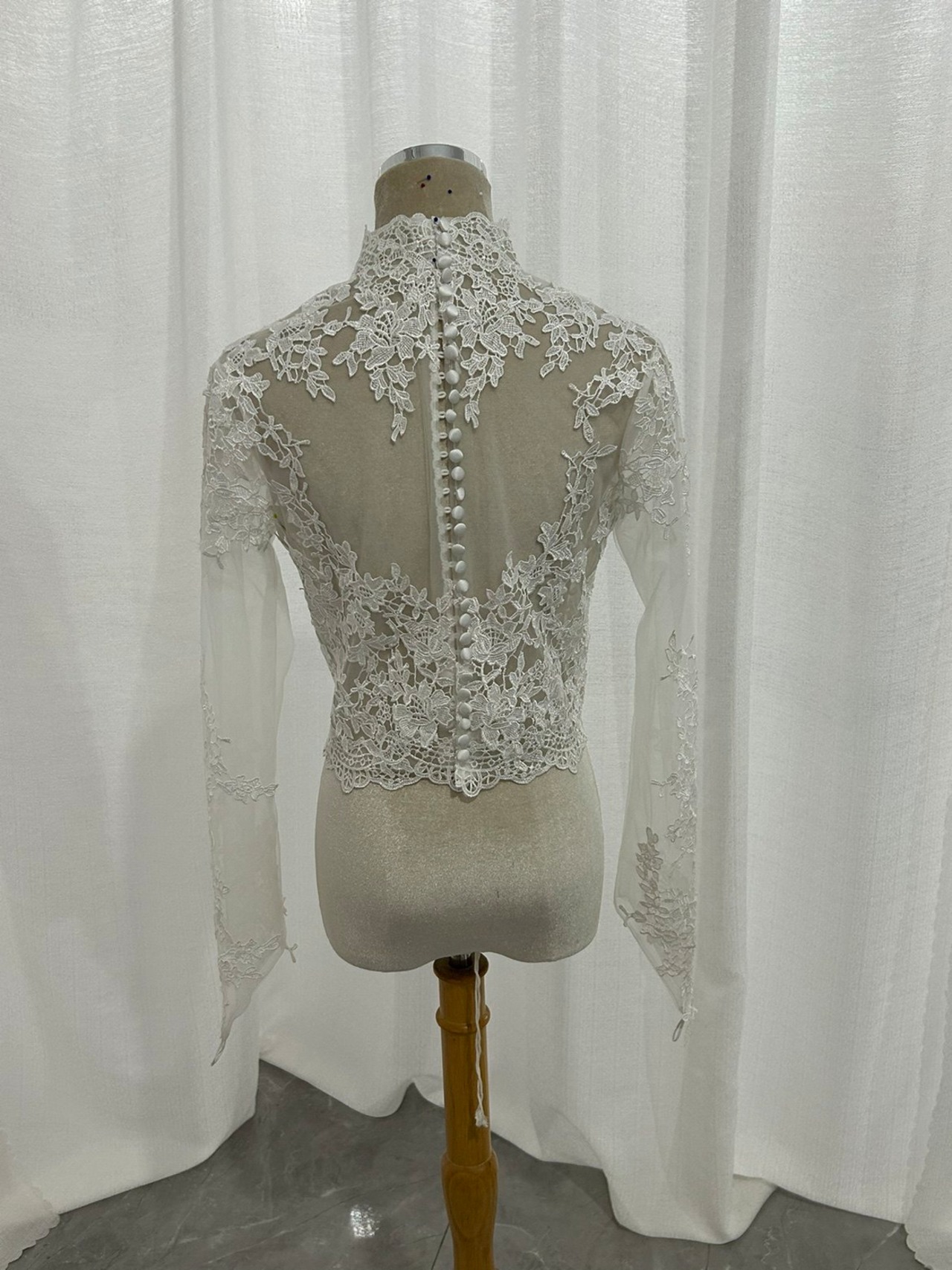 手の甲までカバーするトップス ブラウス 抑えめのハイネック くるみボタン ウエディングドレスアレンジ用ボレロ