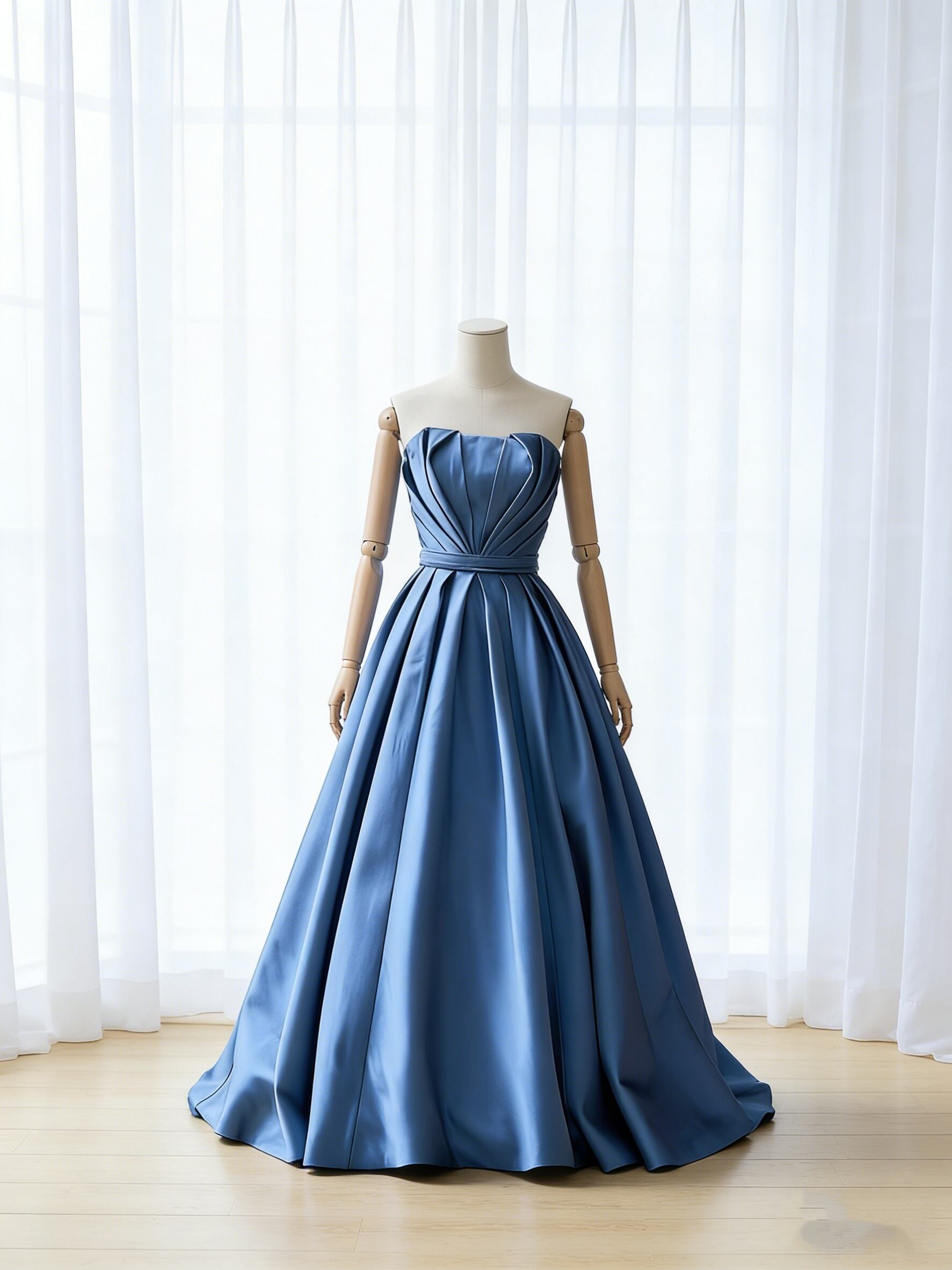 パーティードレス 床付く ハンドドレープ 爽やかで優しいブルー Aライン ピアノ演奏会/音楽会