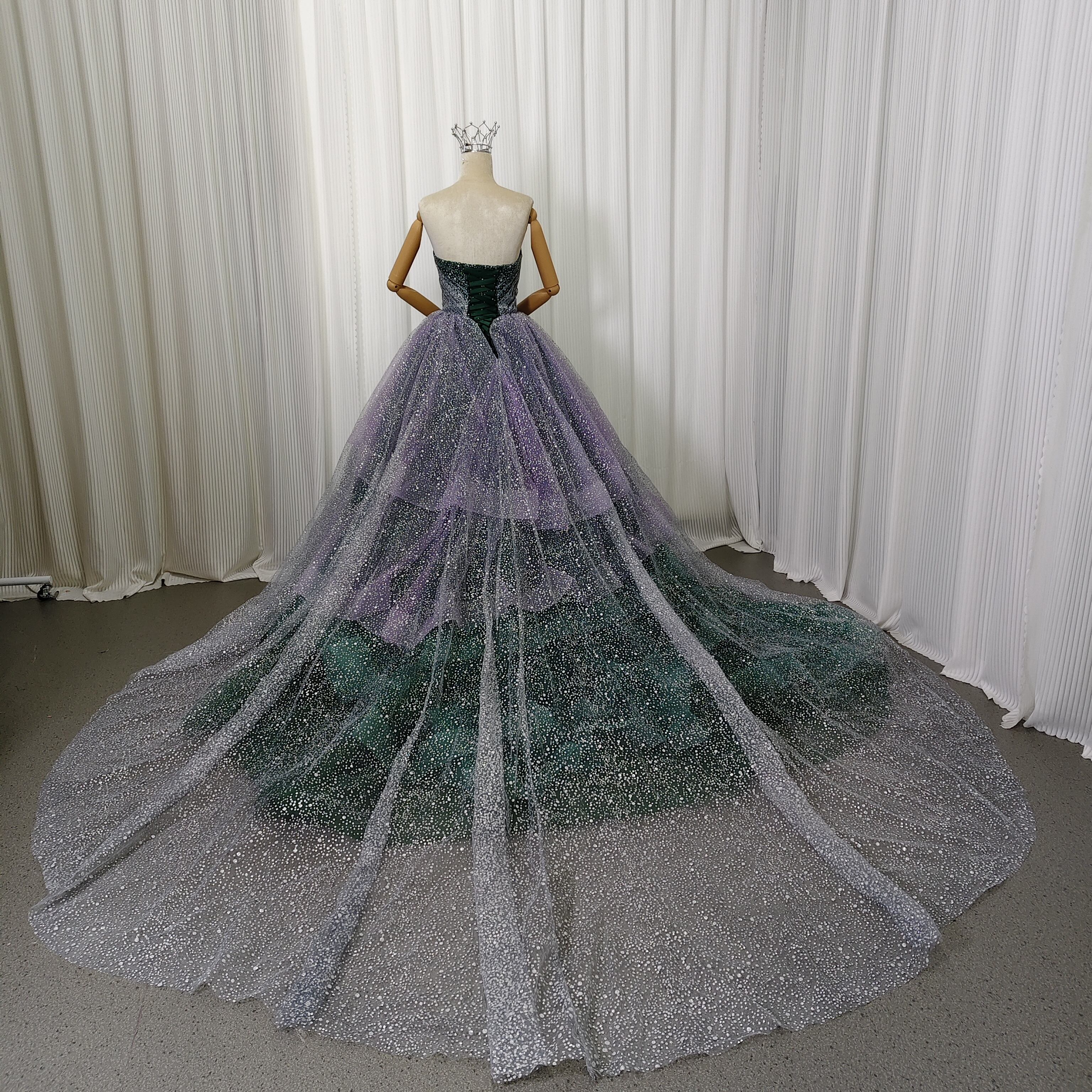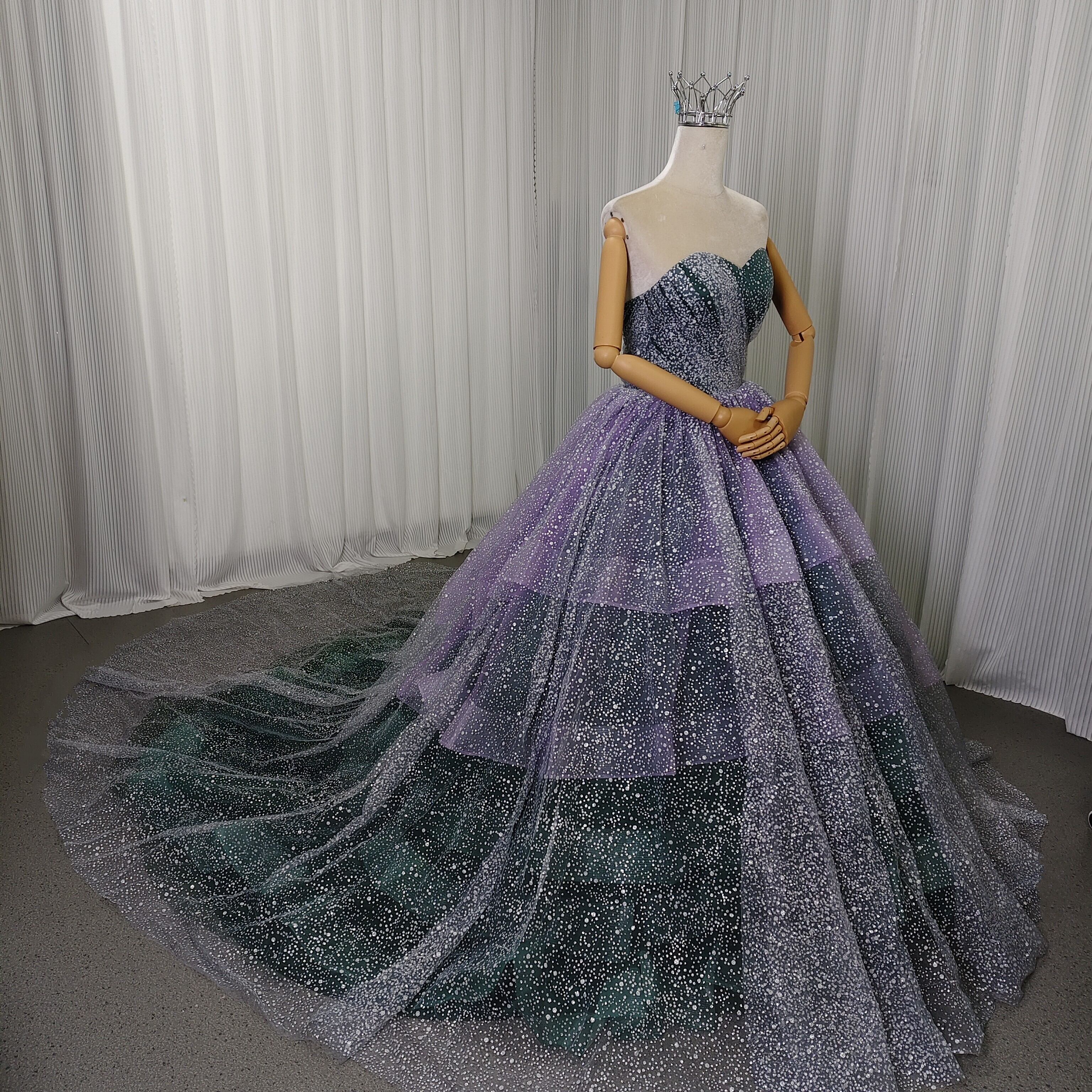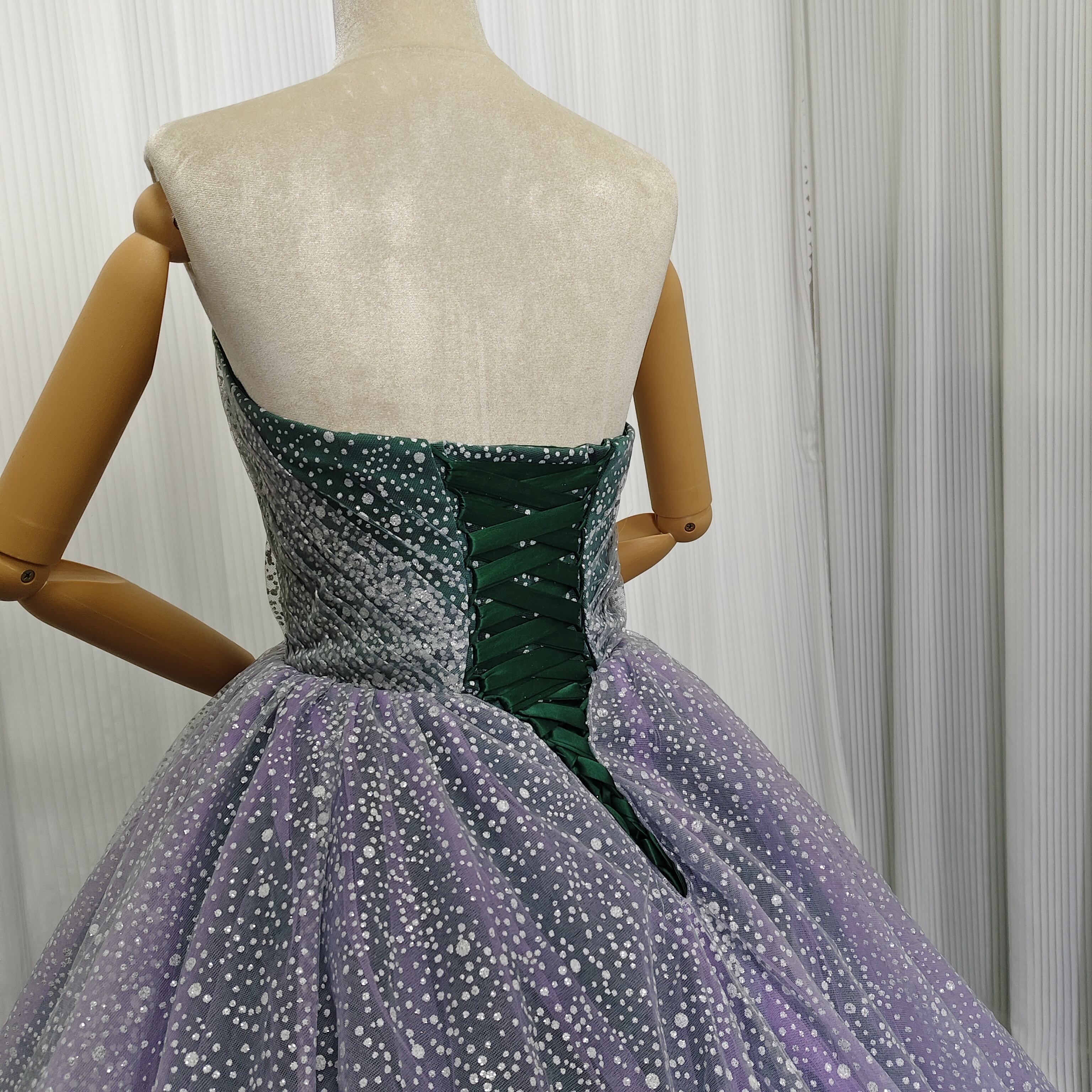 カラードレス ベアトップ パープル グリーン キラキラグリッターチュール 前撮り ブライダル クラシカル