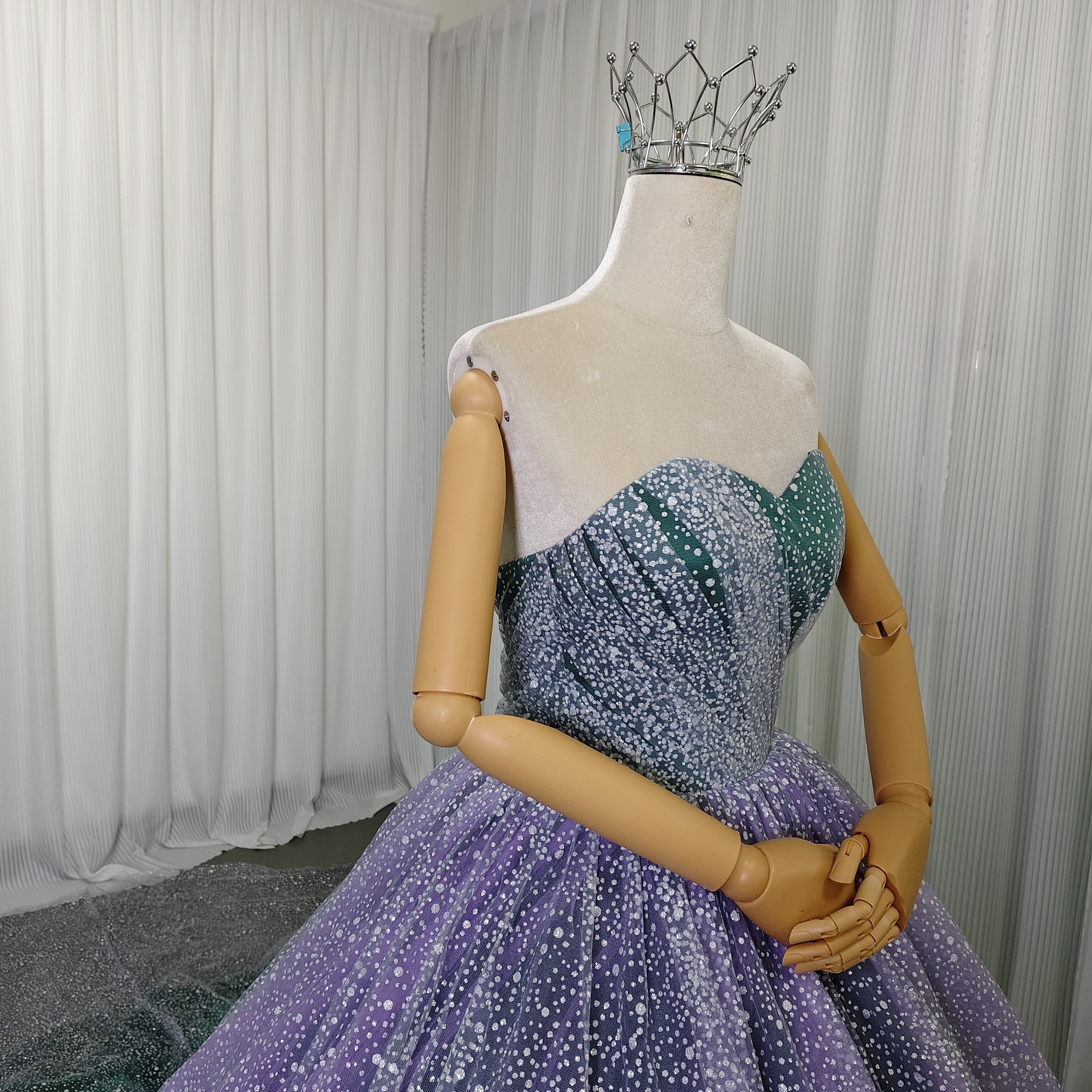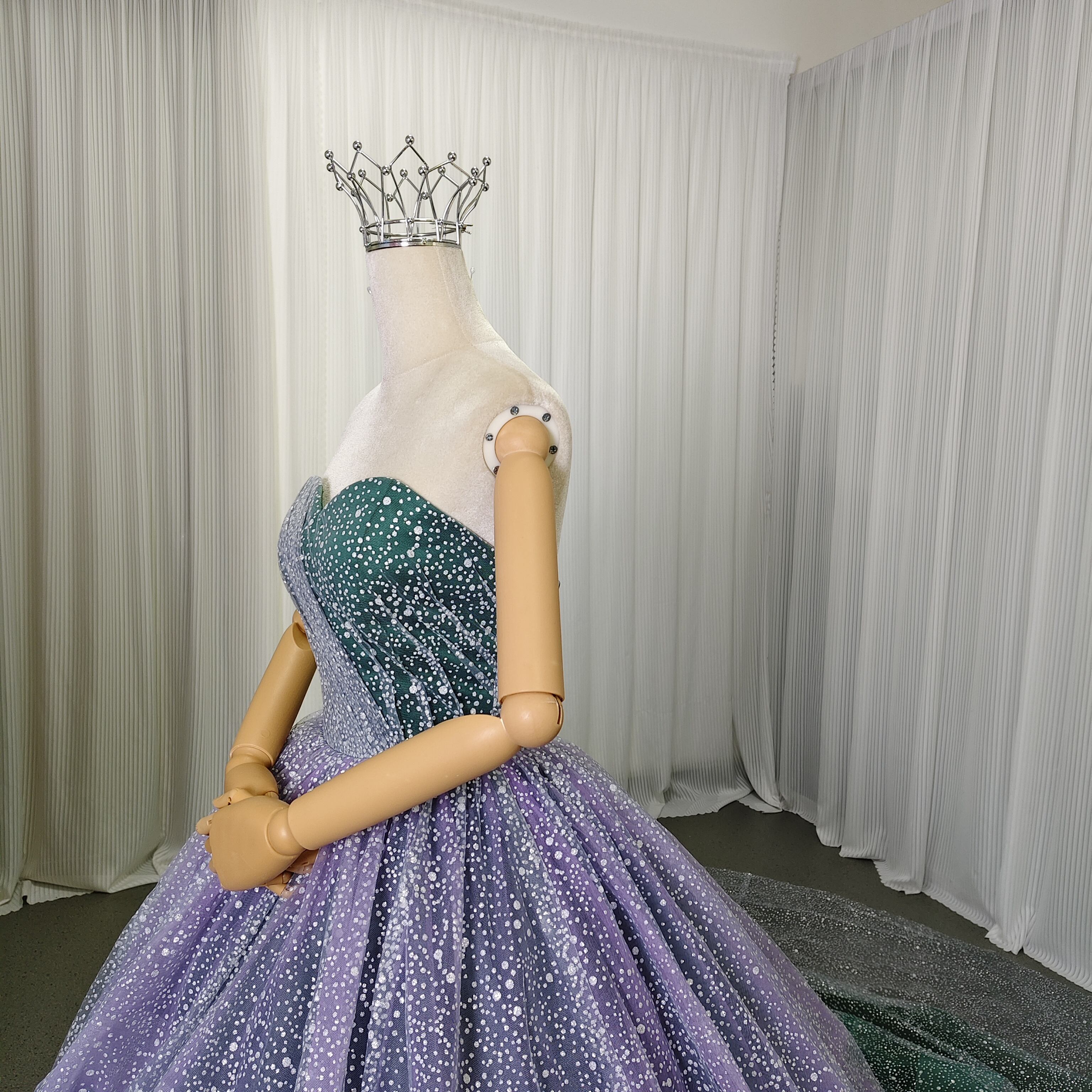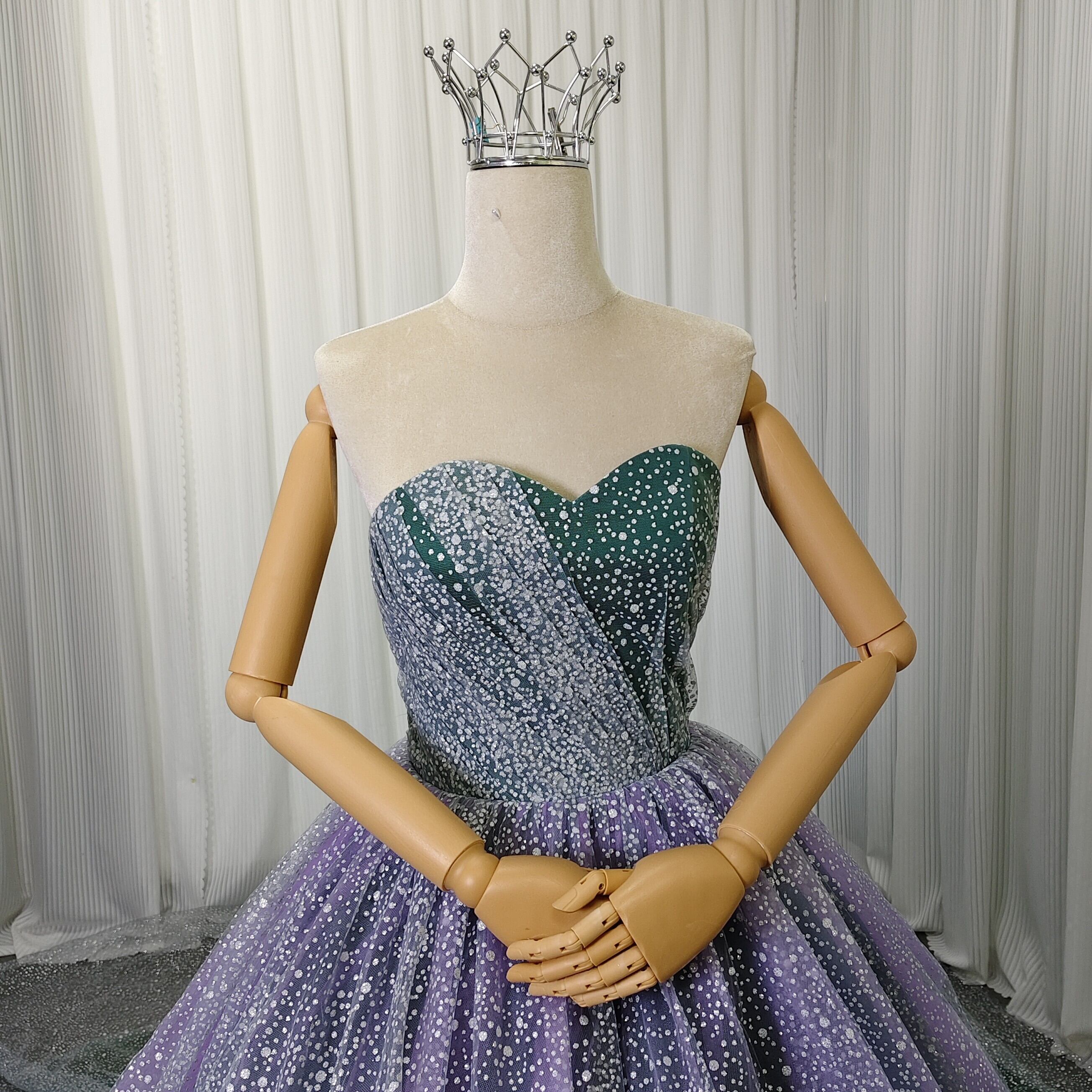 カラードレス ベアトップ パープル グリーン キラキラグリッターチュール 前撮り ブライダル クラシカル