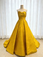 カラードレス イエロー ハンドドレープ 優雅なシルエット 前撮り 光沢サテン スレンダーライン 二次会