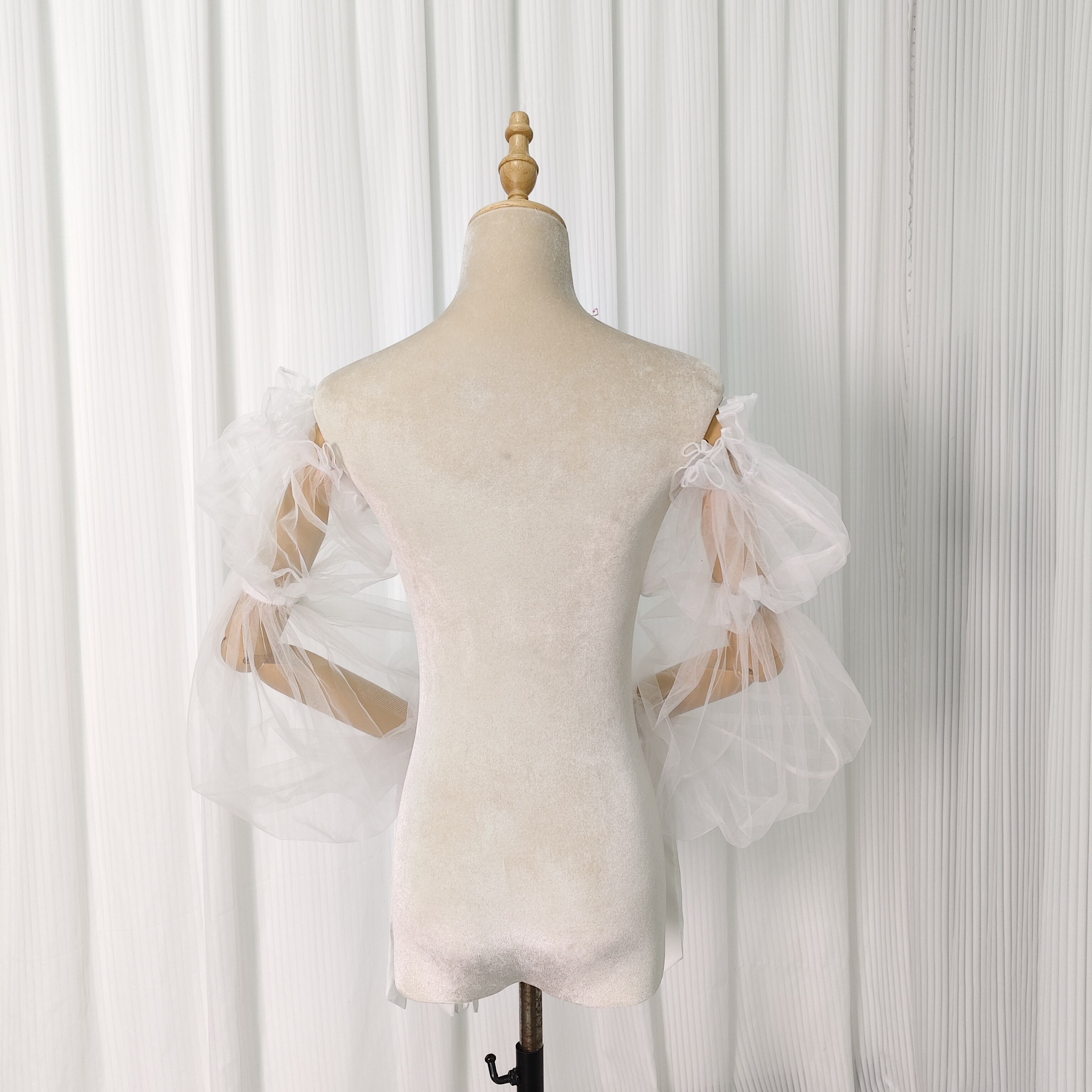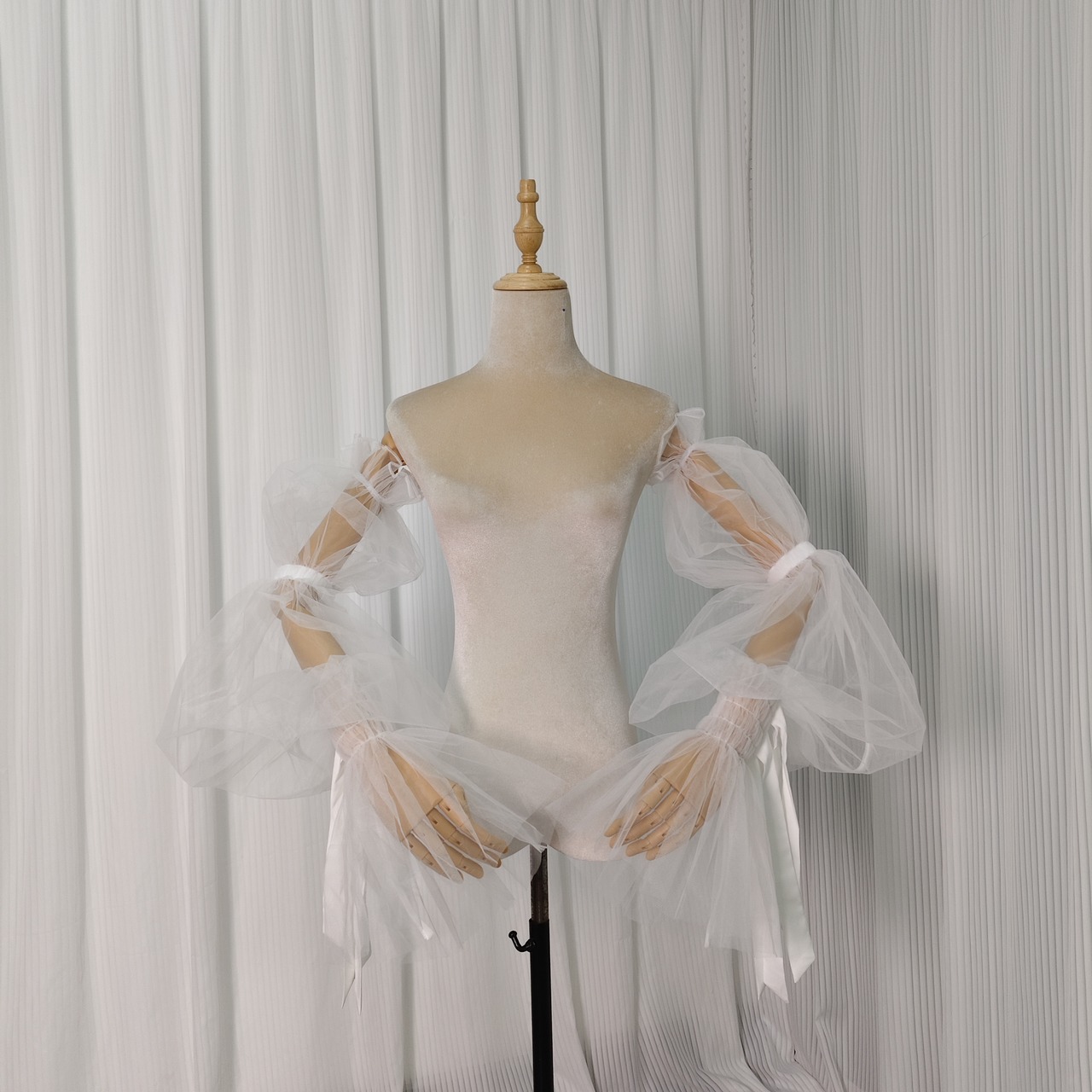 取り外し可能な付け袖 オフホワイト ストレッチ 前撮り 花嫁/ウェディングドレス オーダーメイド可能