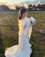 実例写真! 人気上昇!ウェディングドレス ツーピース アイボリー クレープ生地 ブライダル トップス 前撮り