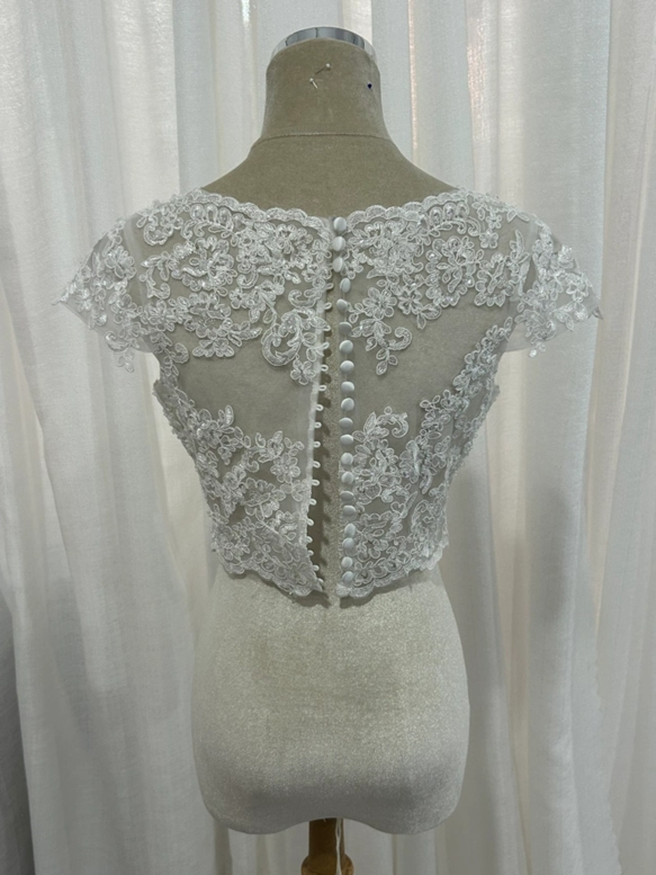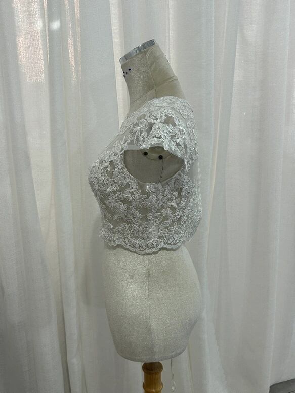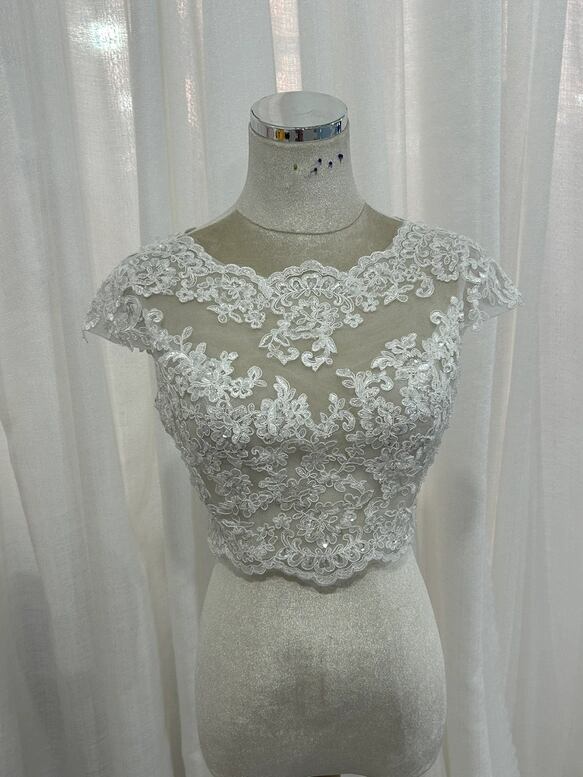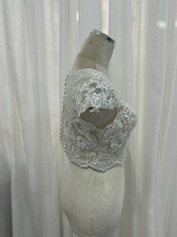 エレガント ウエディングドレス キラキラのハンドビーディング ボレロ レース くるみボタン結婚式/披露宴