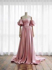 コピー:パーティードレス プリーツドレス ベアトップ 床付く 取り外し袖 シルクタフタ オフホワイト 披露宴/結婚式