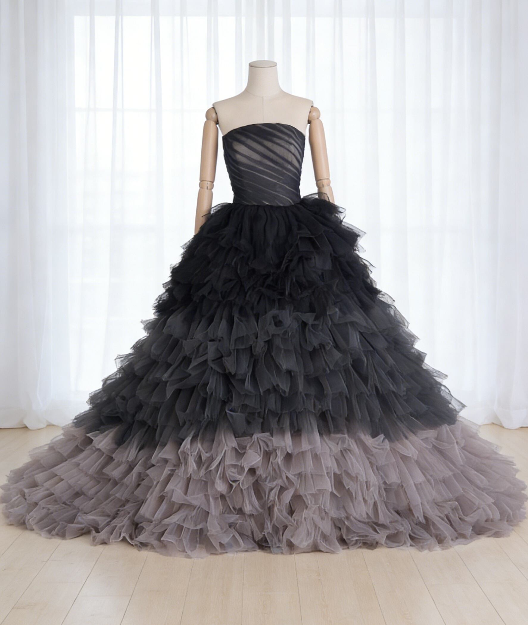 カラードレス ブラック グレー ビスチェドレス ハンドドレープ エレガント ボリュームドレス 結婚式