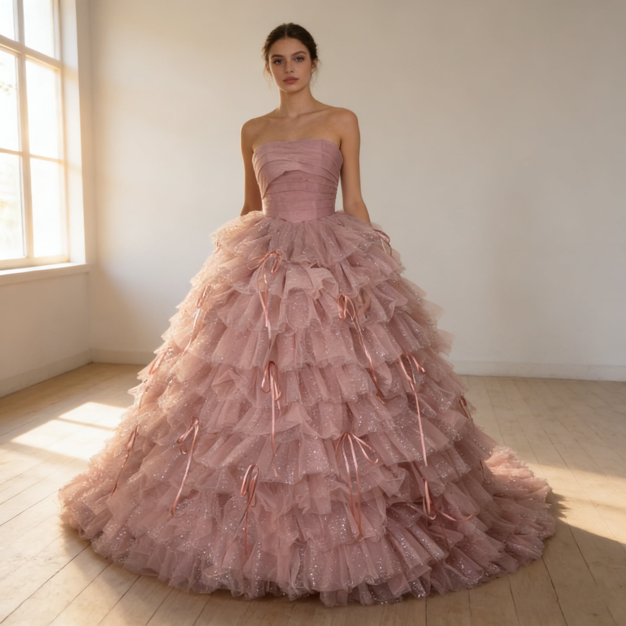 カラードレス リボン ビスチェドレス もこもこドレス ふわふわドレス キラキラグリッターチュール 結婚式