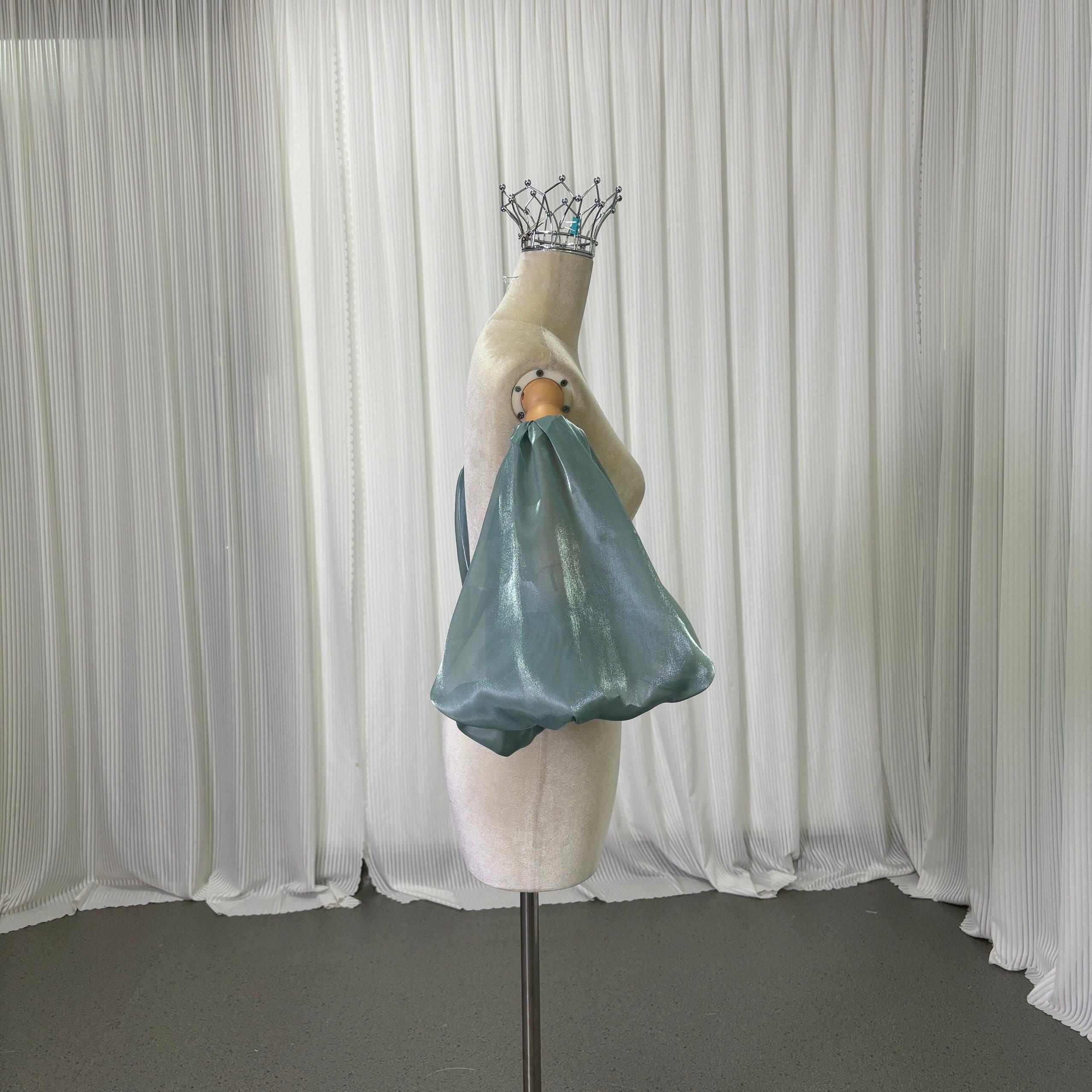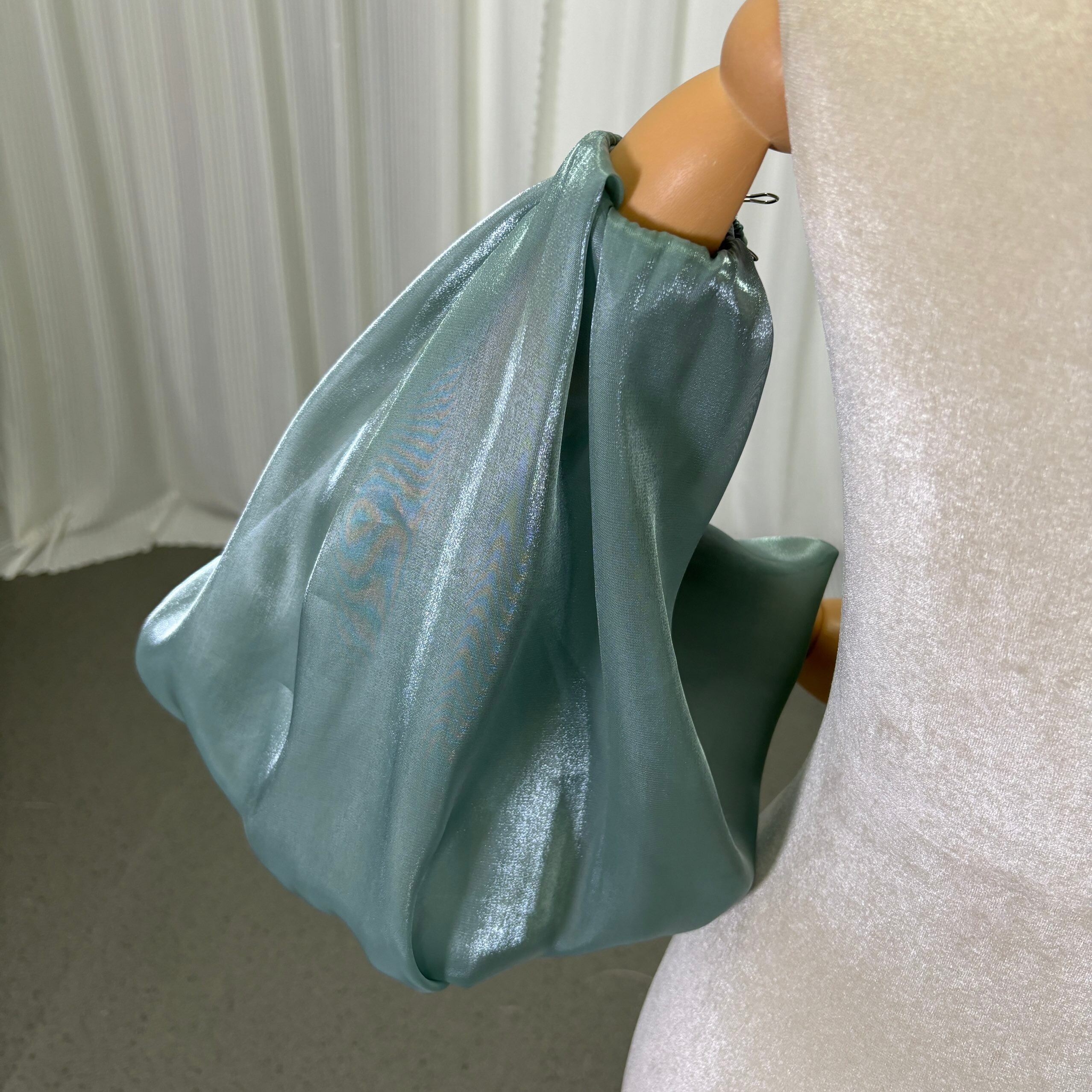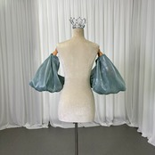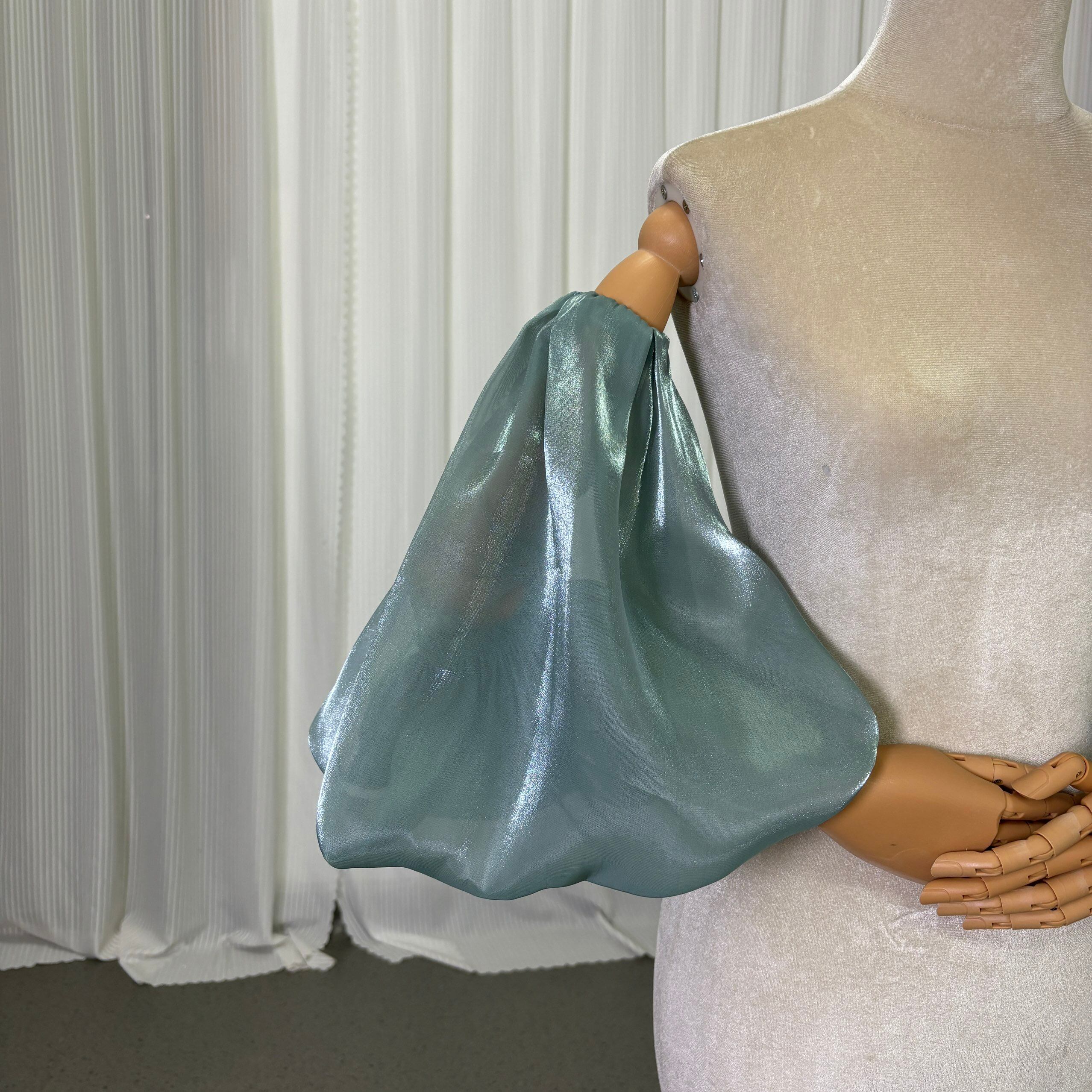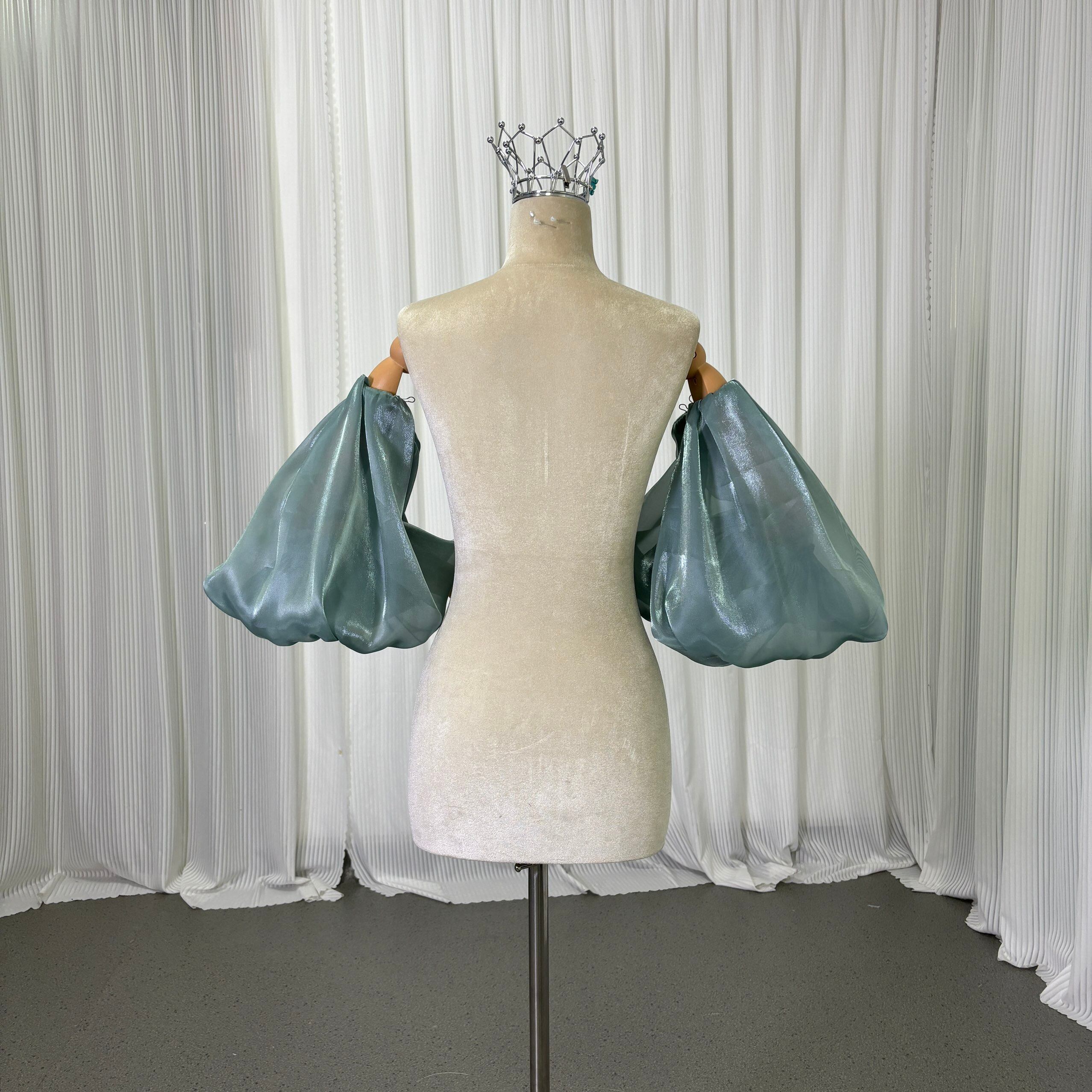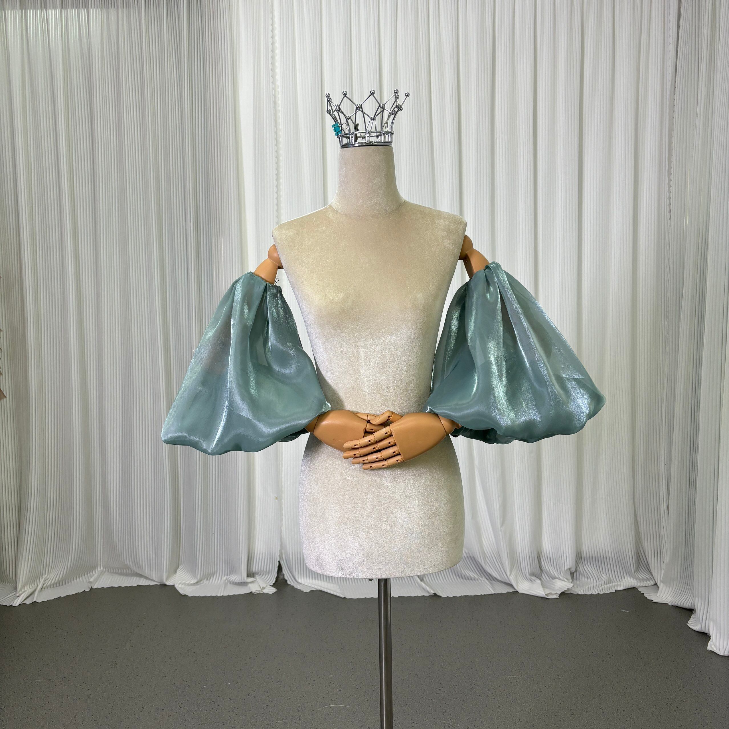 取り外し可能な付け袖 グリーン ストレッチ オーダーメイド可能 花嫁 前撮り 光沢 パフスリーブ