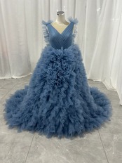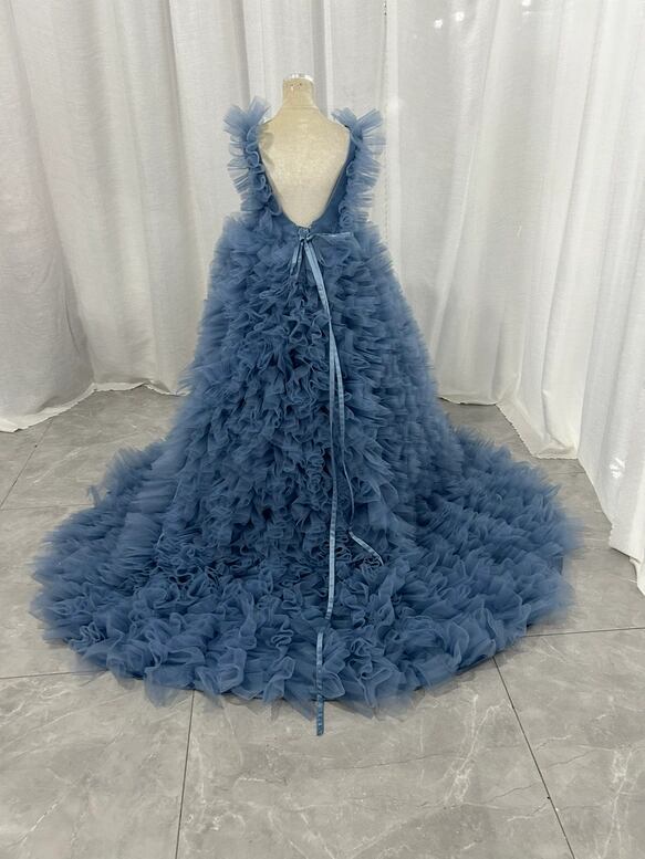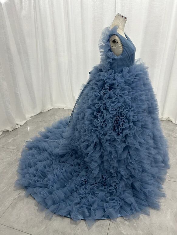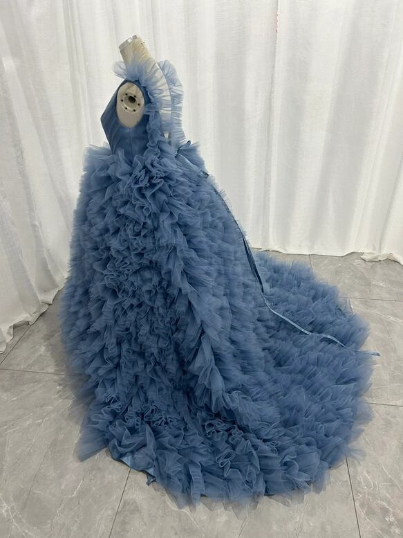 もこもこカラードレス 青 ブラック 重ねたチュールスカート挙式/前撮り/結婚式