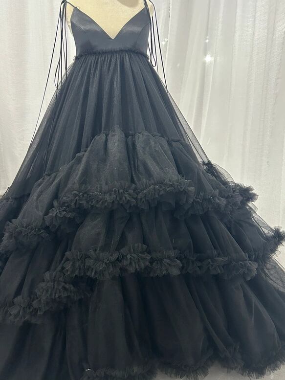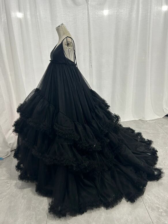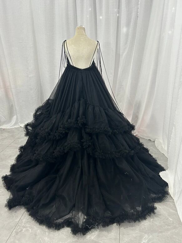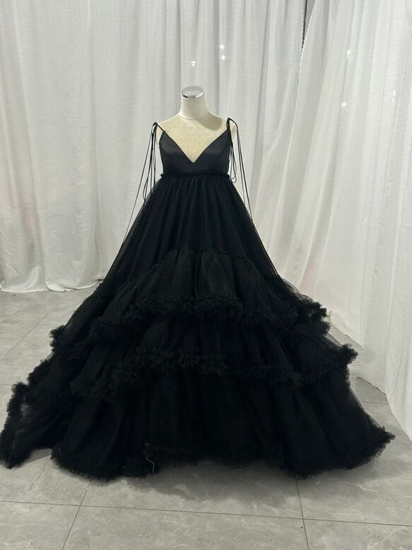 韓国風もこもこウエディングドレス 黒 カラードレス ふんわり チュール ボリュームたっぷり 花嫁/挙式/前撮り/結婚式