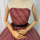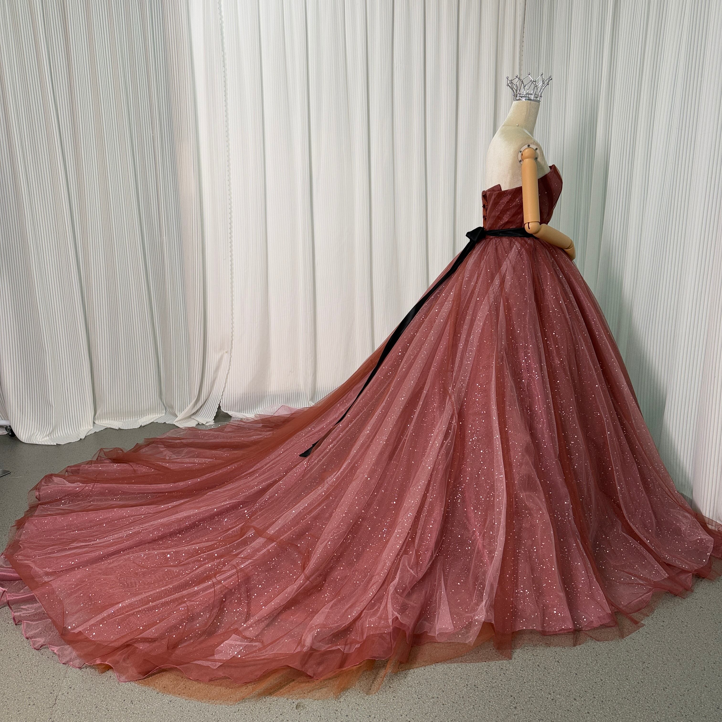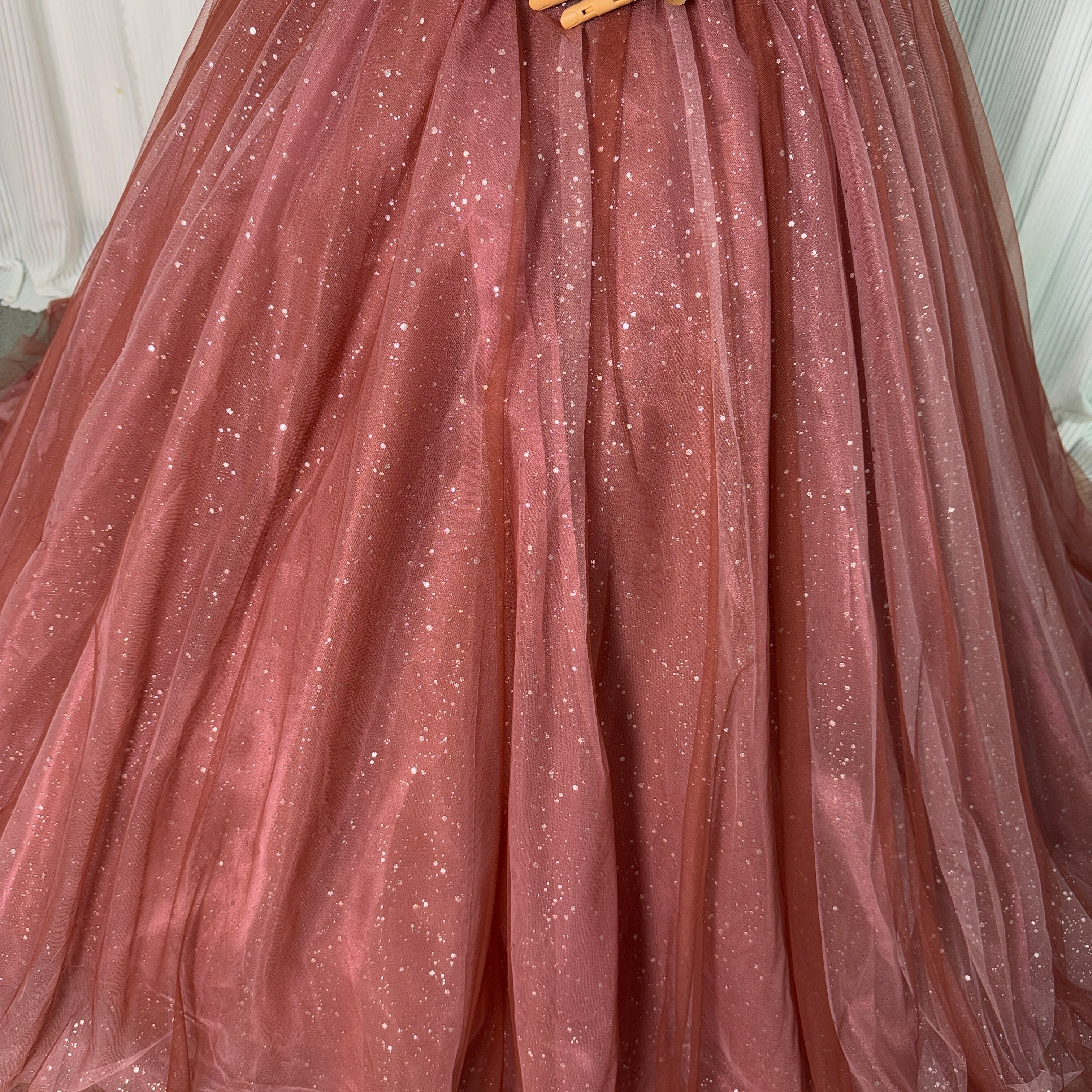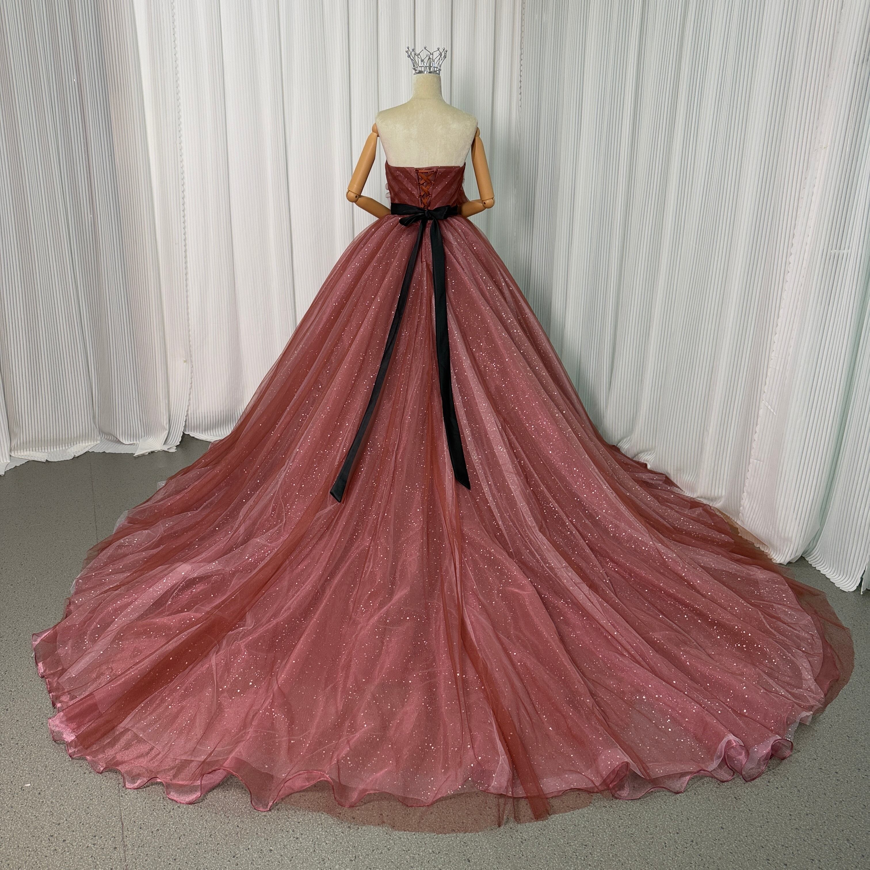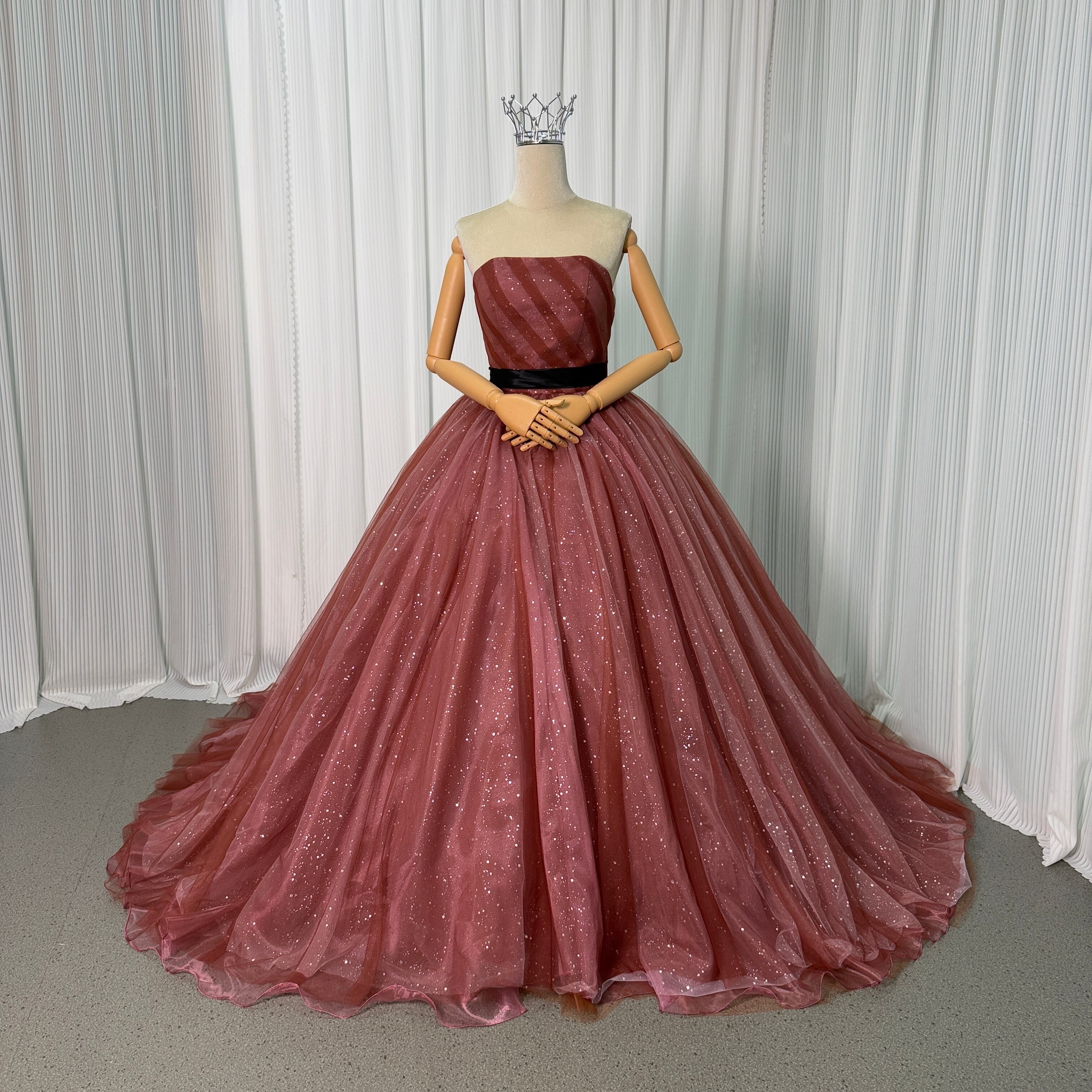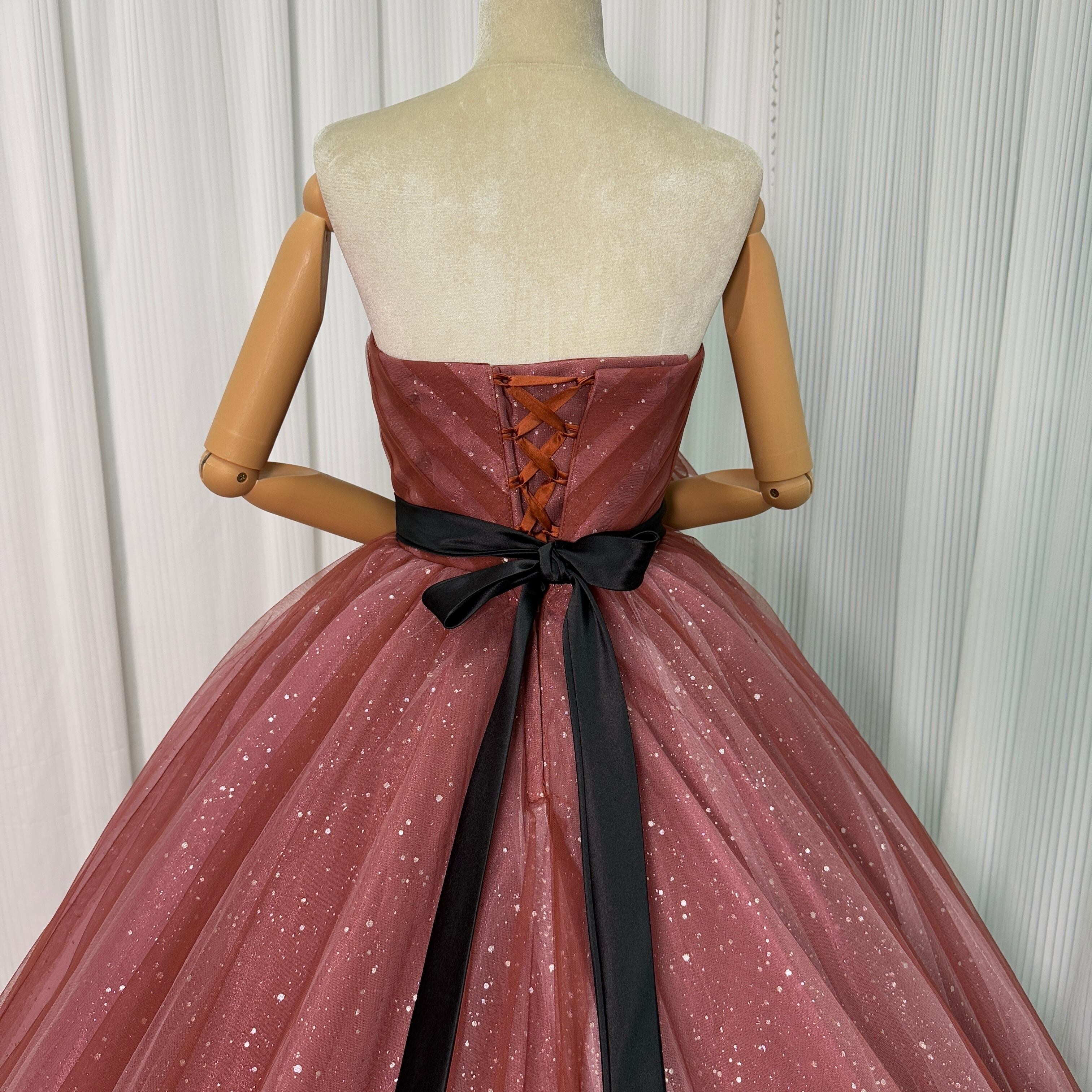 カラードレス ビスチェドレス テラコッタ色 キラキラグリッターチュール ベルト 編み上げ 結婚式