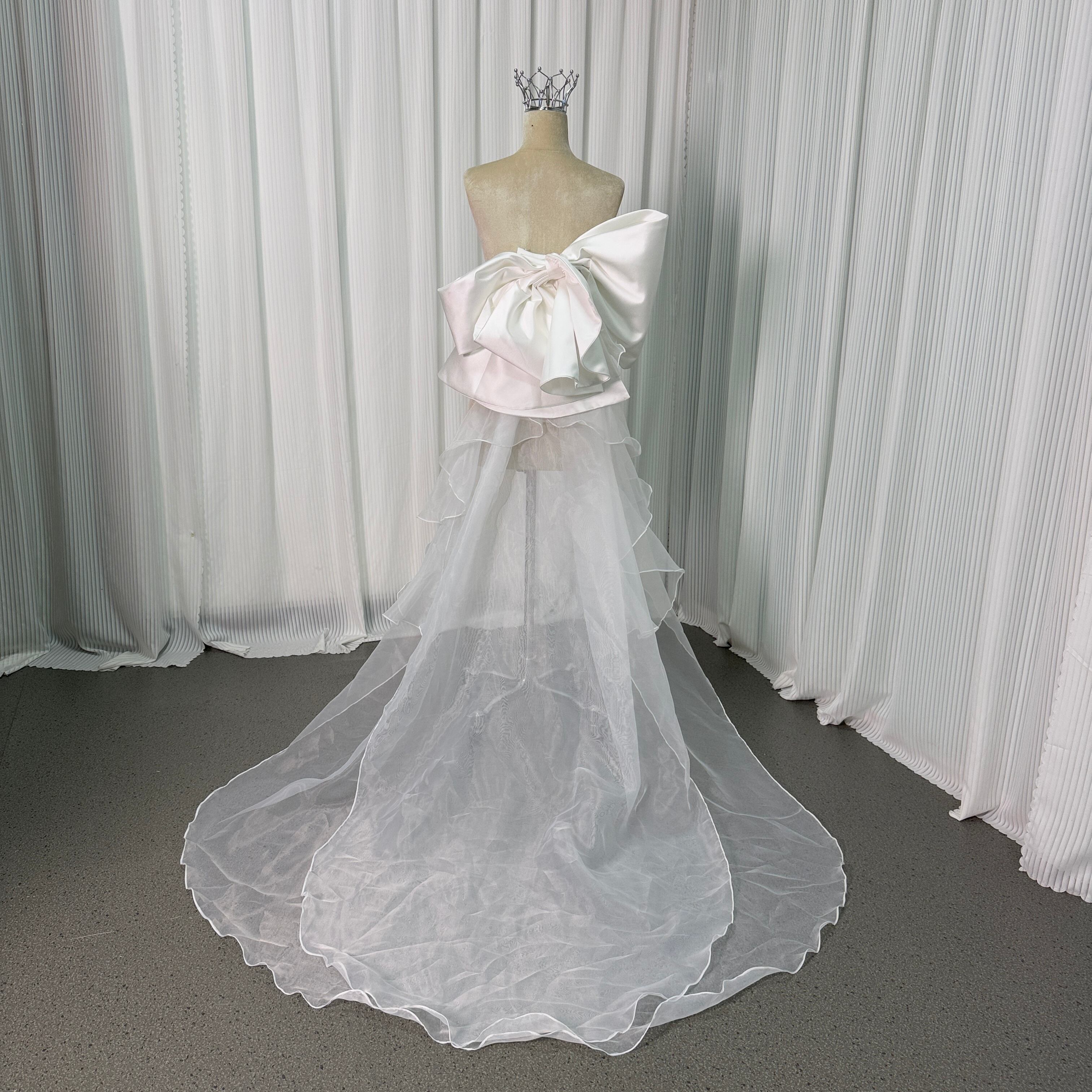 リボントレーン ふっくら柔らかなバックリボン 上質オーガンジー 光沢サテン 花嫁/ウェディングドレス