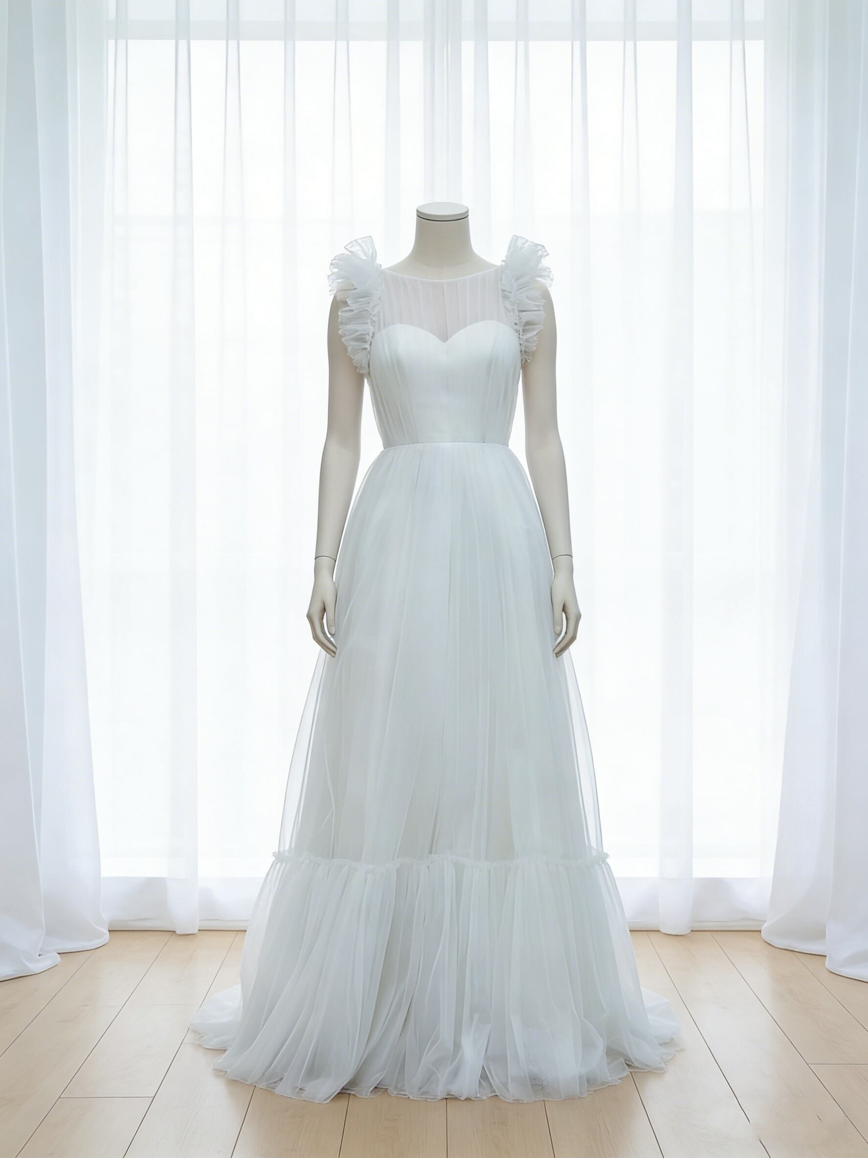 ウエディングドレス ノースリーブ オンショルダードレス ロング チュールスカート 結婚式 二次会