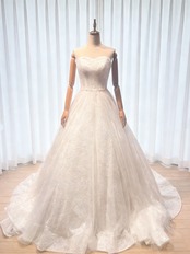 ウェディングドレス パール 韓国風ドレス ベアトップ 結婚式 Aライン インポートビジューレース