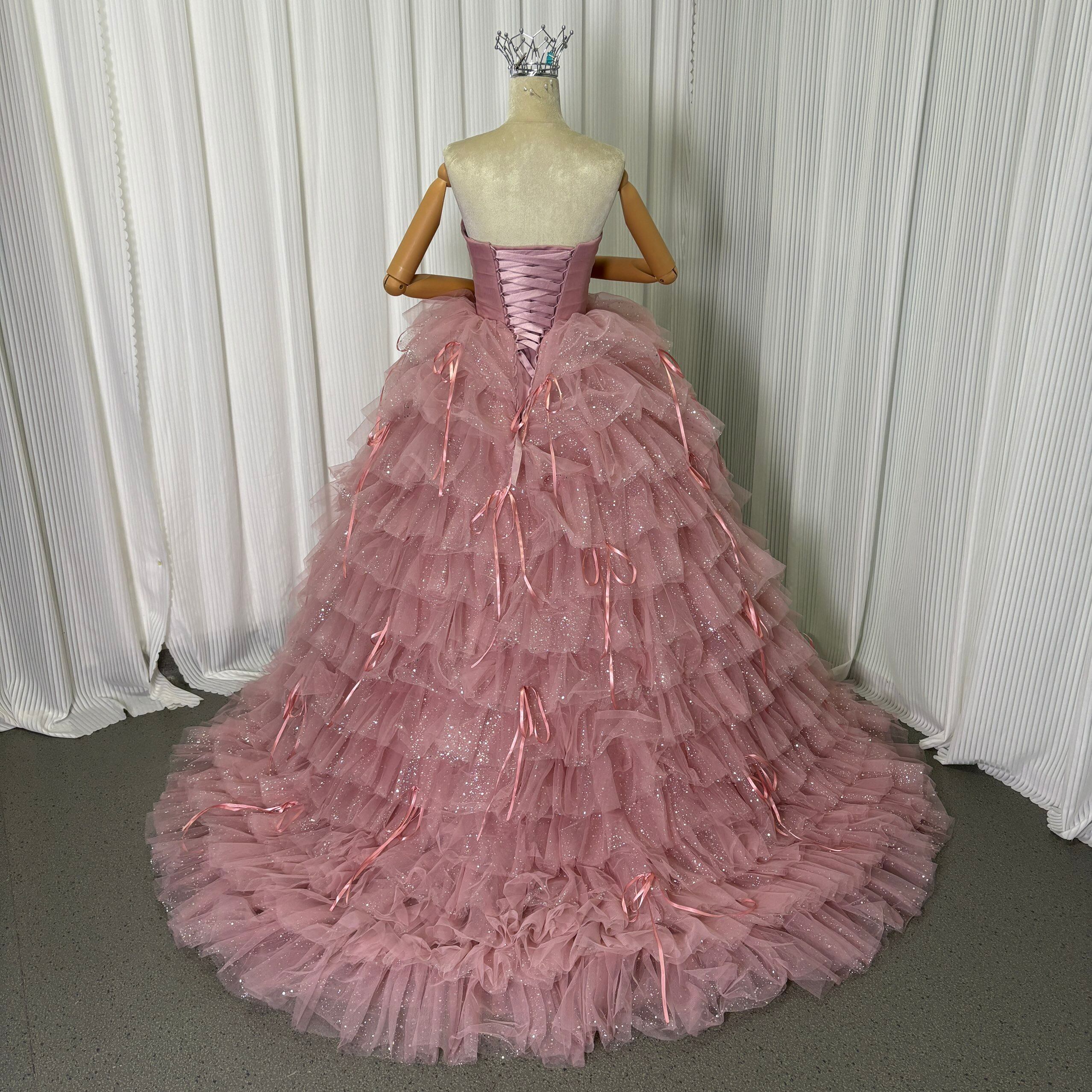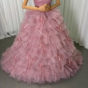 カラードレス ピンク ベアトップ ティアードのドレス プリンセスライン 前撮り 結婚式 キラキラチュール 花嫁