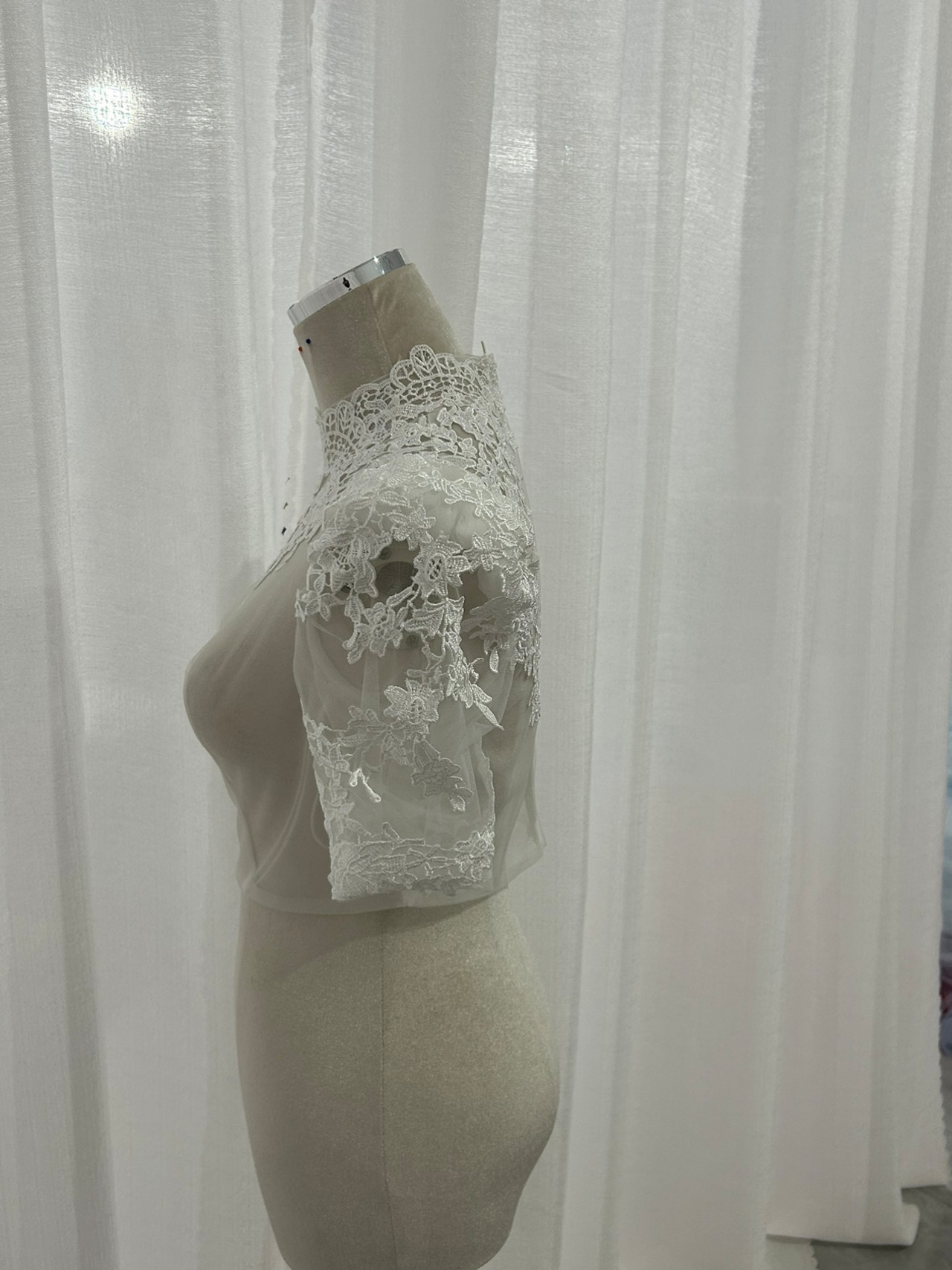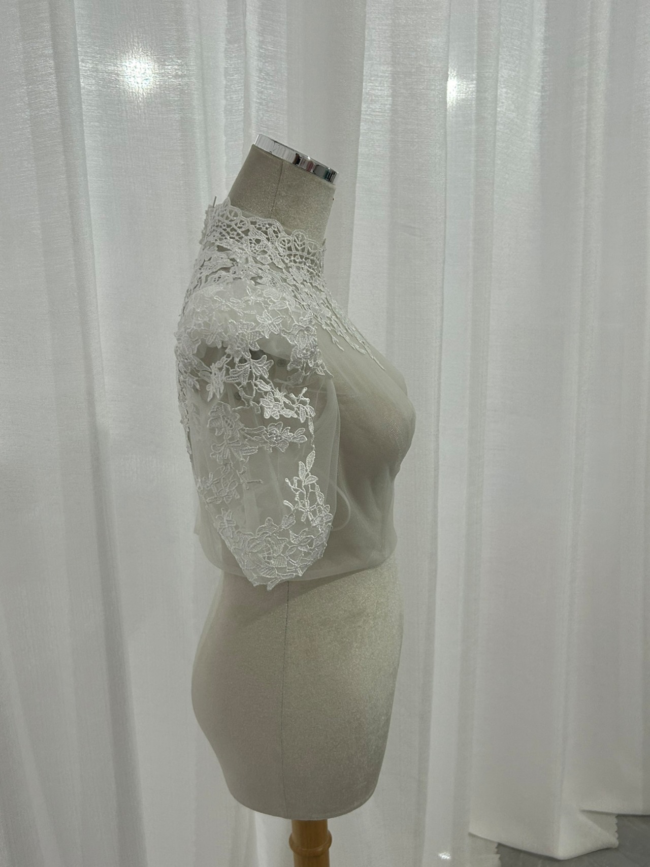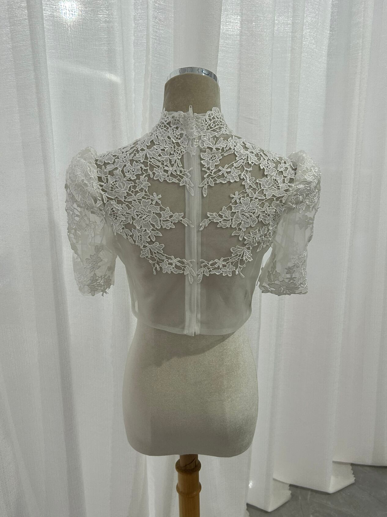 ボレロ パフスリーブ 半袖 ファスナー ハイネック シアーな美しさ 美しい花レース 花嫁/ウェディングドレス