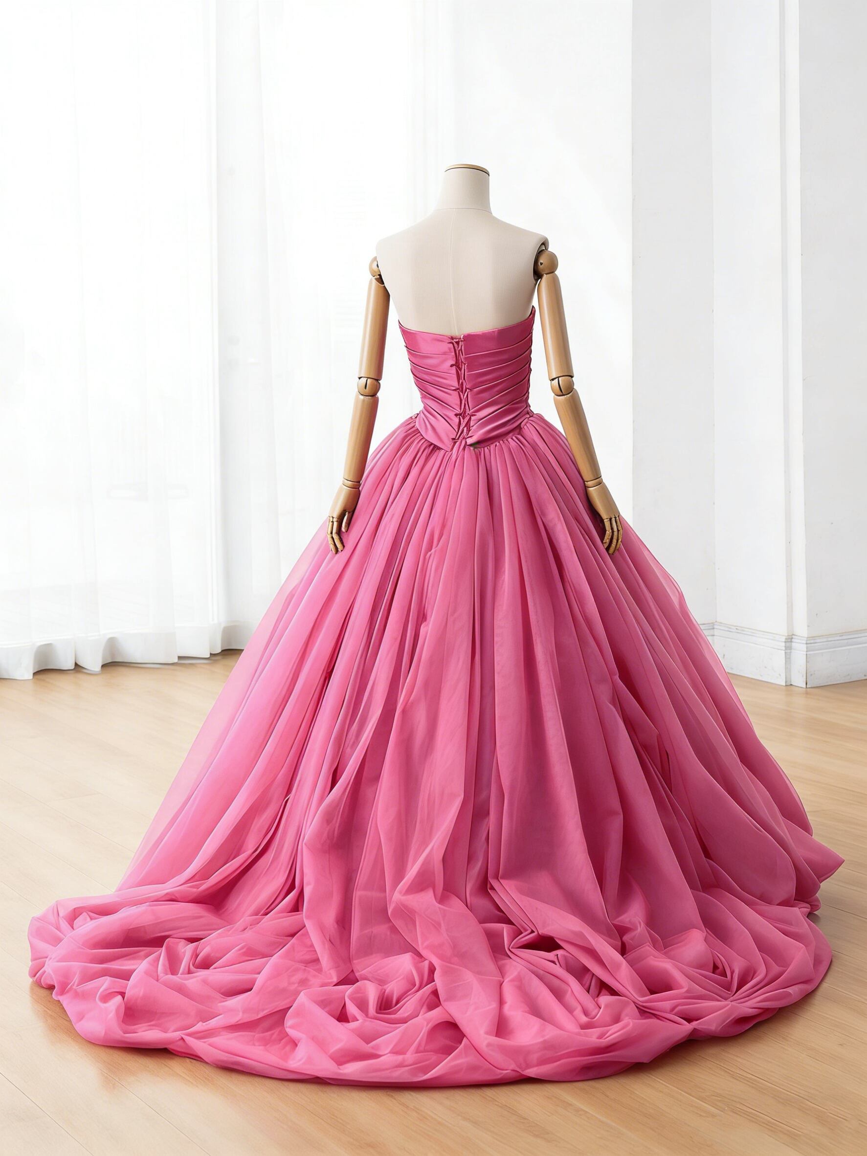 カラードレス ベアトップ 編み上げ ハンドドレープ アシンメトリードレス 前撮り ビビッドピンク