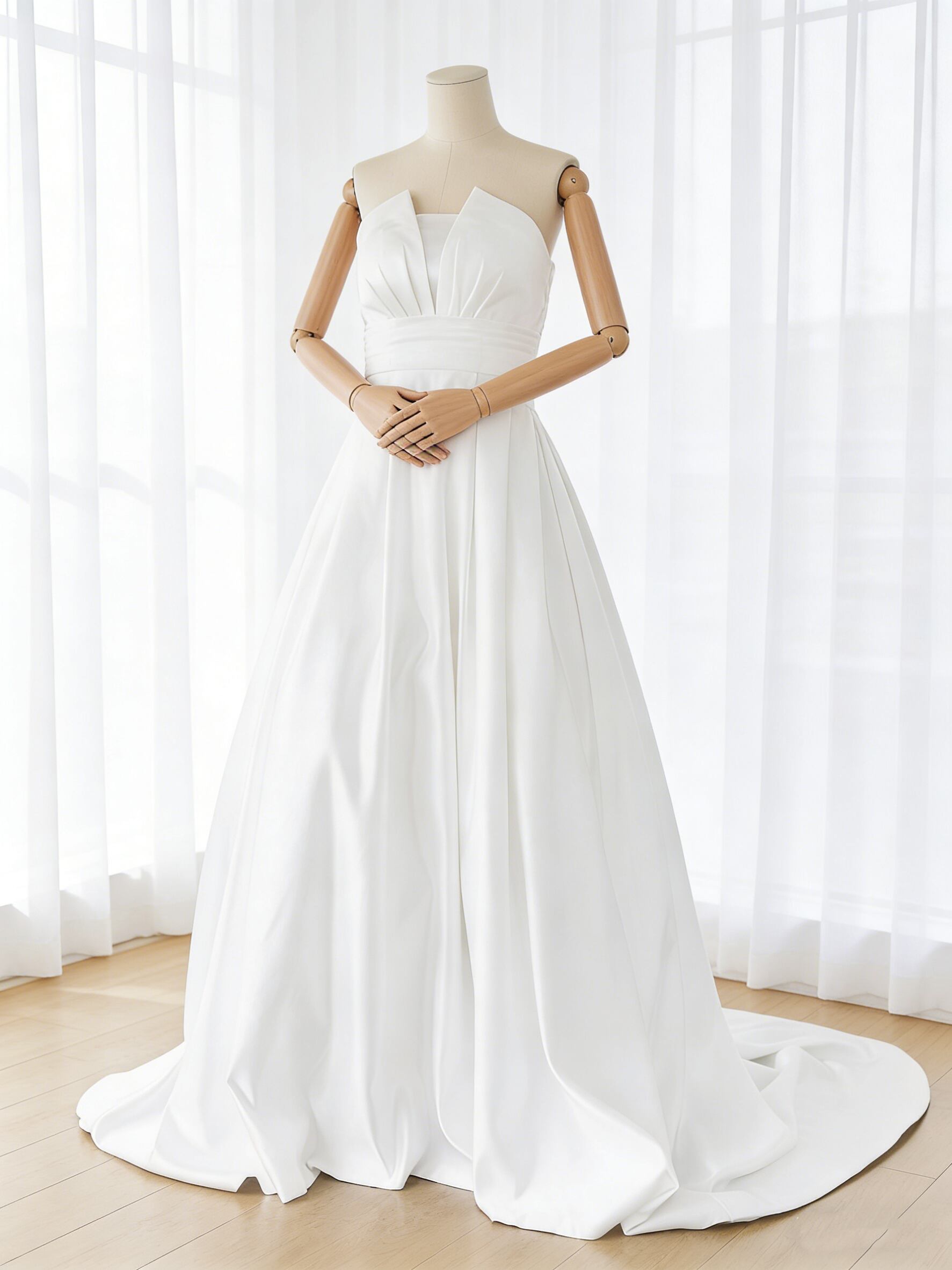 ウェディングドレス ビスチェドレス 光沢サテン オフホワイト ブライダル 二次会 前撮り