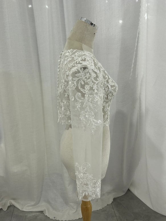 美品!ウエディングドレス用ボレロ レーストップス 長袖 Vネック 繊細レース オーダー可能