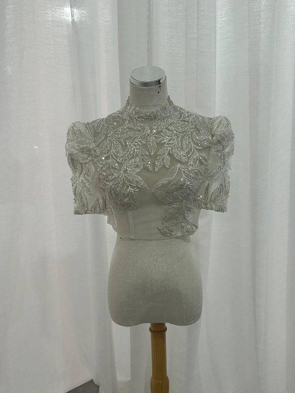 ボレロ キラキラスパンコール 短袖 背中見せ 可愛い 花嫁/ウェディングドレス
