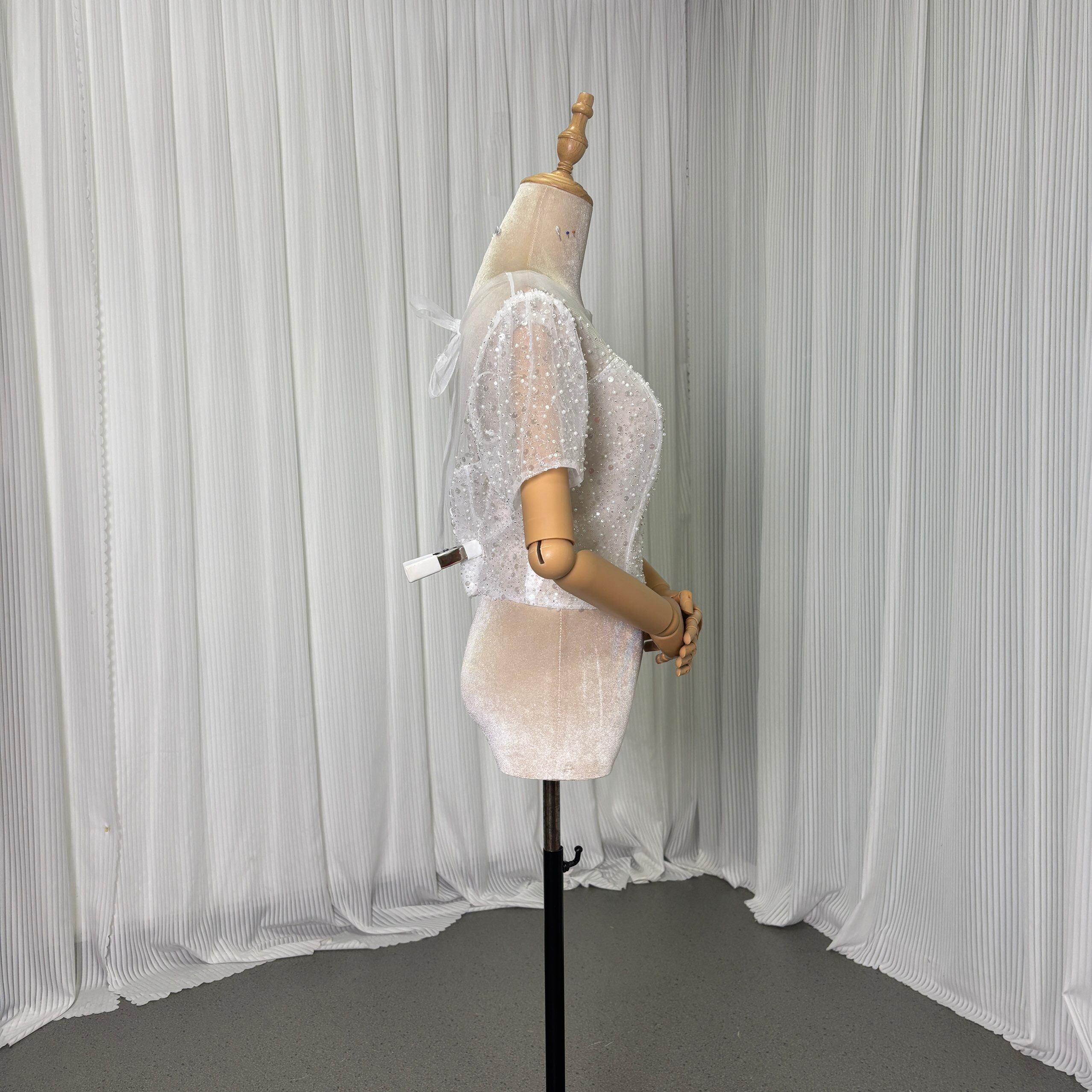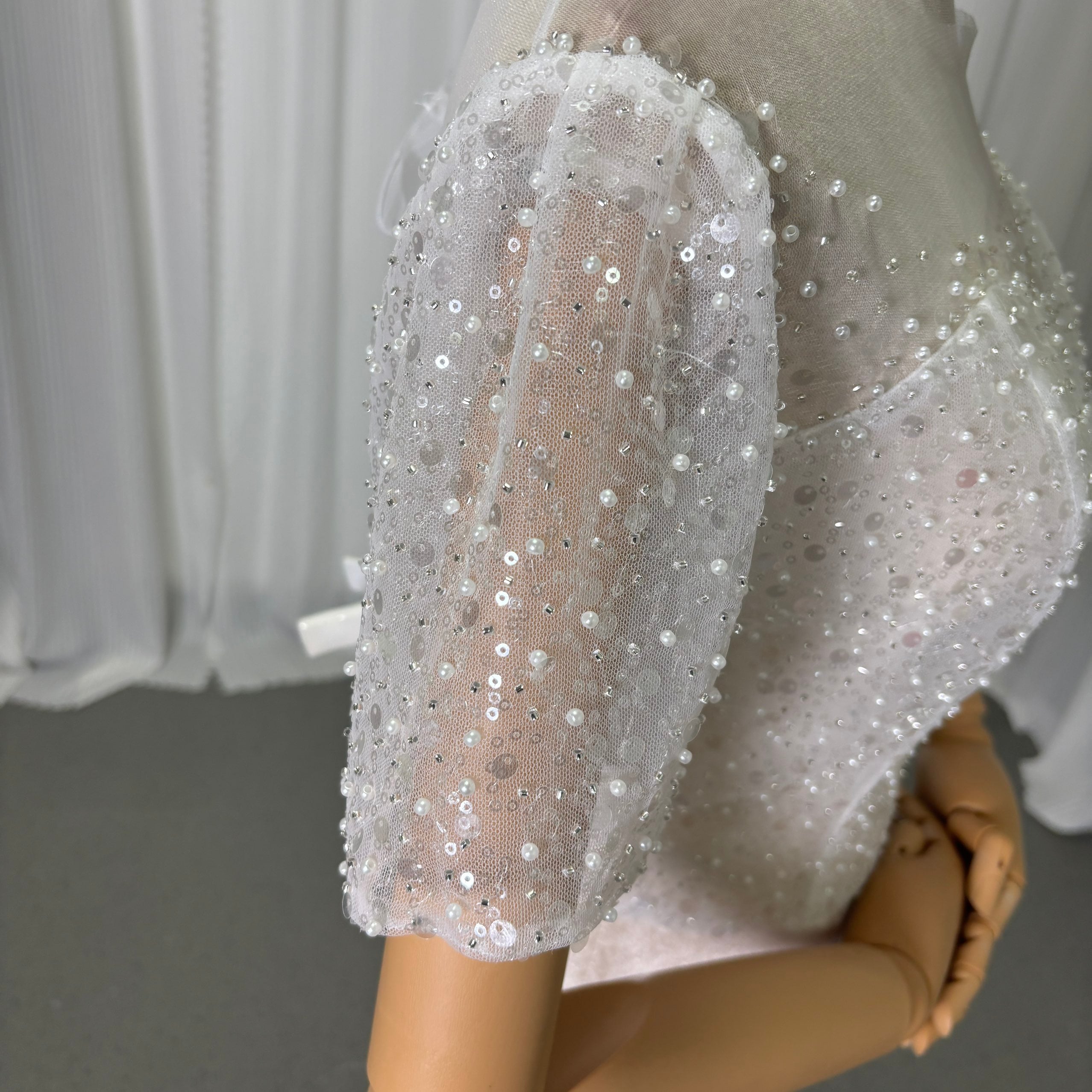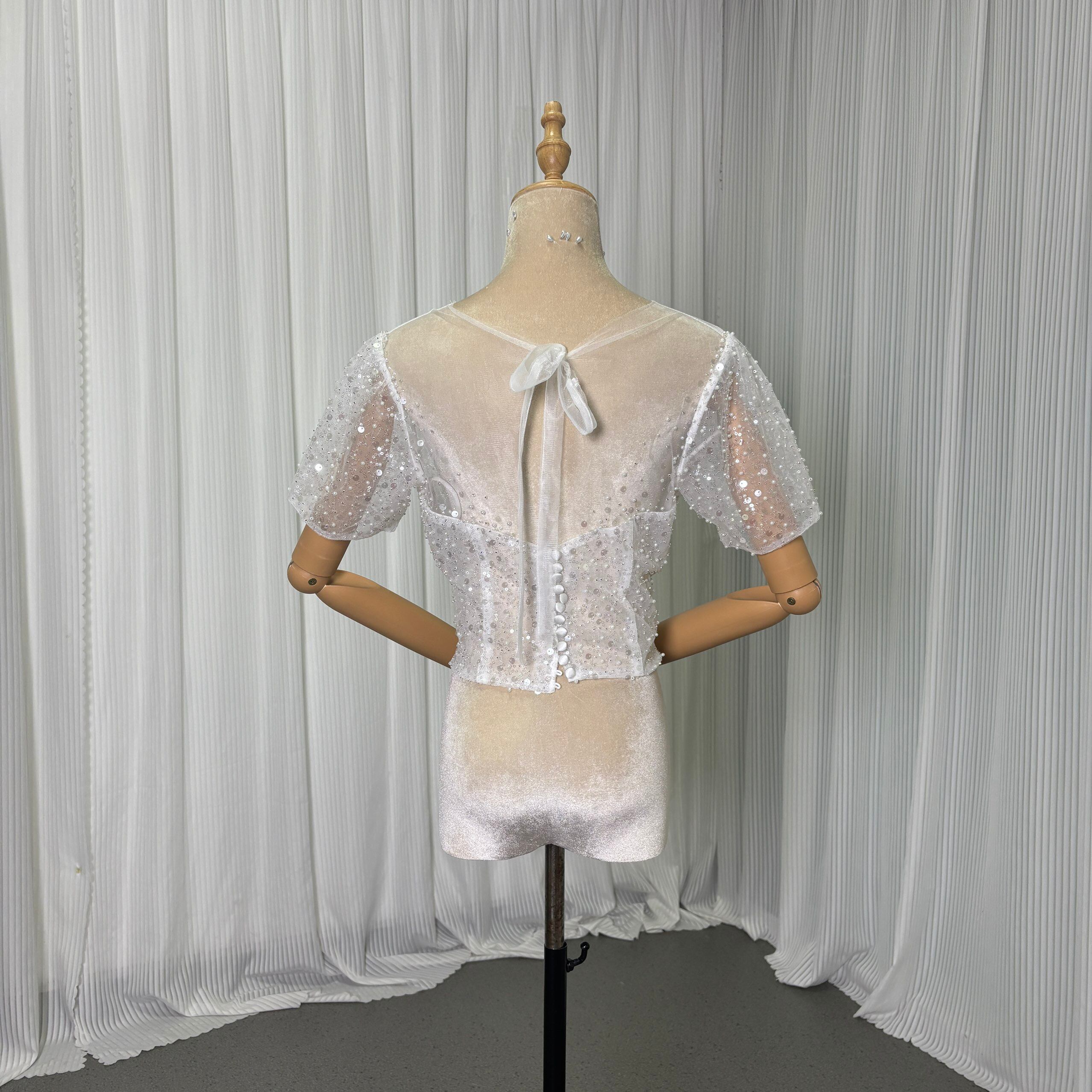 ボレロ インポートビジューレース 半袖 くるみボタン 花嫁/ウェディングドレス