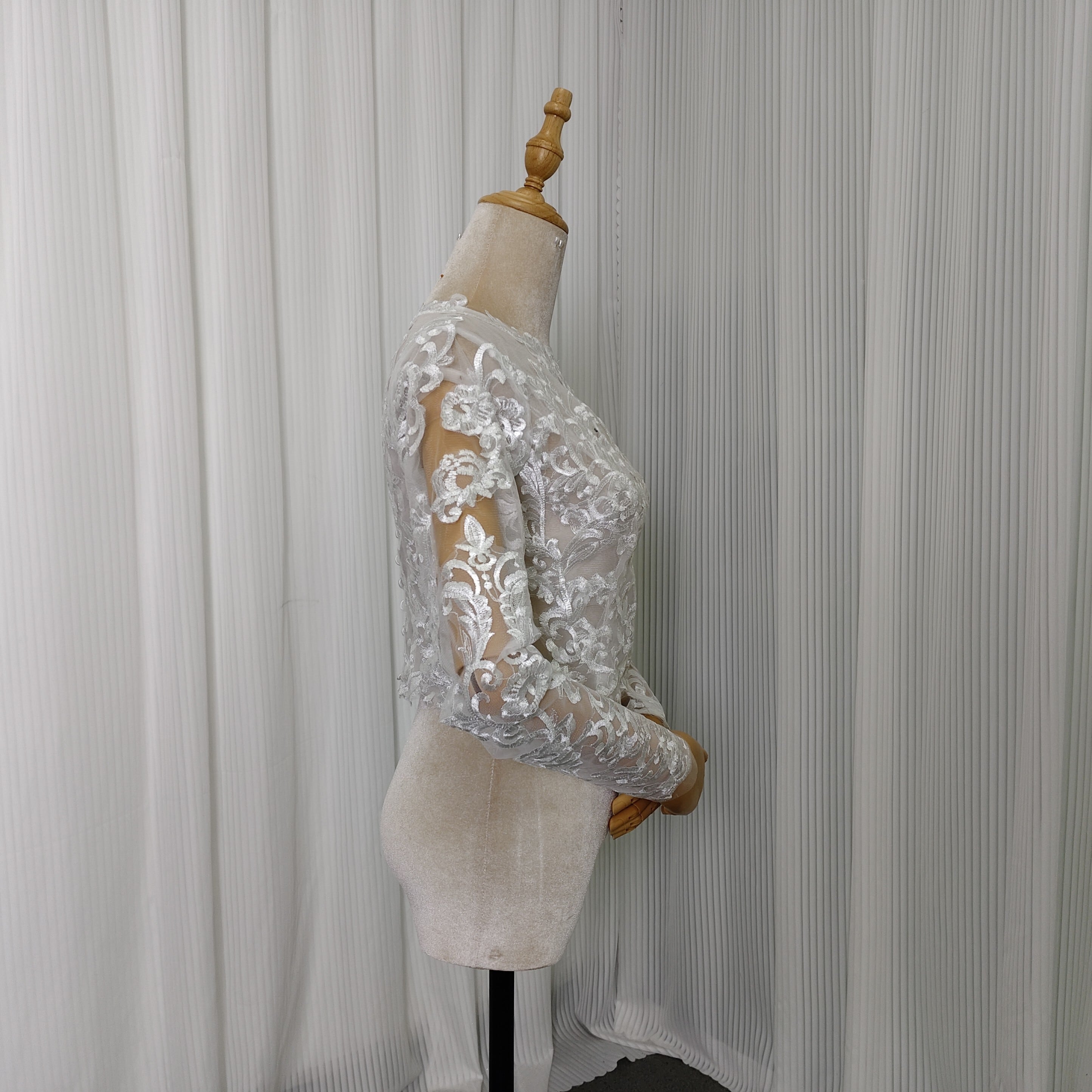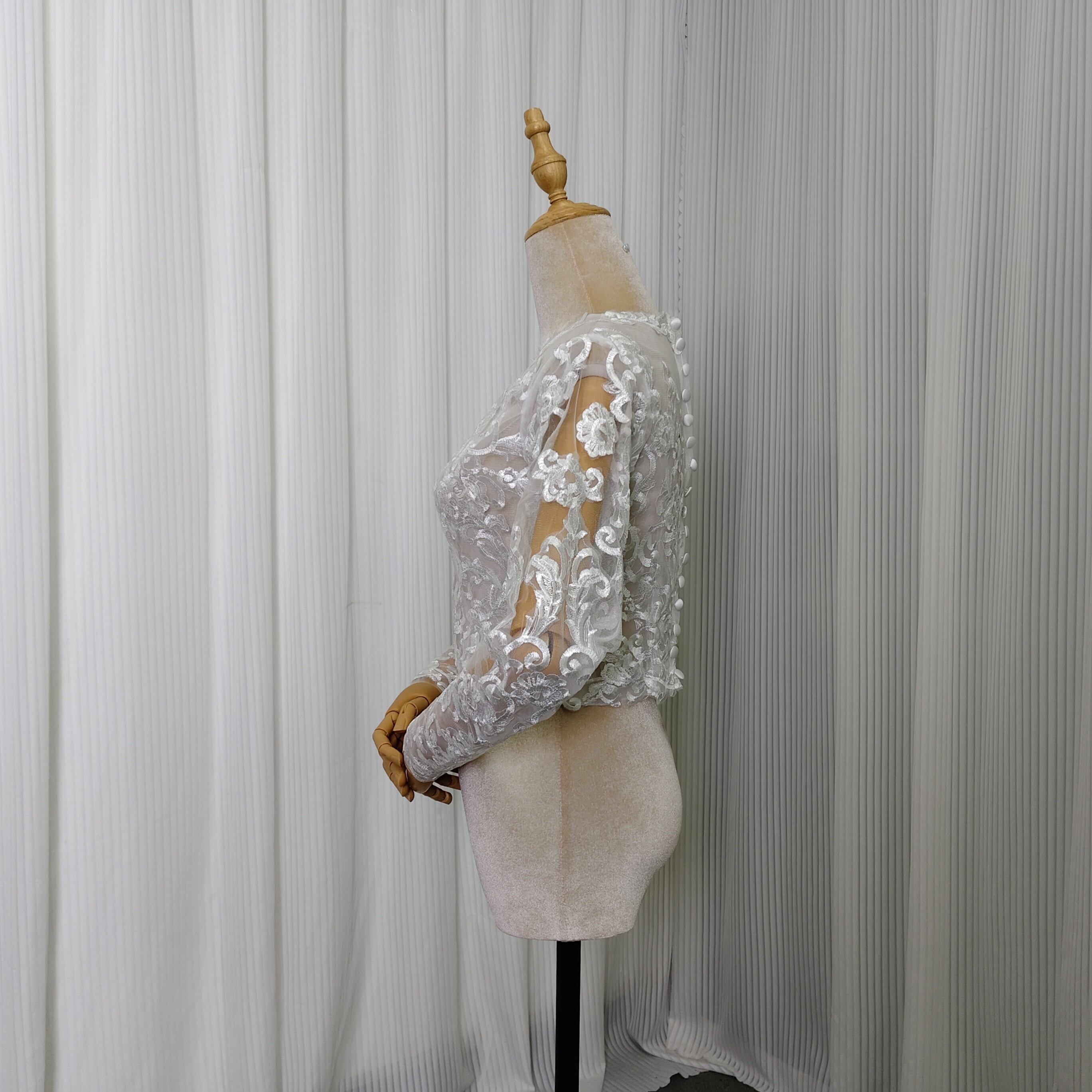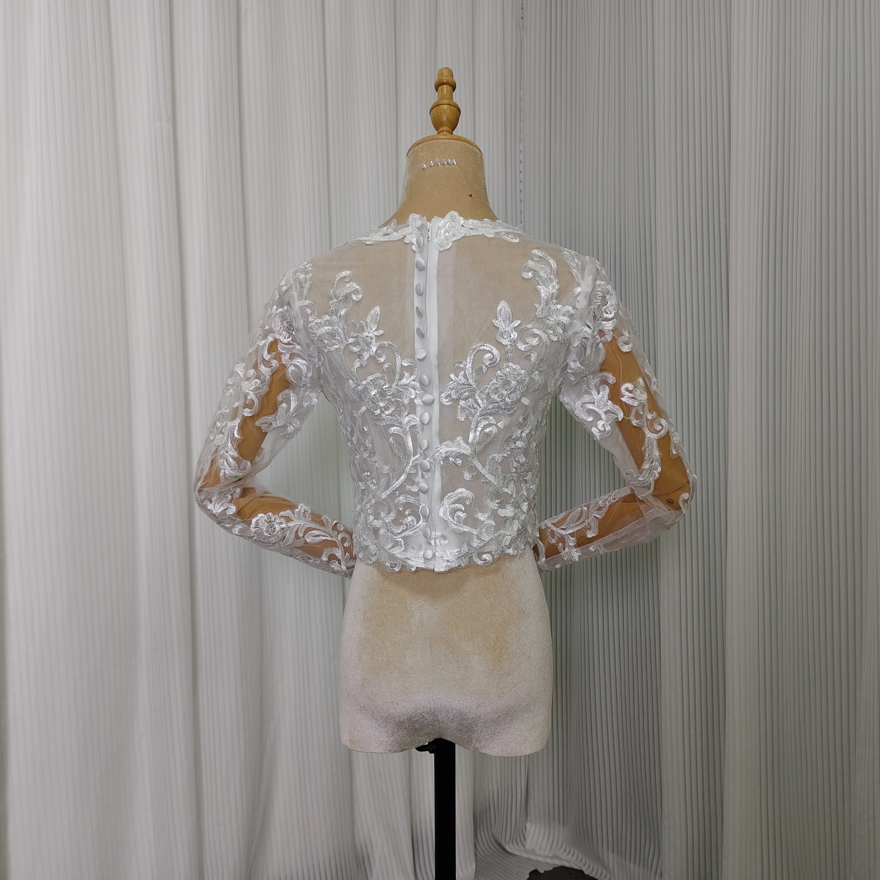 ボレロ ロングスリーブ ファスナー 魅惑の花レース くるみボタン オフホワイト 花嫁/ウェディングドレス