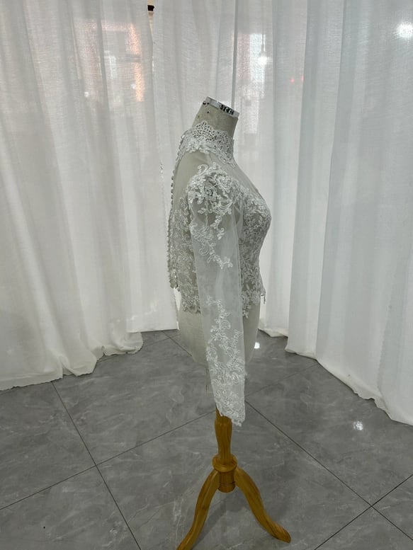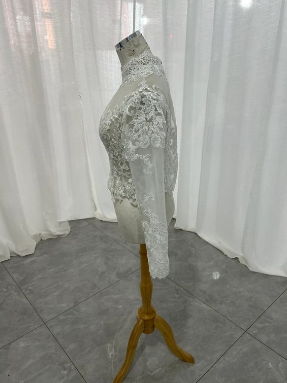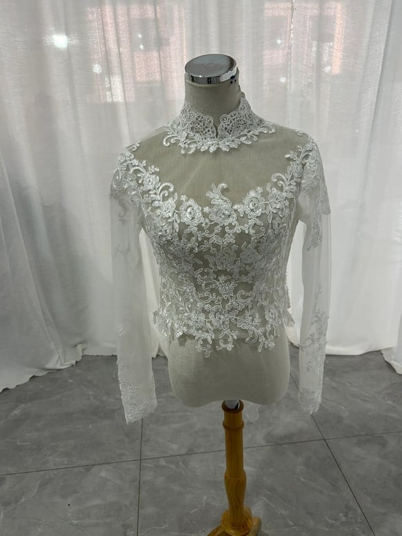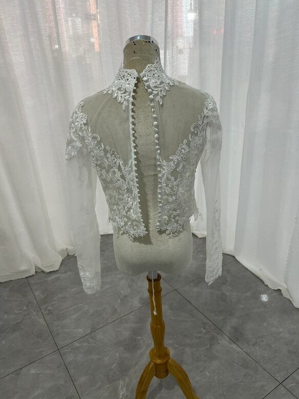 上品 なくるみボタン ハイネック レースボレロ 上品花レース トップス ウエディングドレス