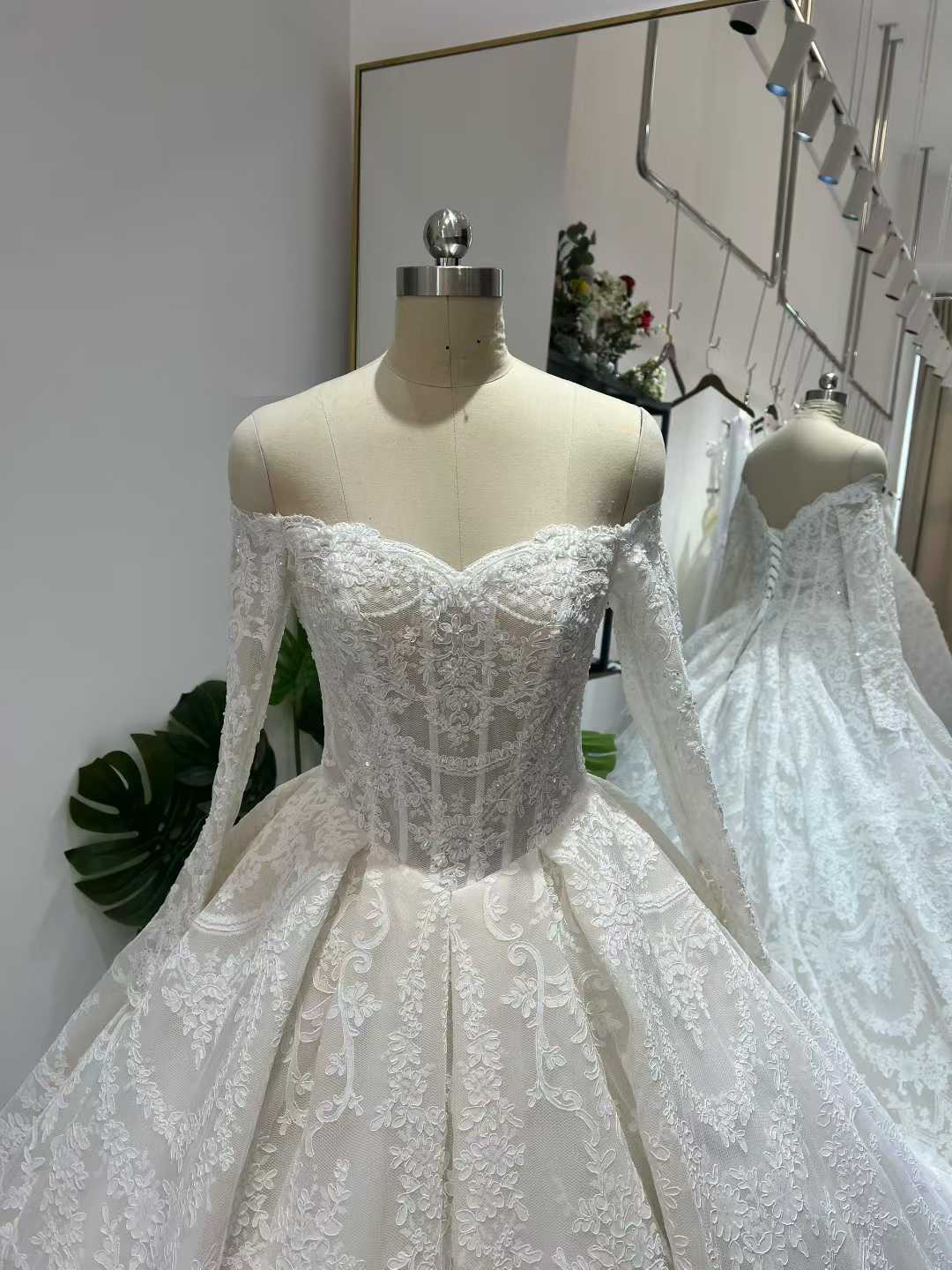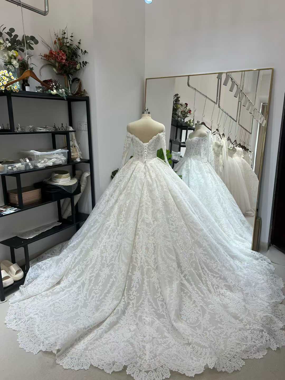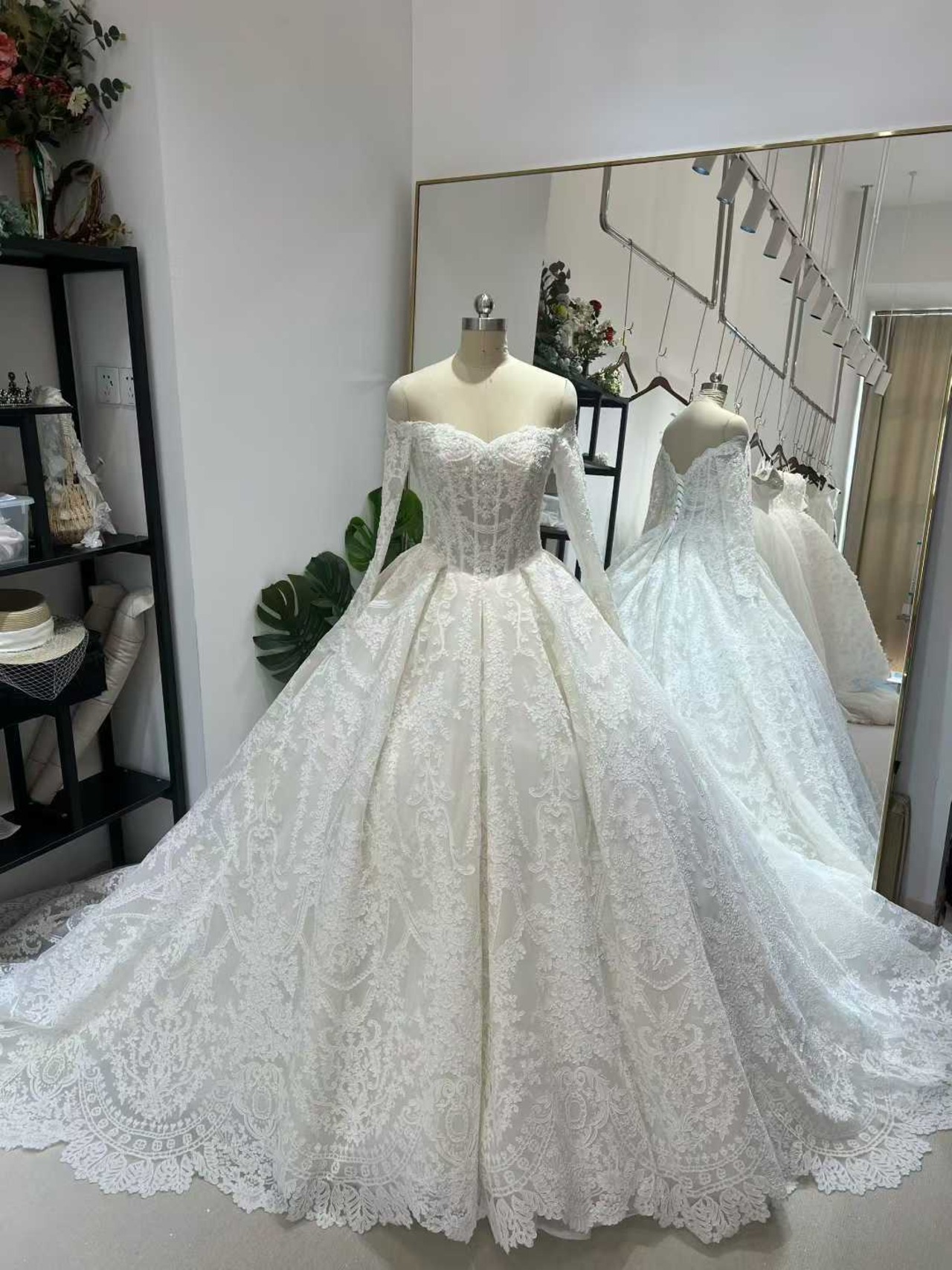ウェディングドレス オフショルダー 贅沢な総レース 韓国風ドレス エレガント ブライダル 豪奢