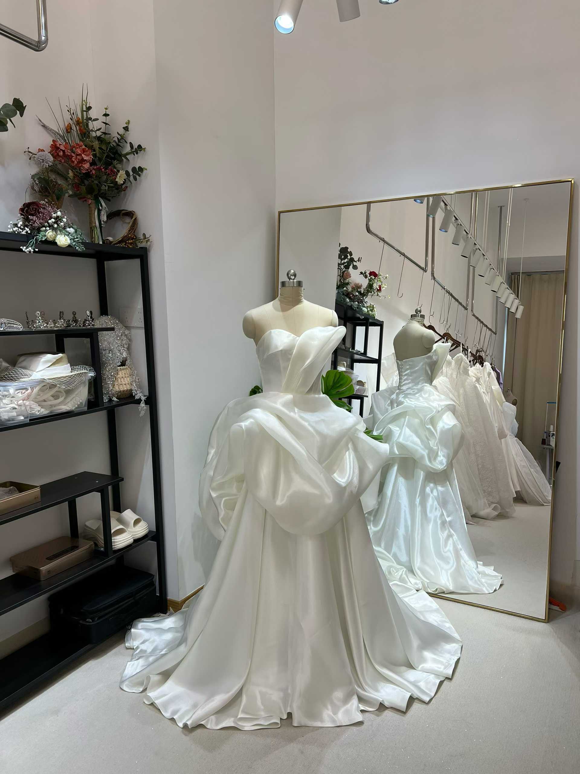 ウェディングドレス ビスチェドレス シルクオーガンジーサテン オフホワイト ラッフルフリル 結婚式