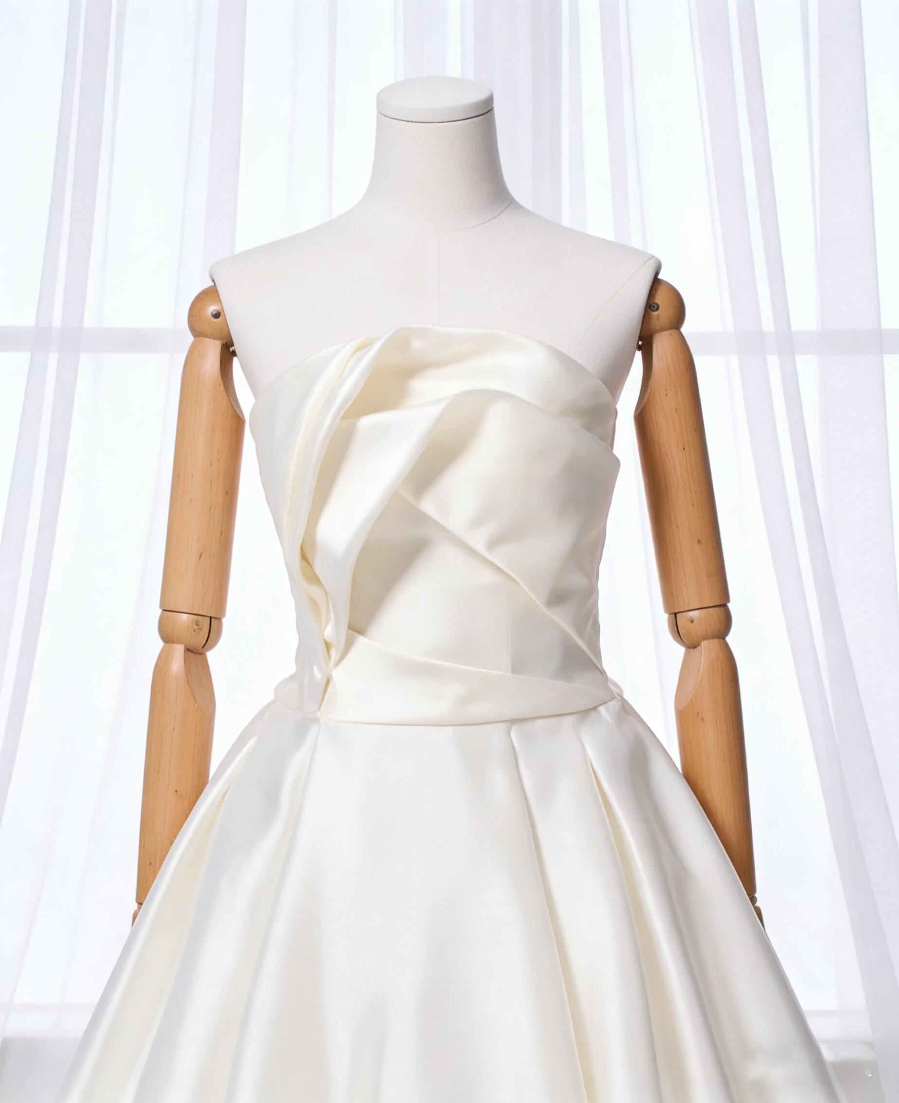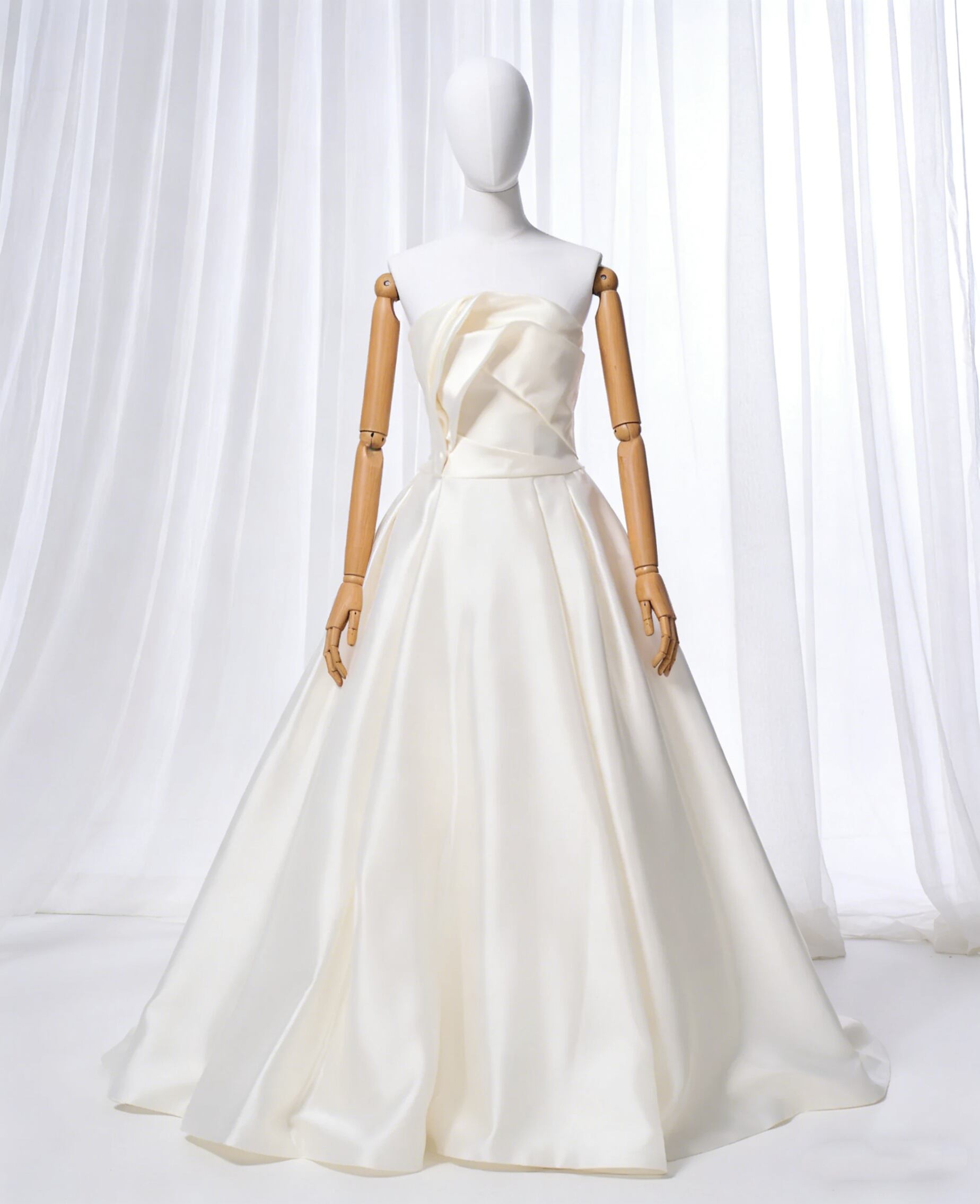 ウェディングドレス ビスチェドレス ハンドドレープ アイボリー 結婚式 ロングワンピース Aライン 光沢サテン