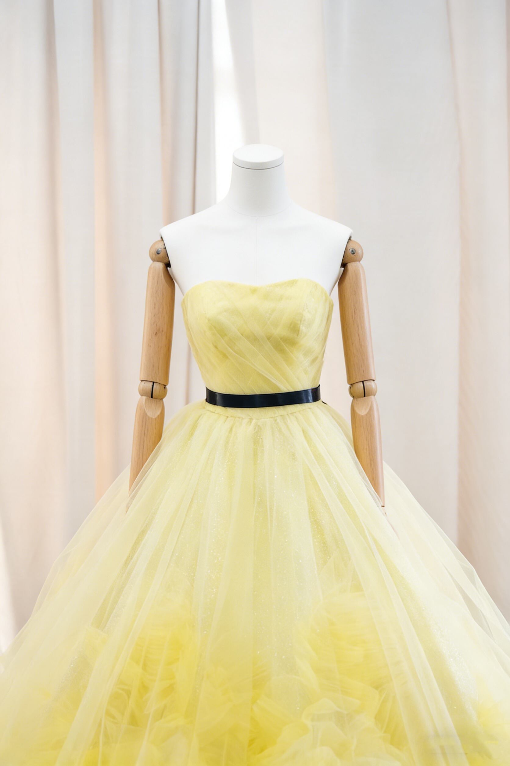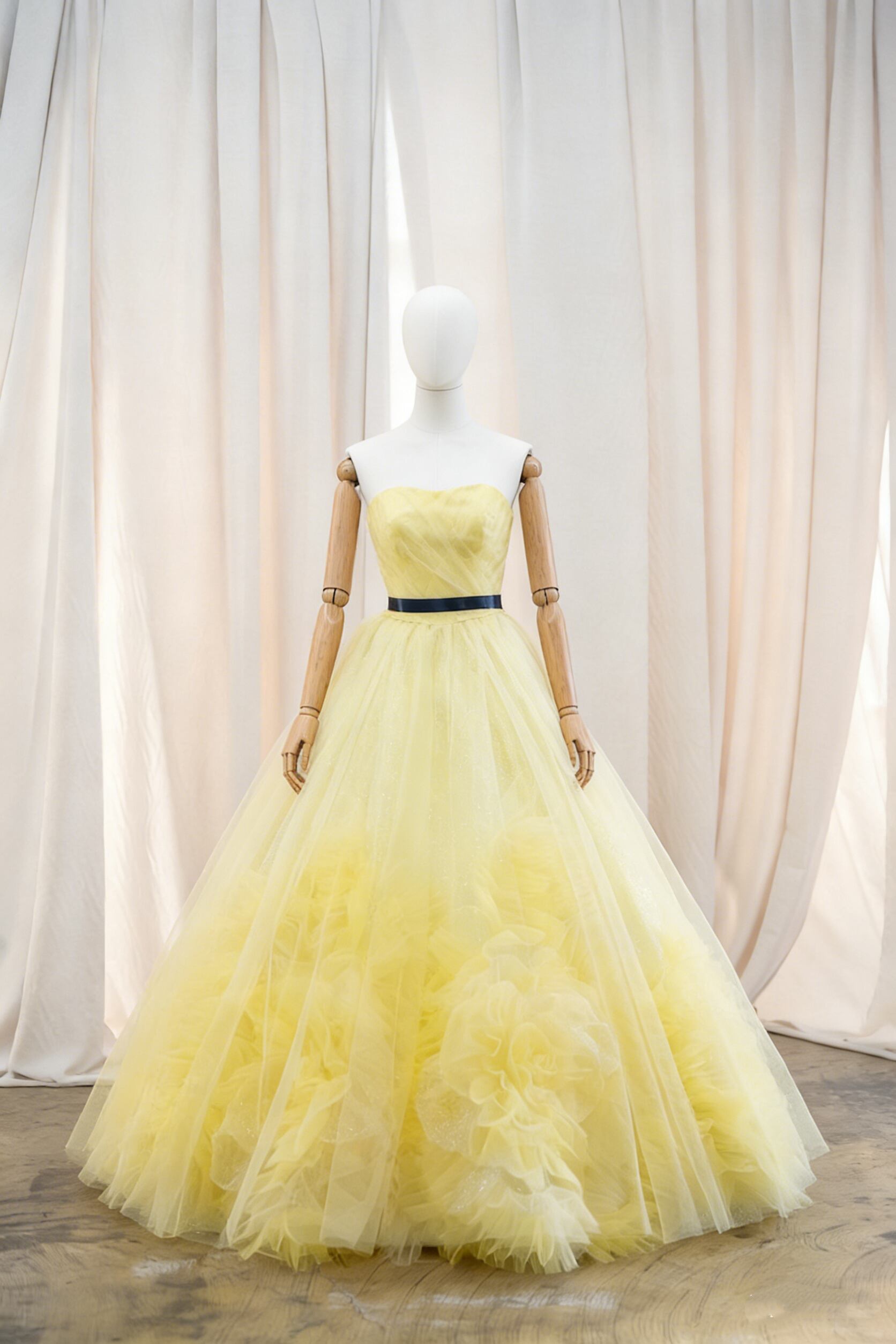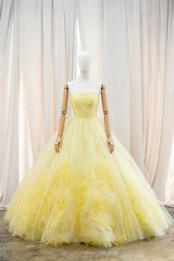 カラードレス イエロー サッシュベルト ビスチェドレス ブライダル プリンセスライン フレアスカート 花嫁