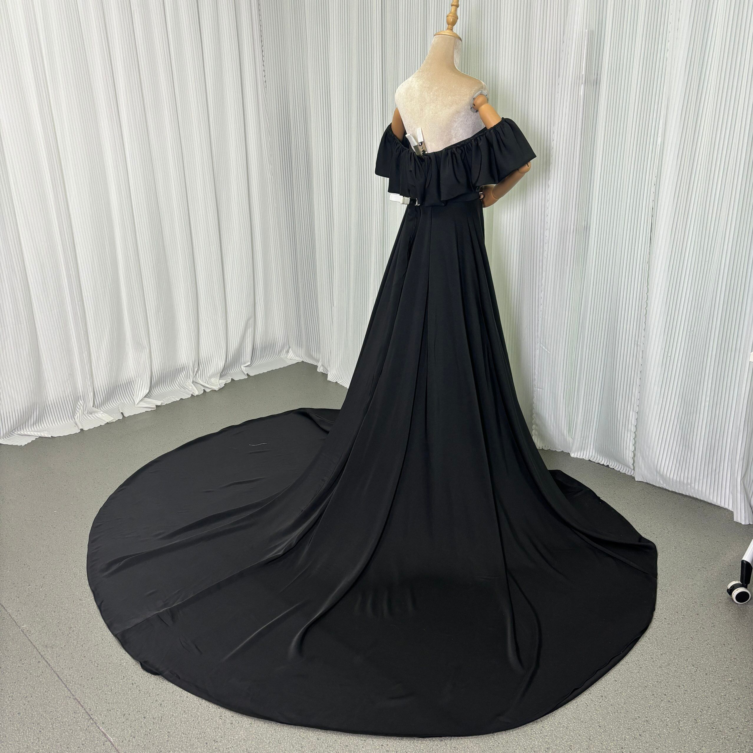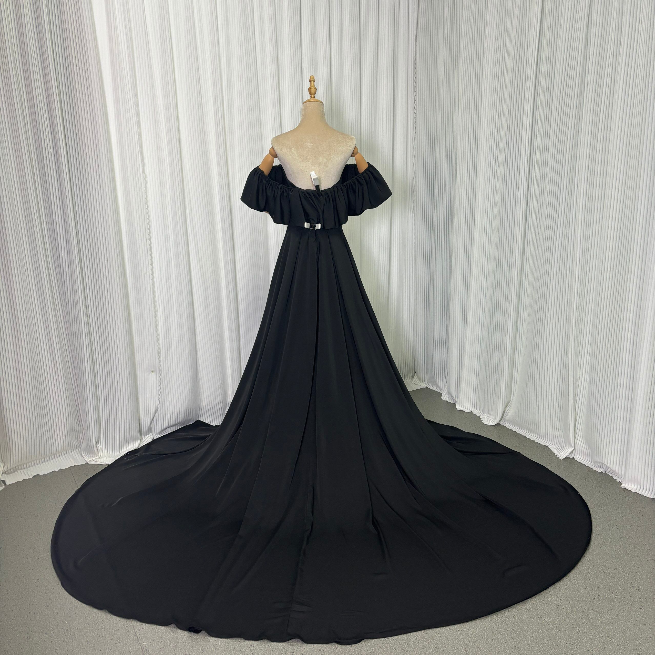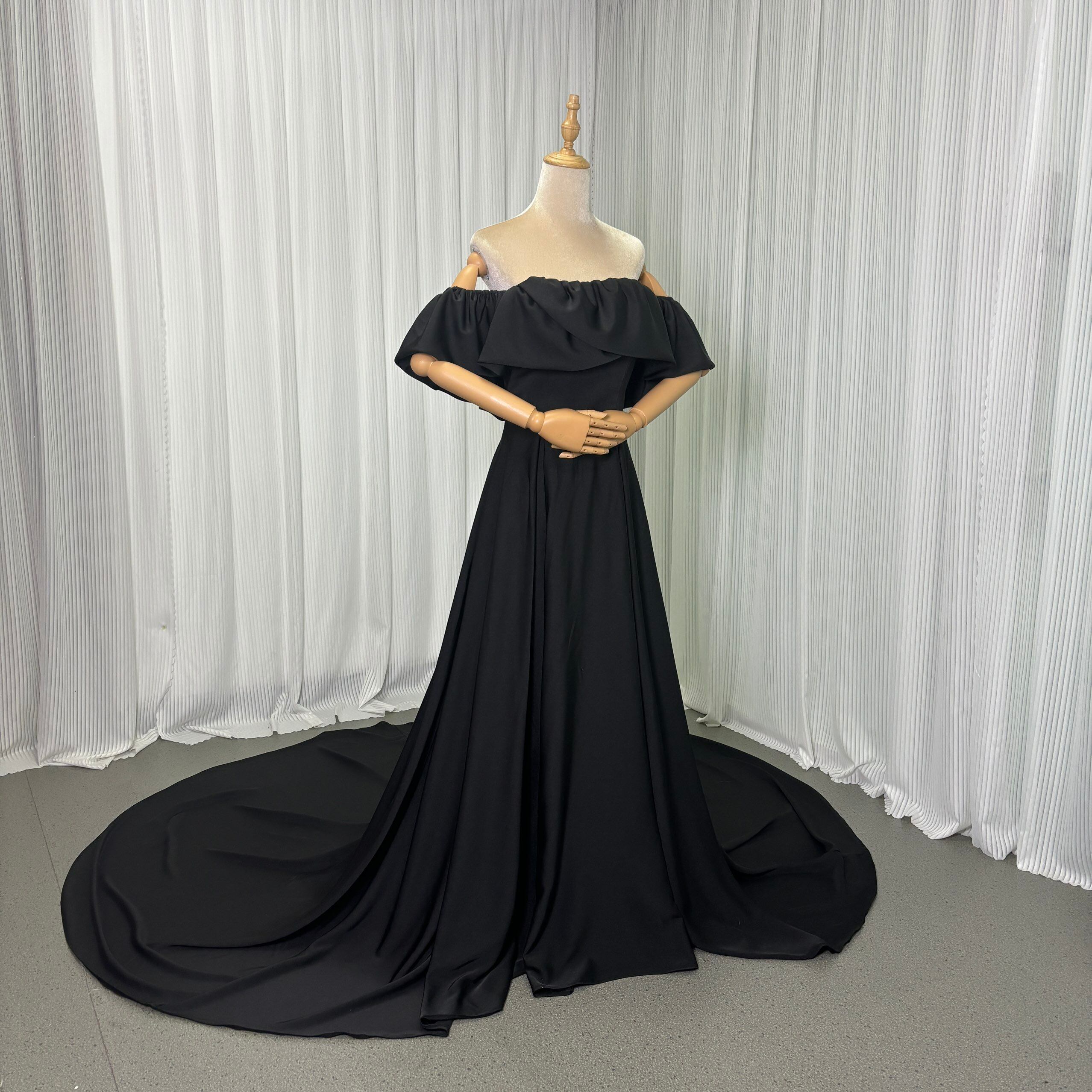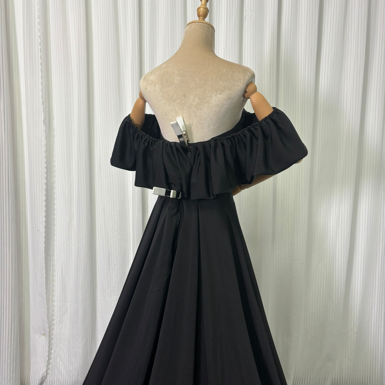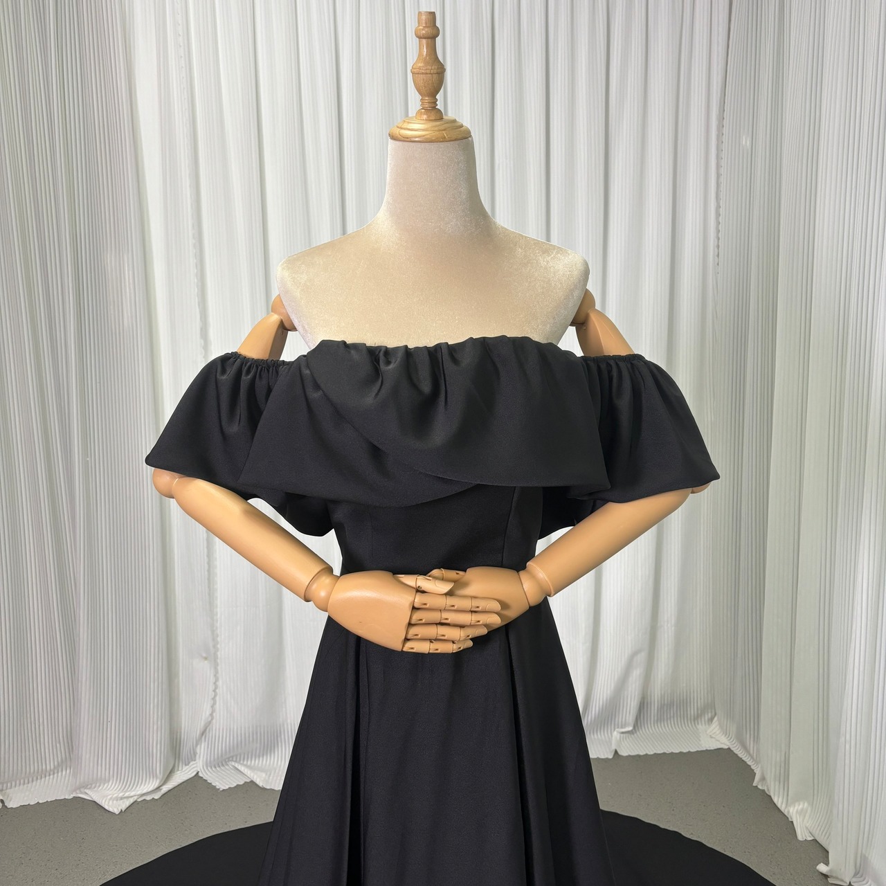実例写真!パーティードレス オフショルダー ブラック 高品質イタリアサテン エレガント ブライダル 前撮り