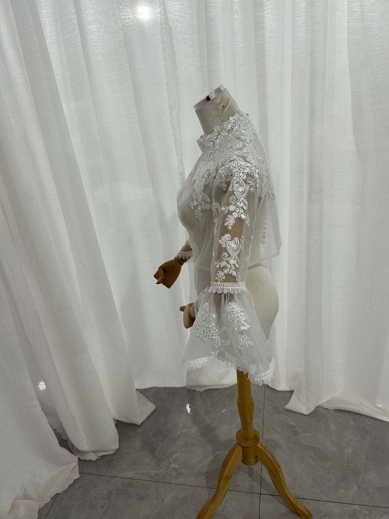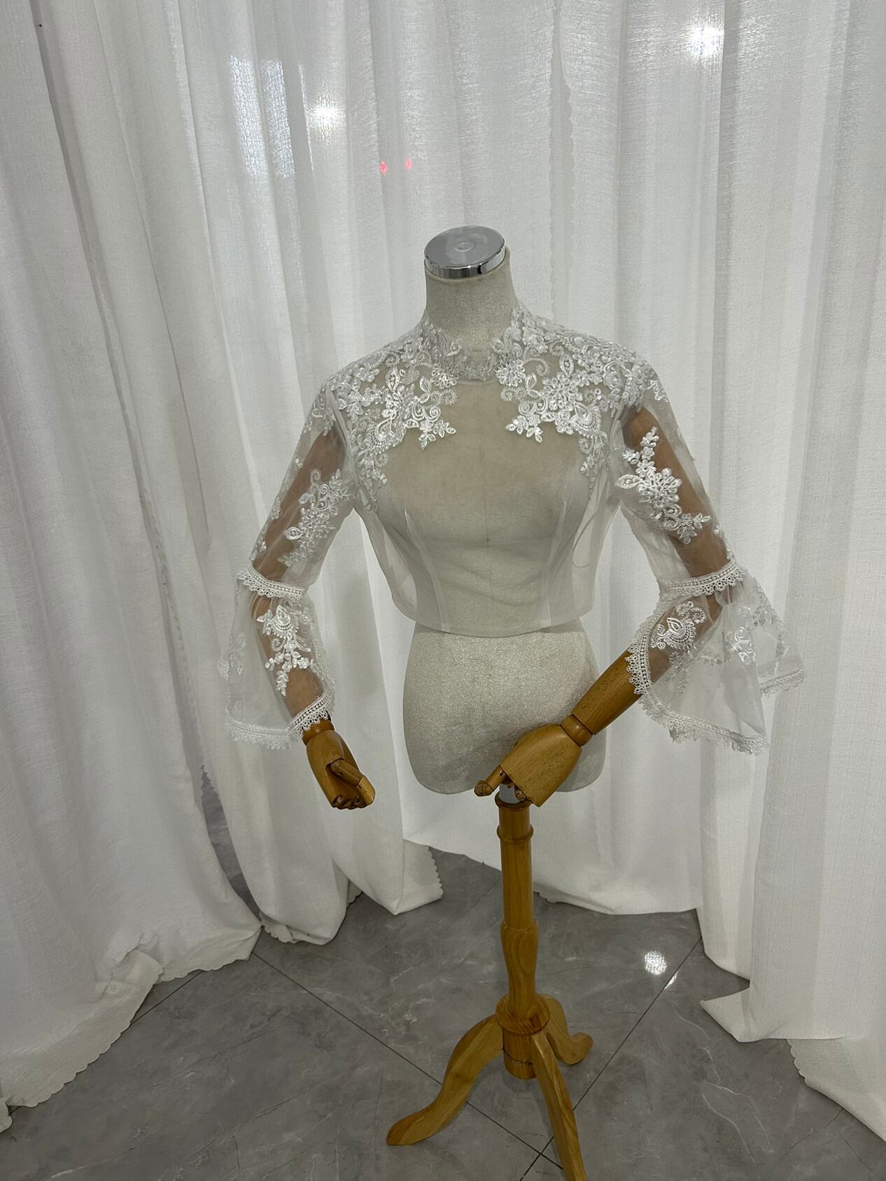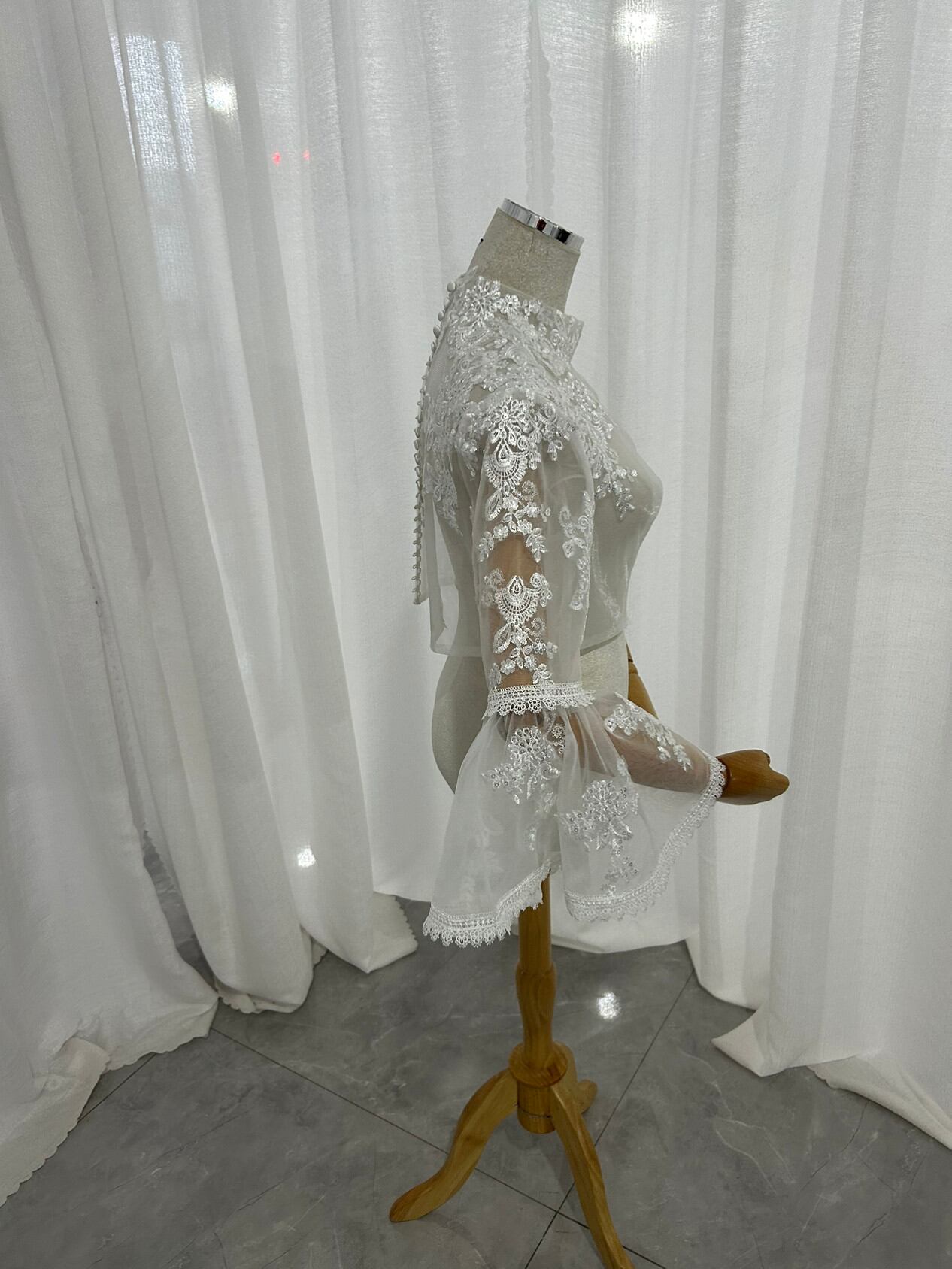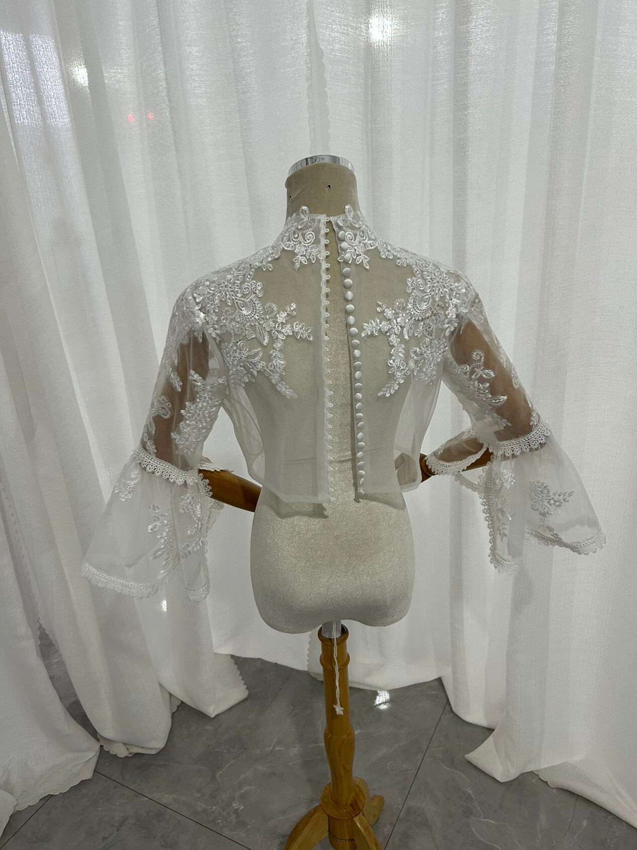 ボレロ ベルスリーブ くるみボタン キラキラ光る刺繍 披露宴/結婚式 ウェディングドレス