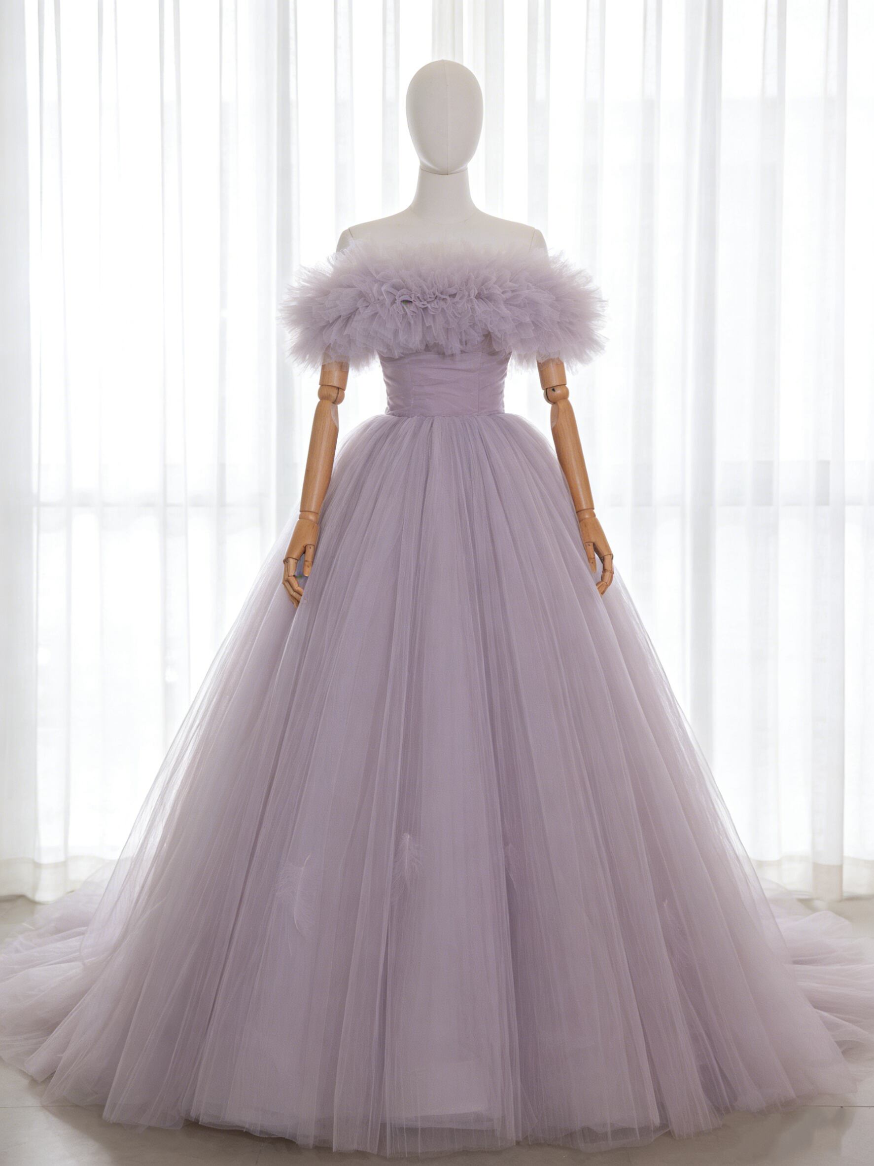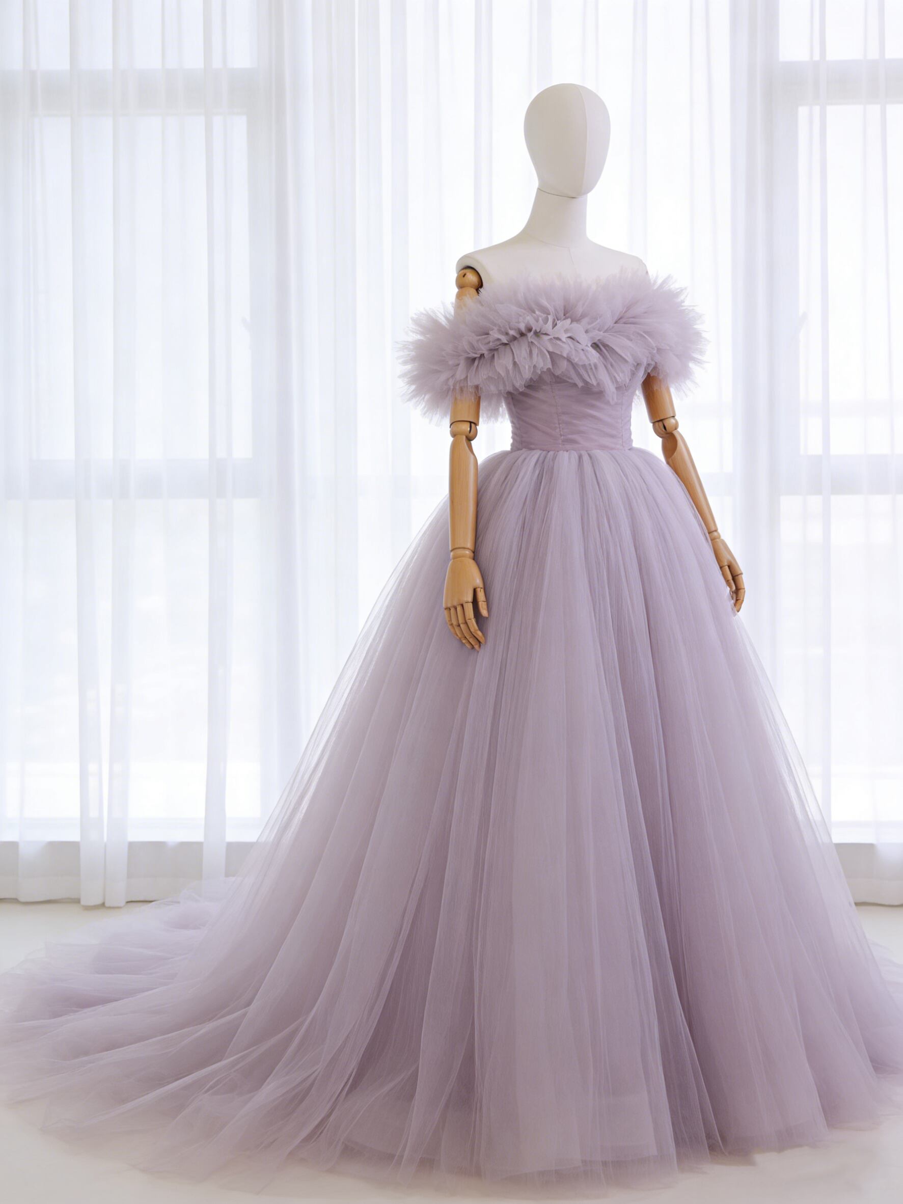 送料無料!カラードレス オフショルダー パープル ブライダル ふわふわドレス チュールドレス 前撮り