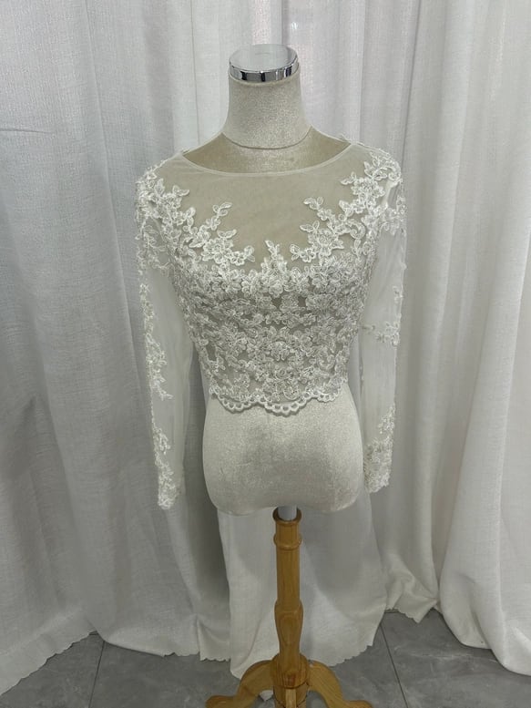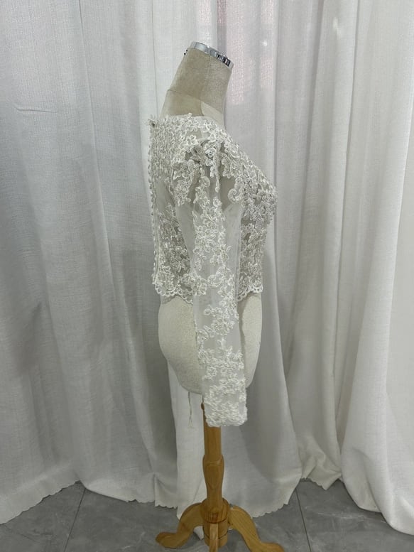 ボレロ ロングスリーブ キラキラ光る刺繍 花モチーフ くるみボタン フランス風 結婚式