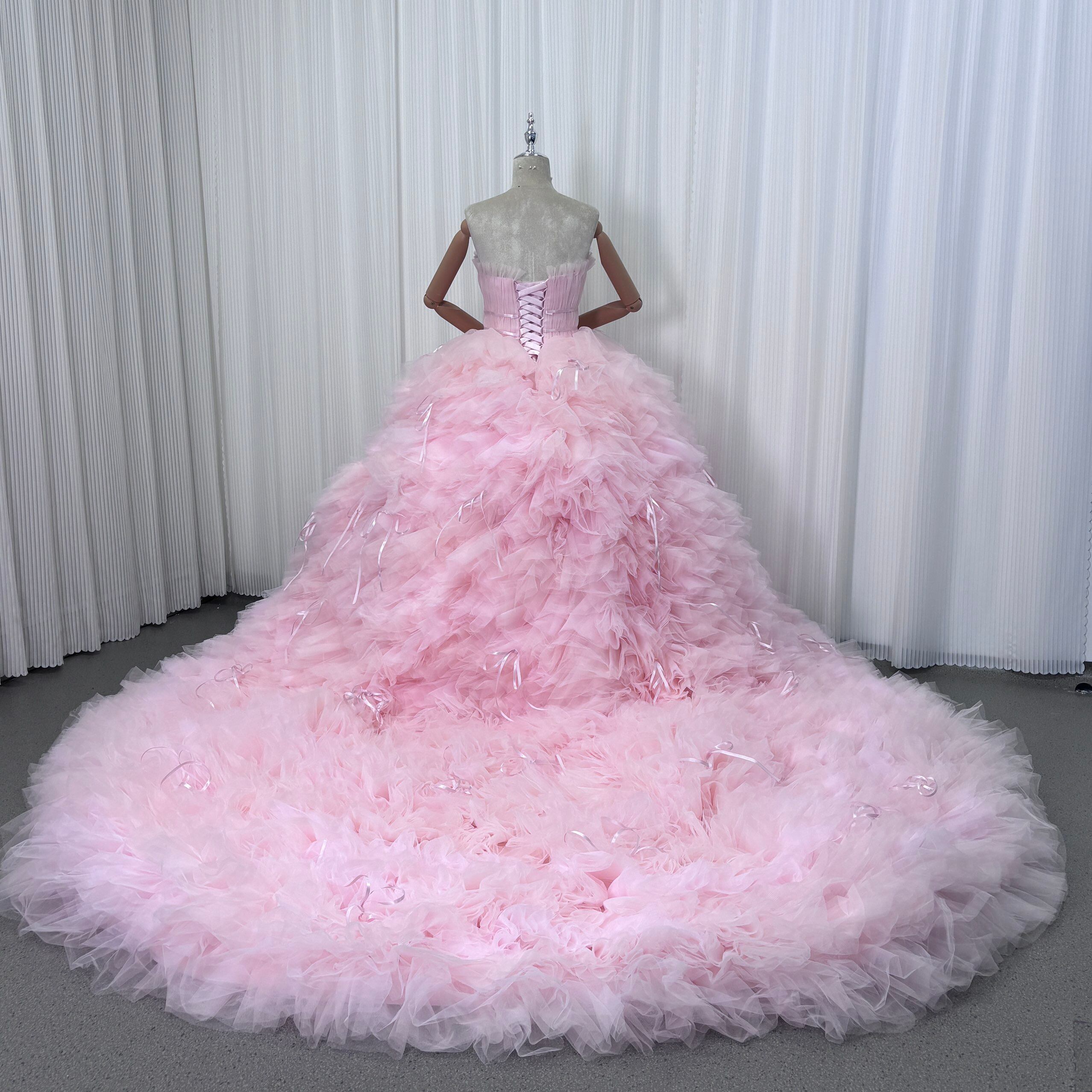 カラードレス ピンク プリンセスライン ベアトップ 編み上げ リボン 抜群におしゃれ度が際立つ 結婚式