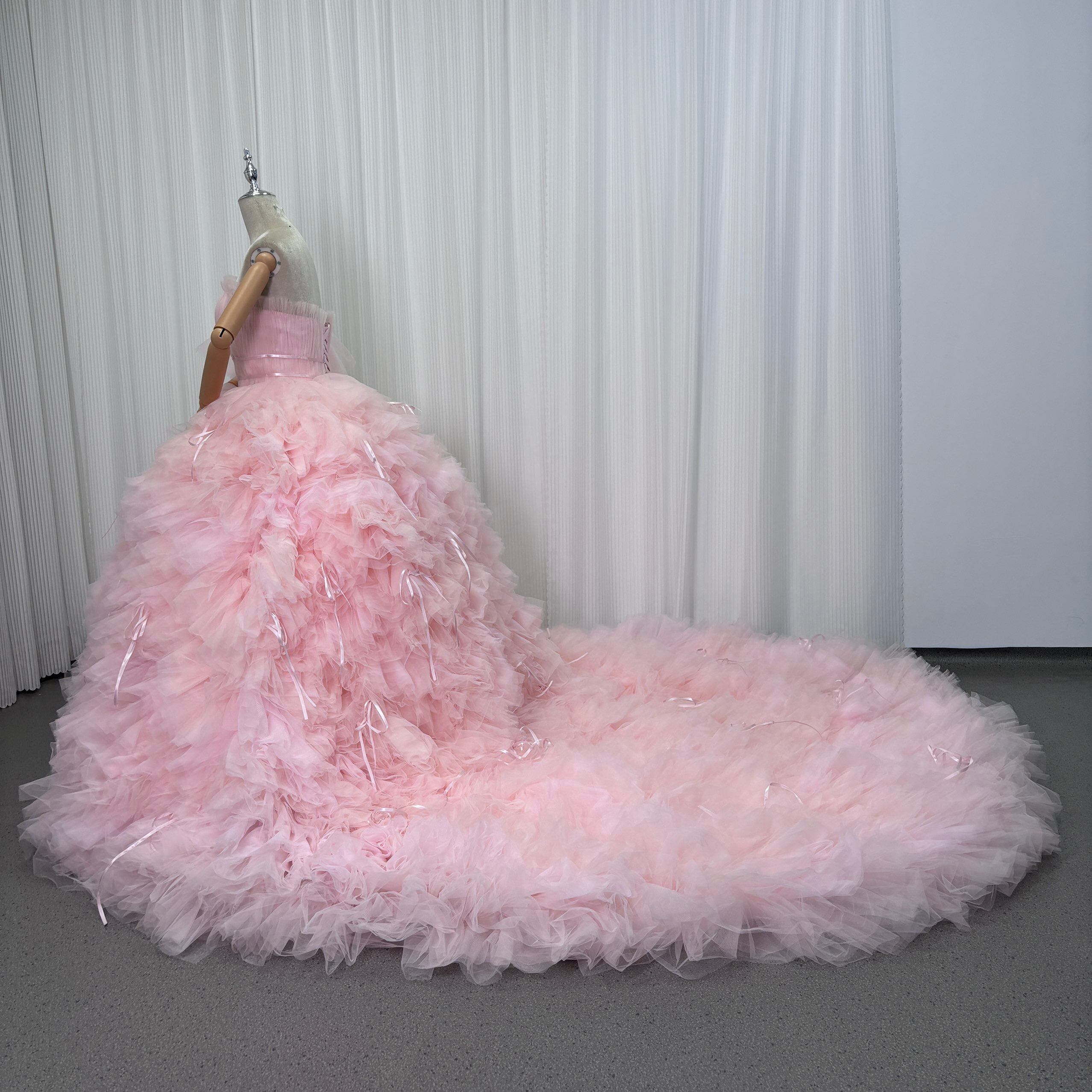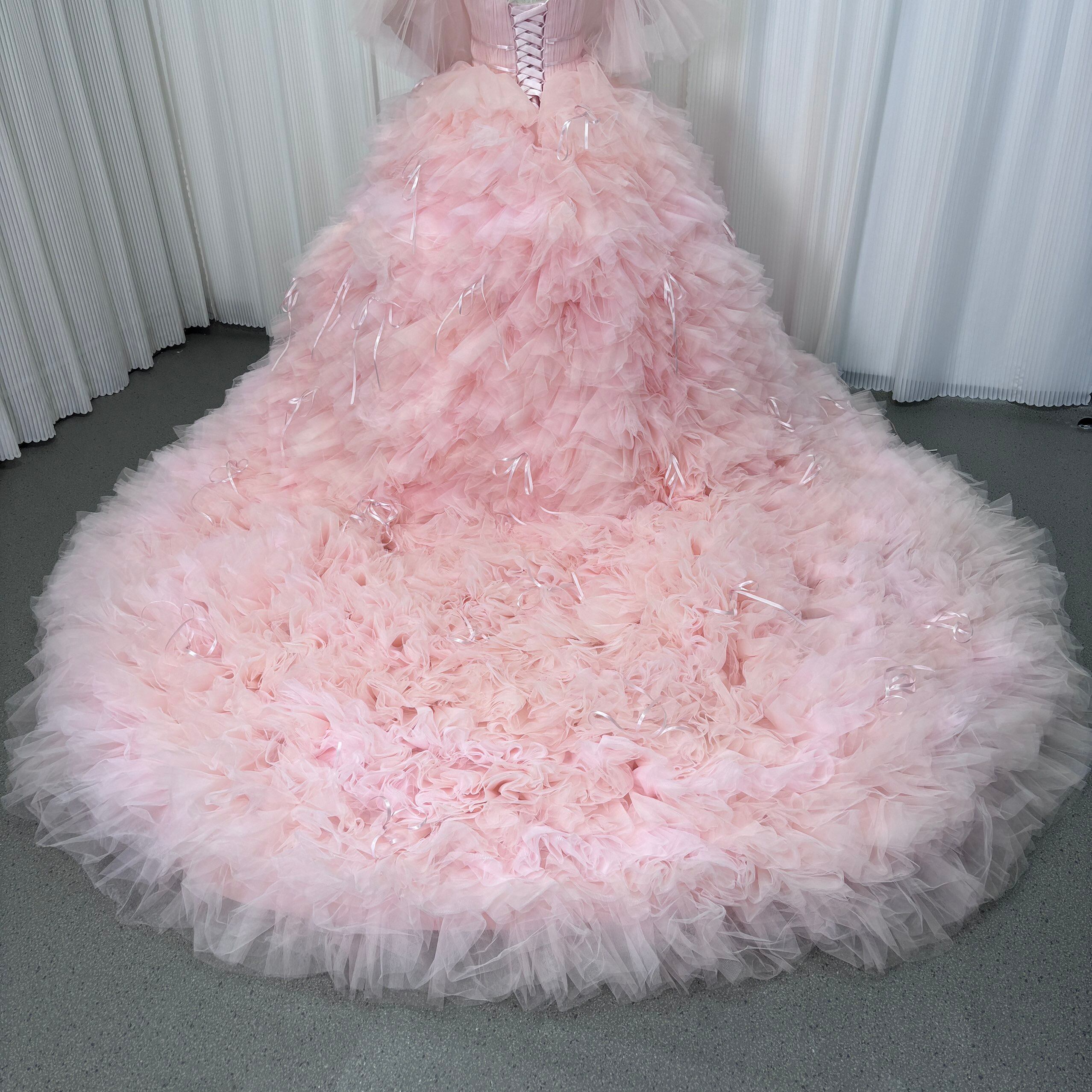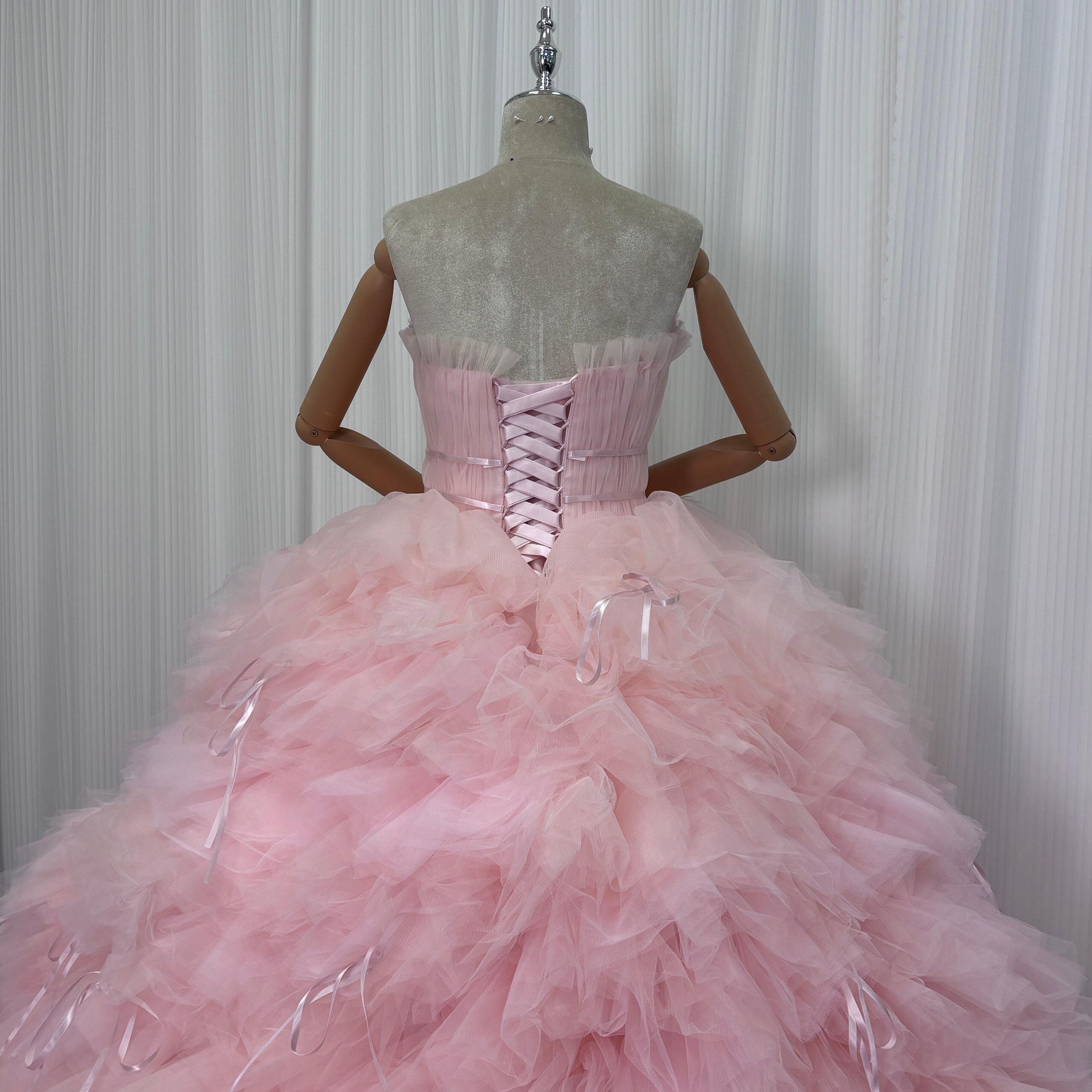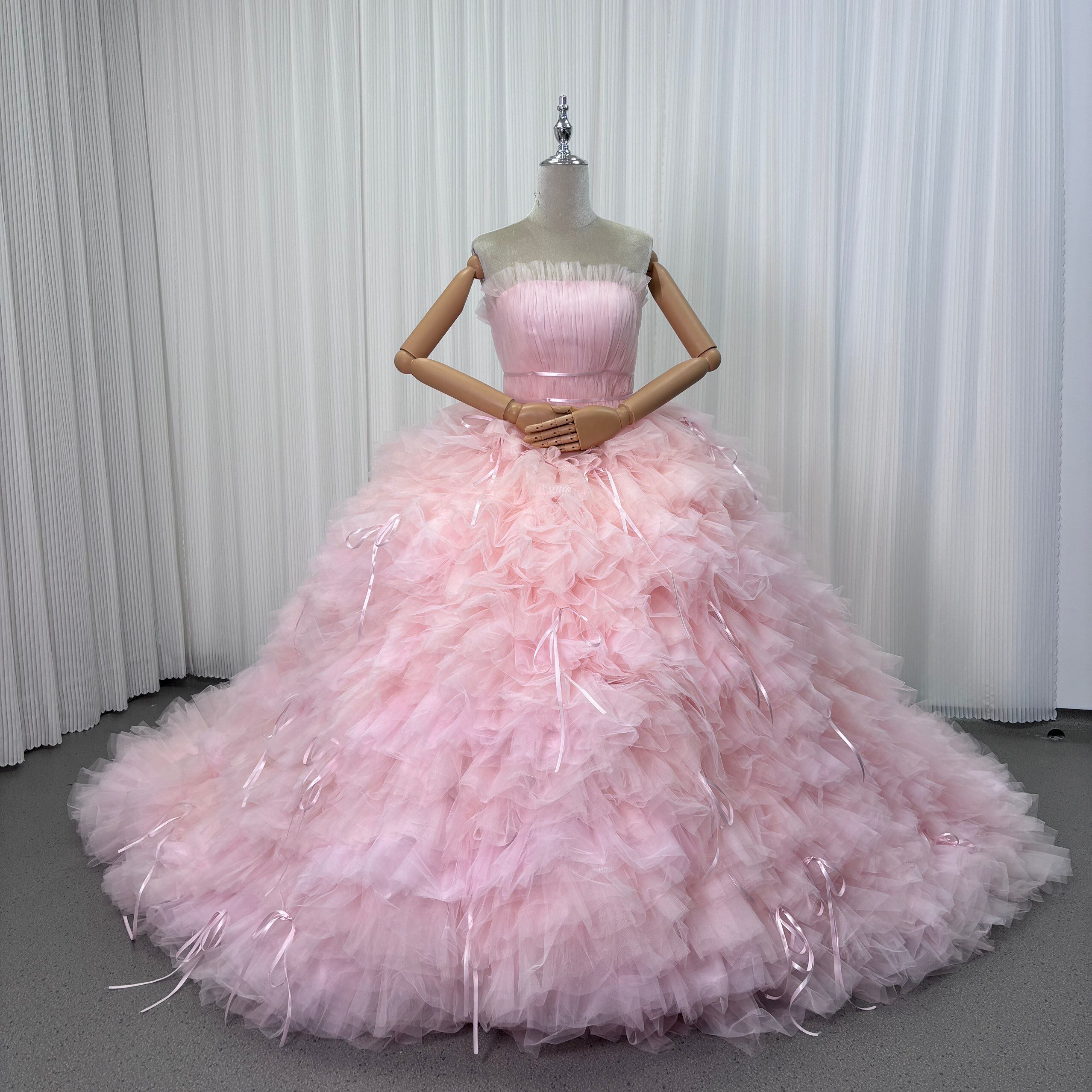 カラードレス ピンク プリンセスライン 取り外し可能な付け袖 編み上げ リボン 抜群におしゃれ度が際立つ 結婚式