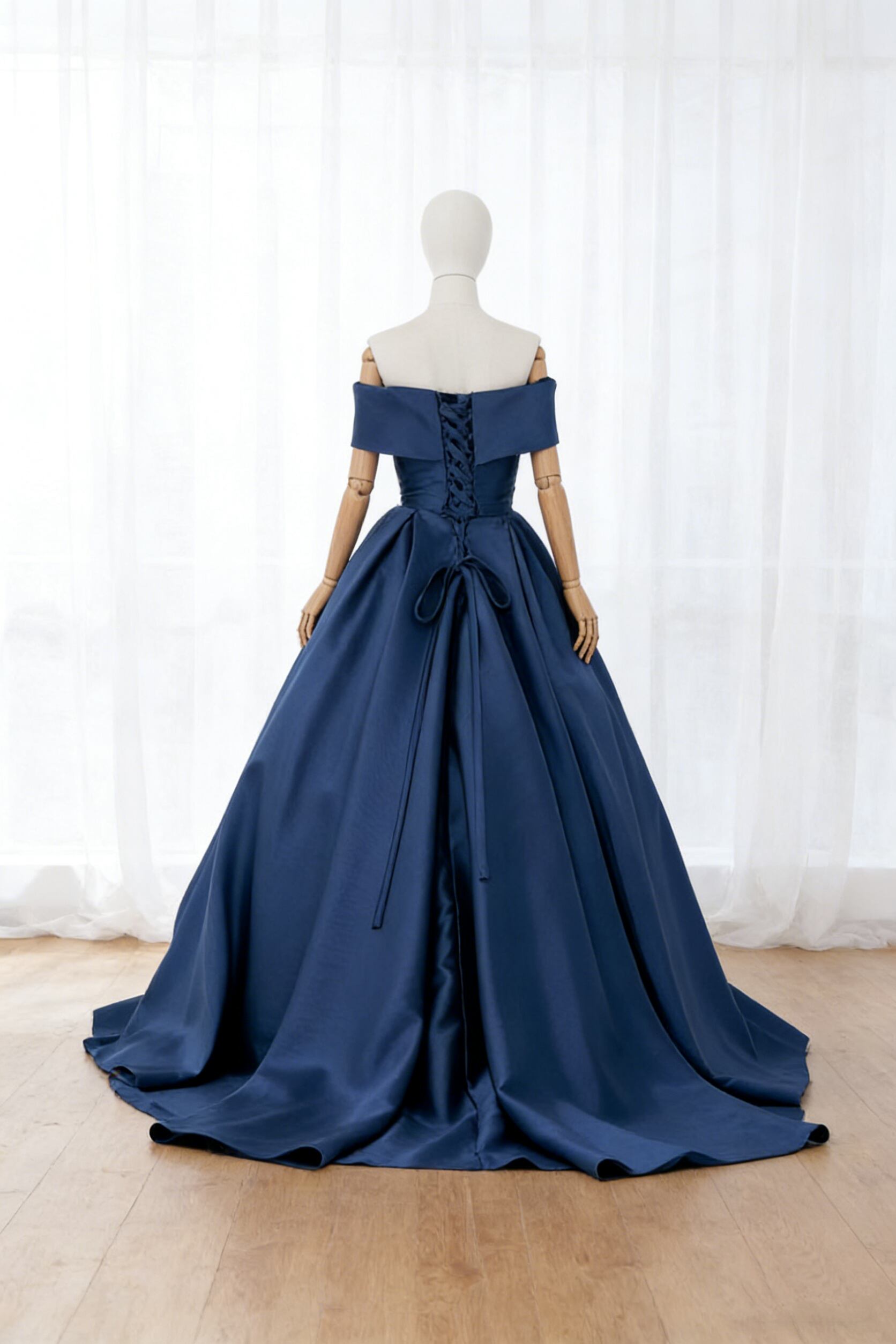 カラードレス オフショルダー ネイビー スレンダーライン 編み上げ エレガント 結婚式 二次会 ロング