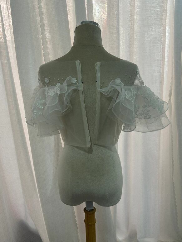 大人気上昇!オフホワイト 取り外しオフショルダー キラキラチュール 結婚式/披露宴