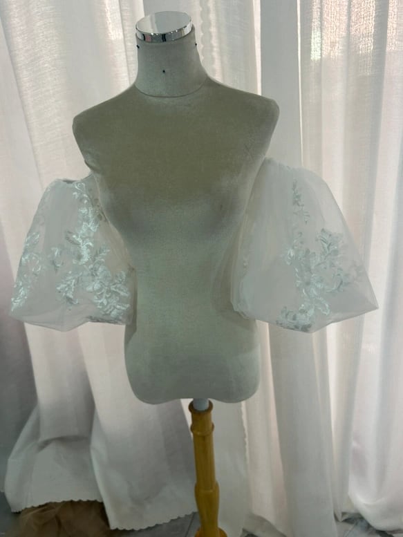 大人気上昇美しい花レース 取り外し袖 ホワイト ショルダーの付け袖 パフスリーブ オーダー可能