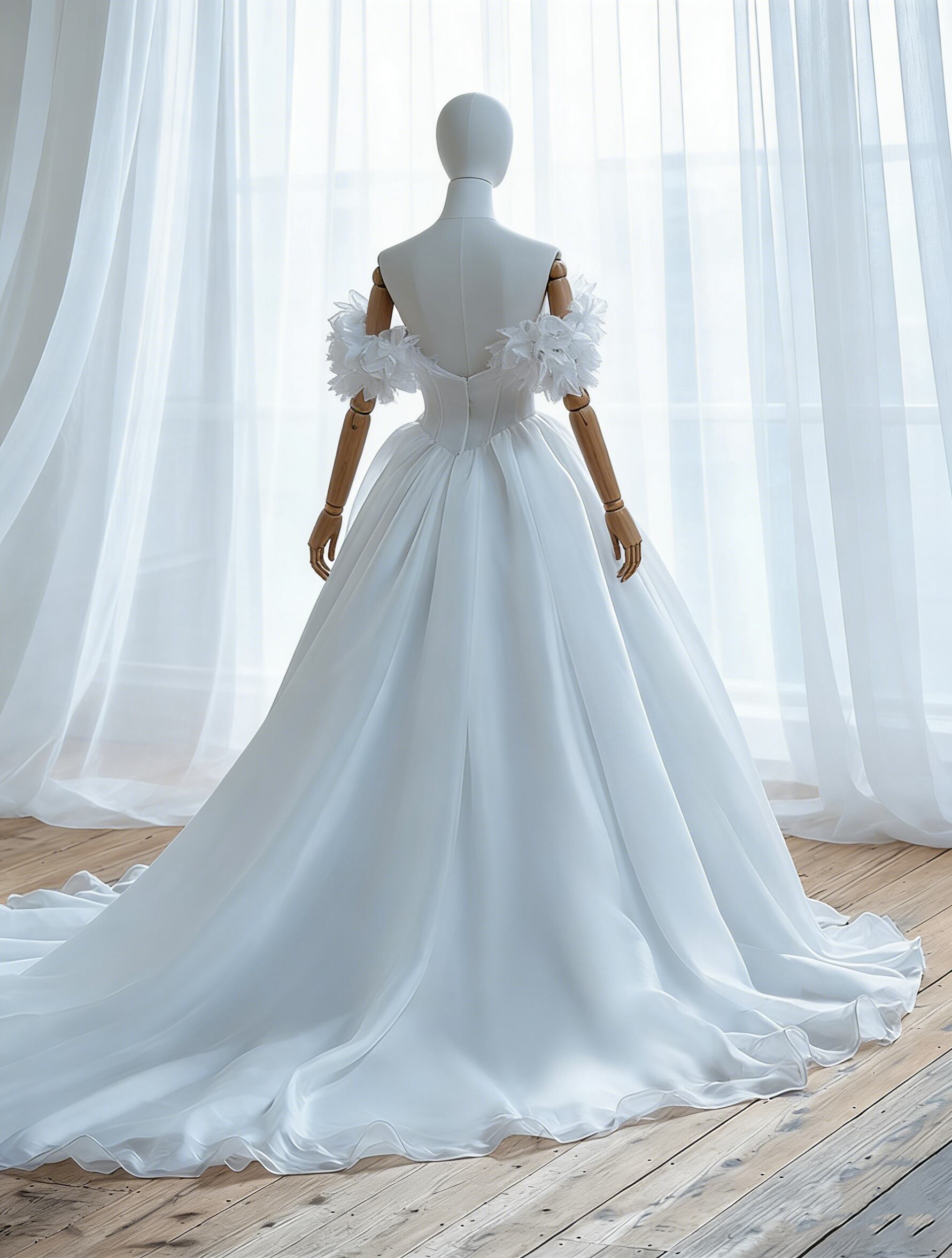 ウエディングドレス 花モチーフ オフショルダー ソフトオーガンジー オフホワイト オーダーメイド可能