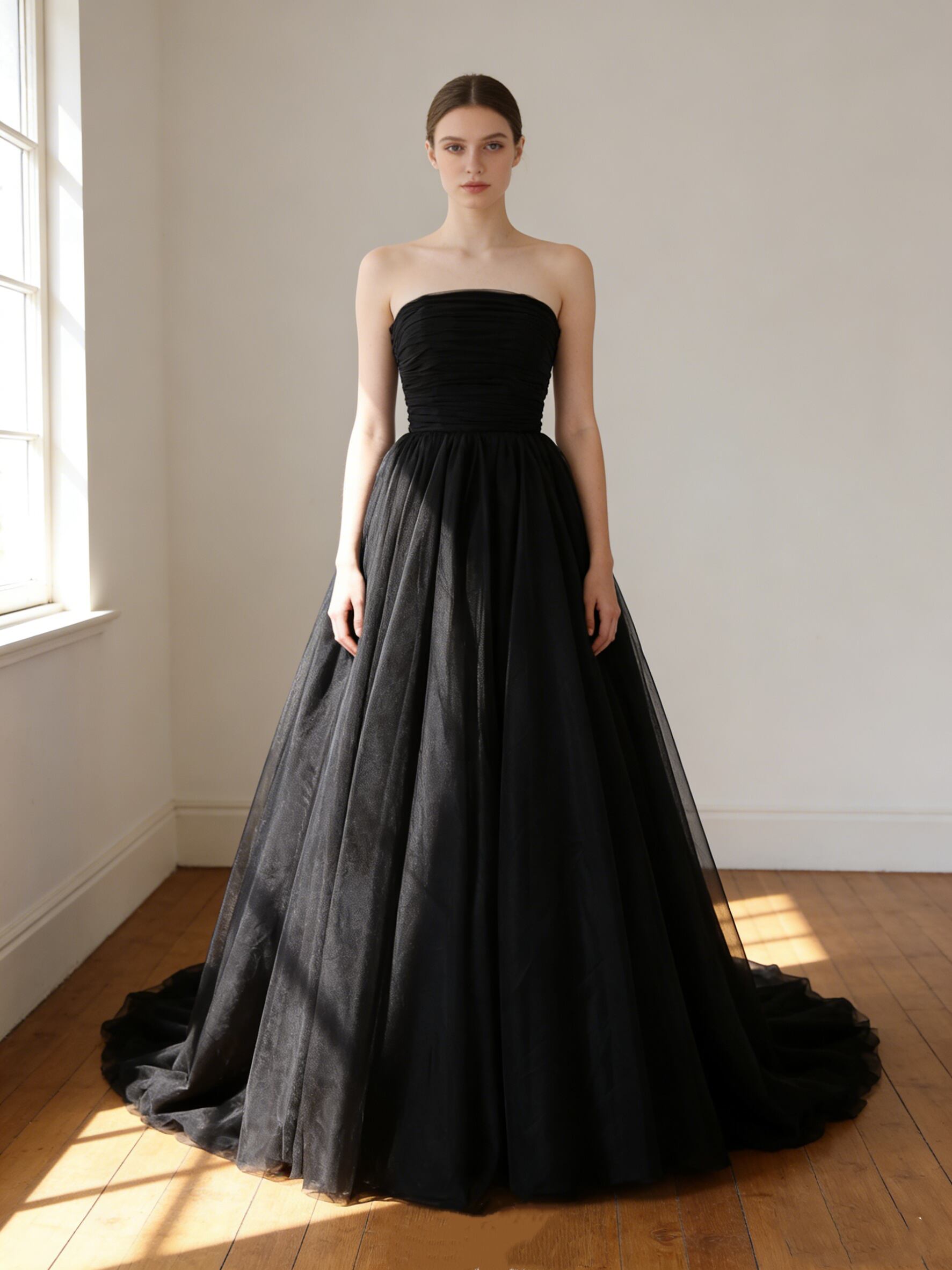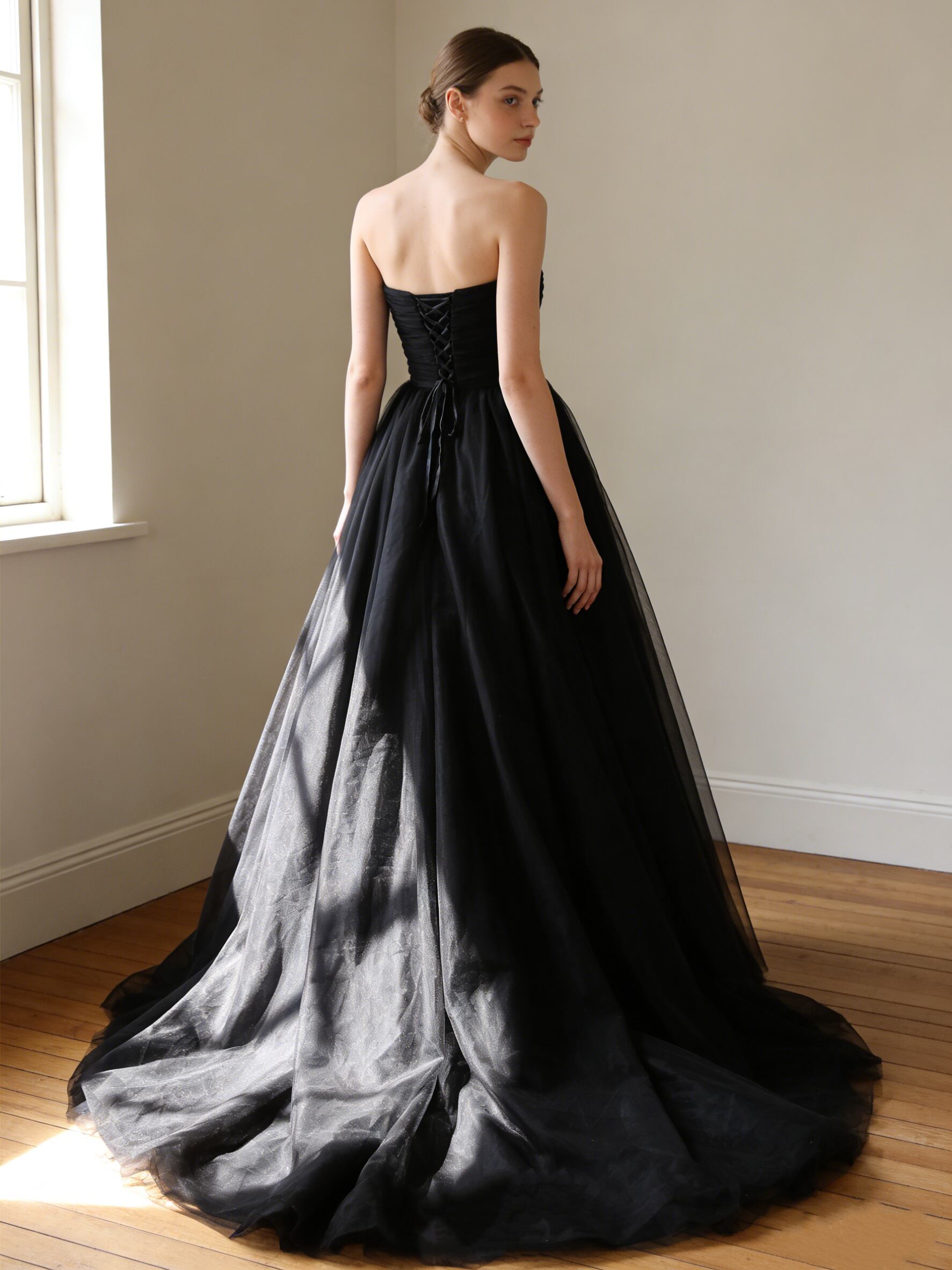 カラードレス ベアトップ ハンドドレープ 編み上げ スレンダーライン 前撮り 二次会