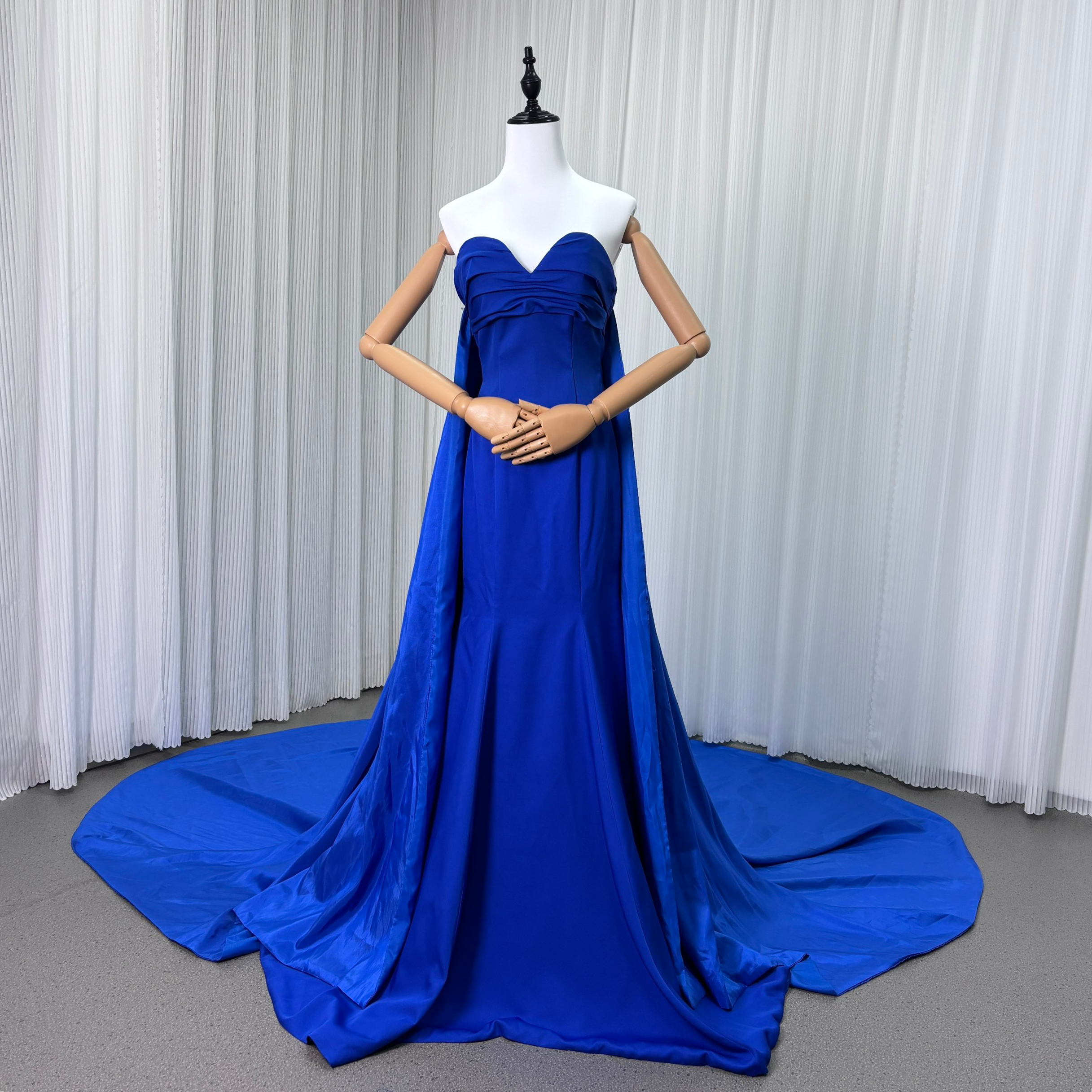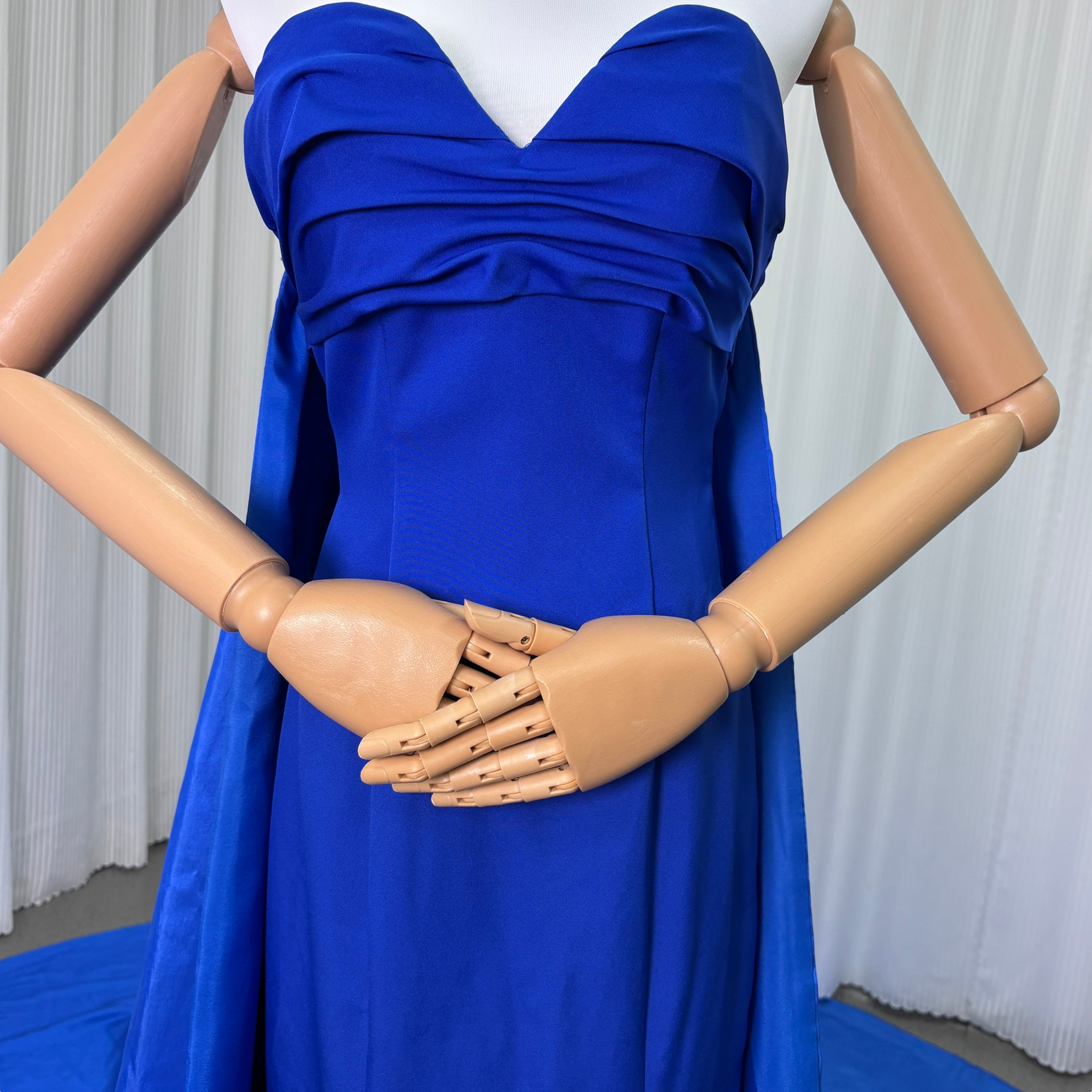 パーティードレス マーメイドライン ベアトップ ハンドドレープ ブルー 編み上げ ロングトレーン