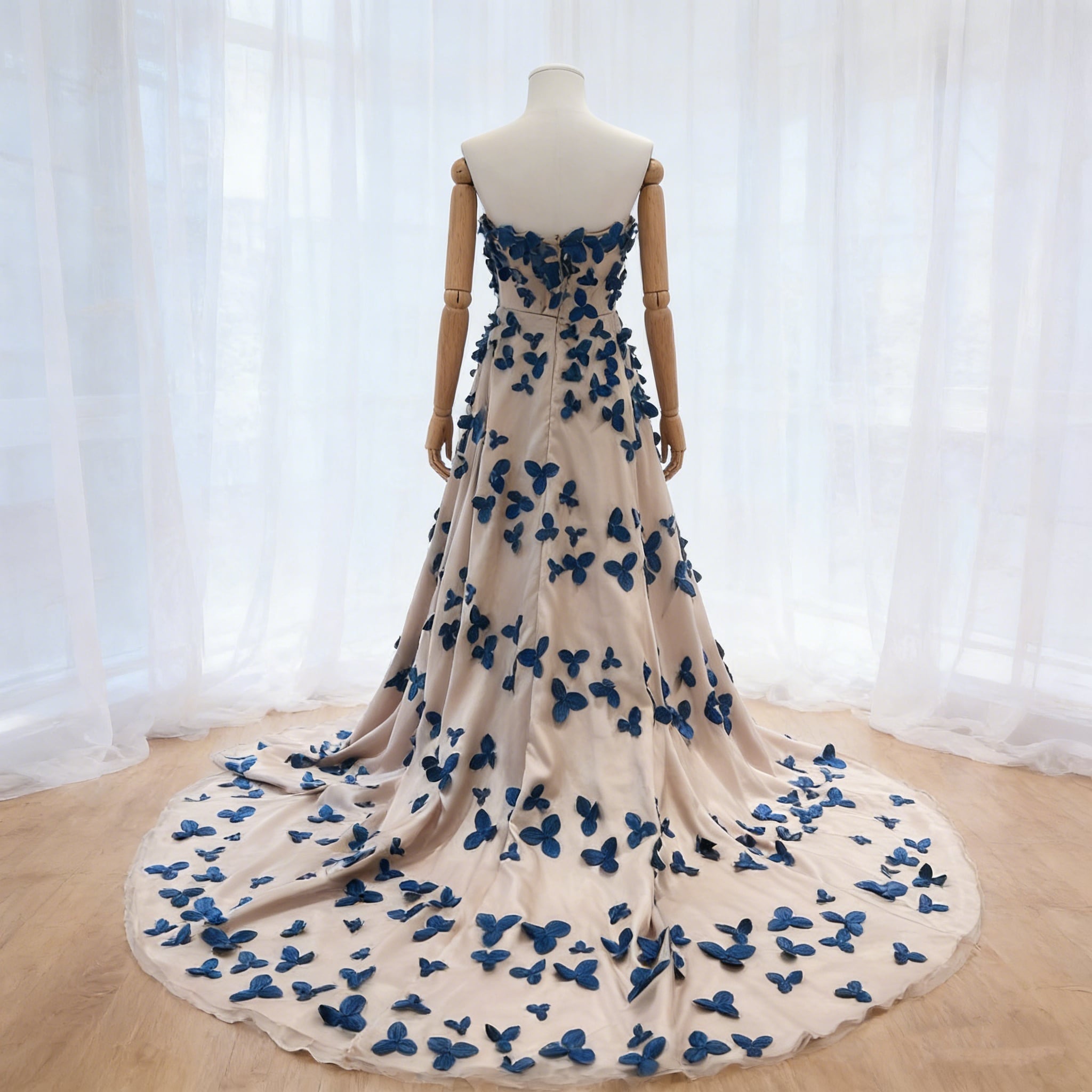 パーティードレス ビスチェドレス 花モチーフ プリンセスライン シアーな美しさ 前撮り ブライダル