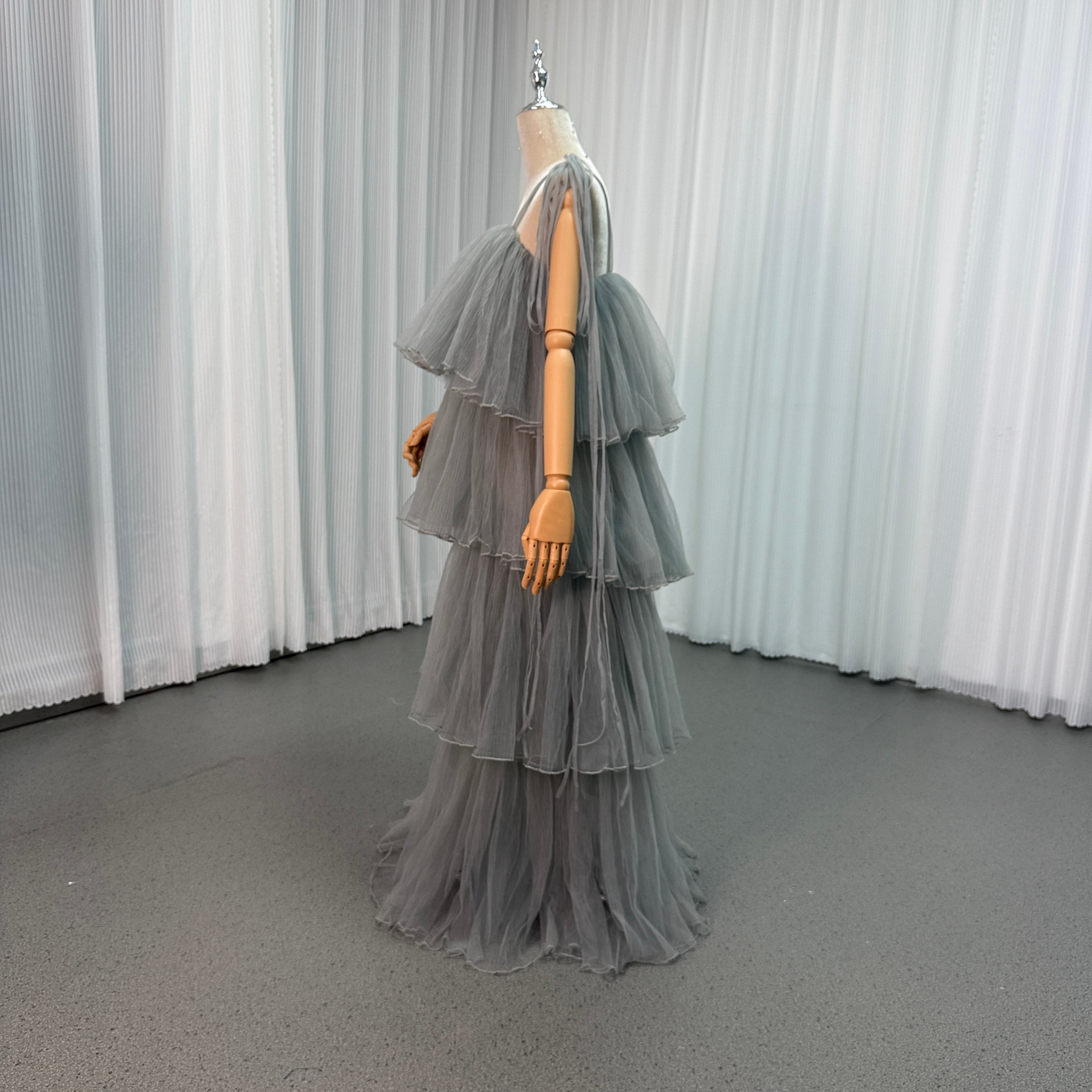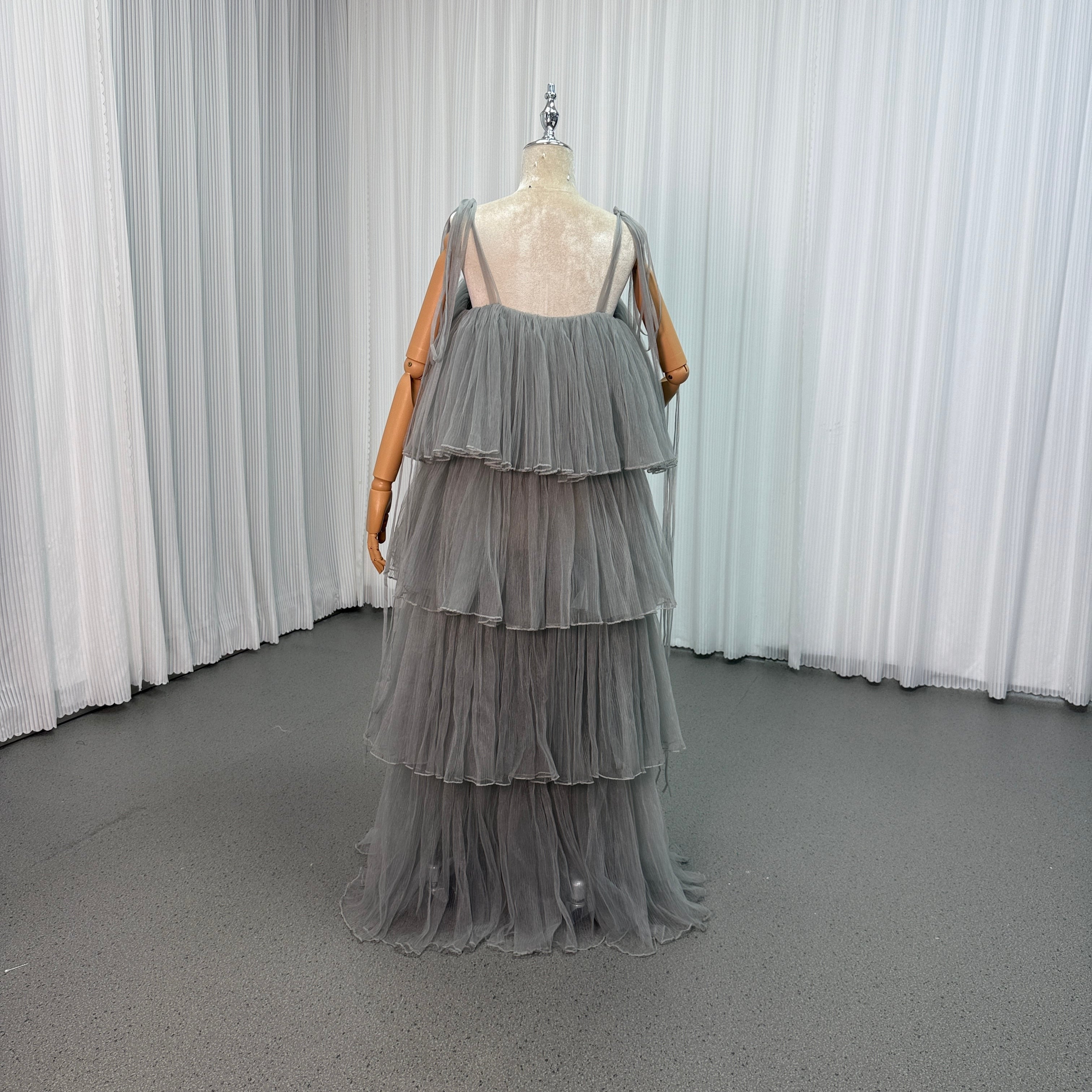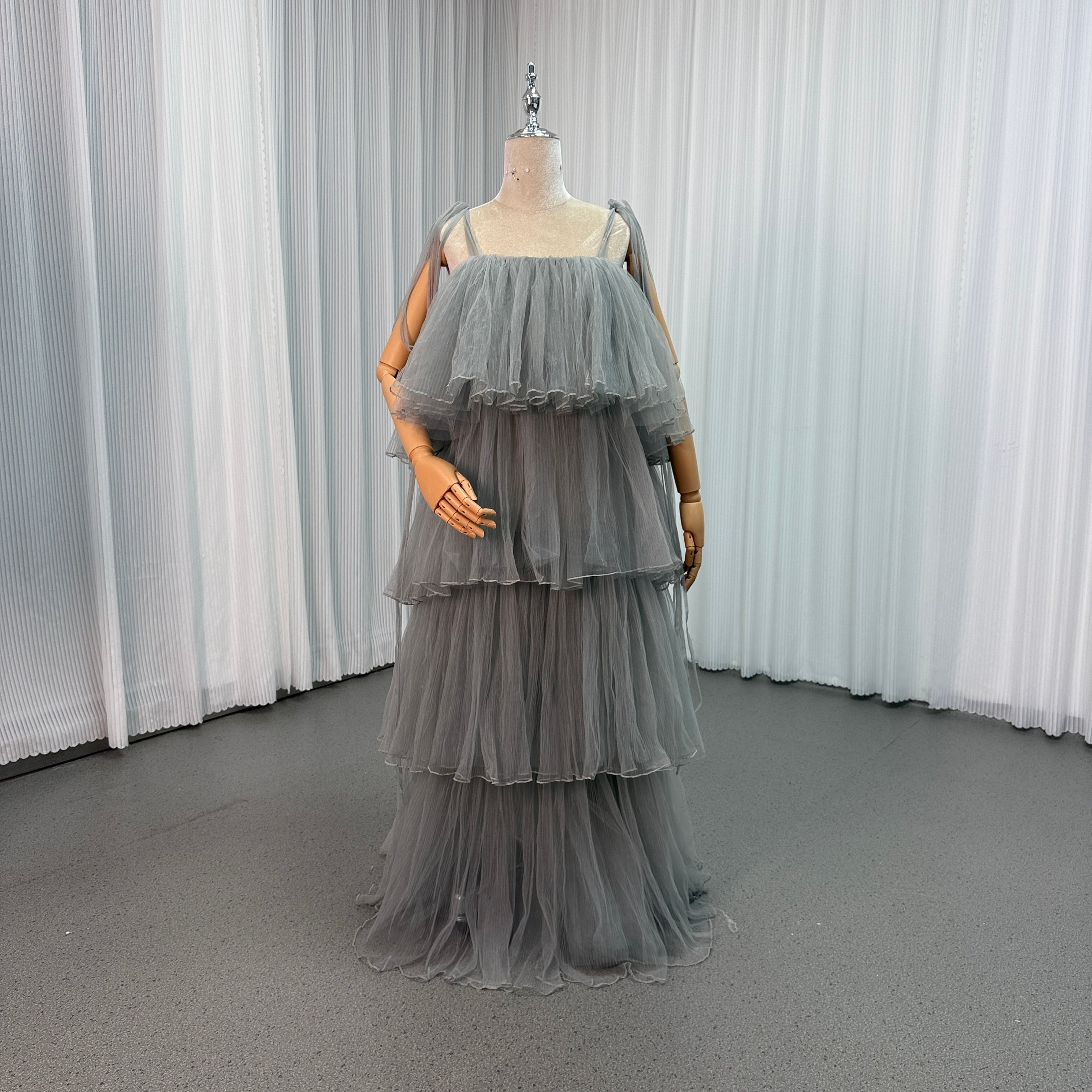 カラードレス キャミソール グレー リボン プリーツスカート ロング 二次会