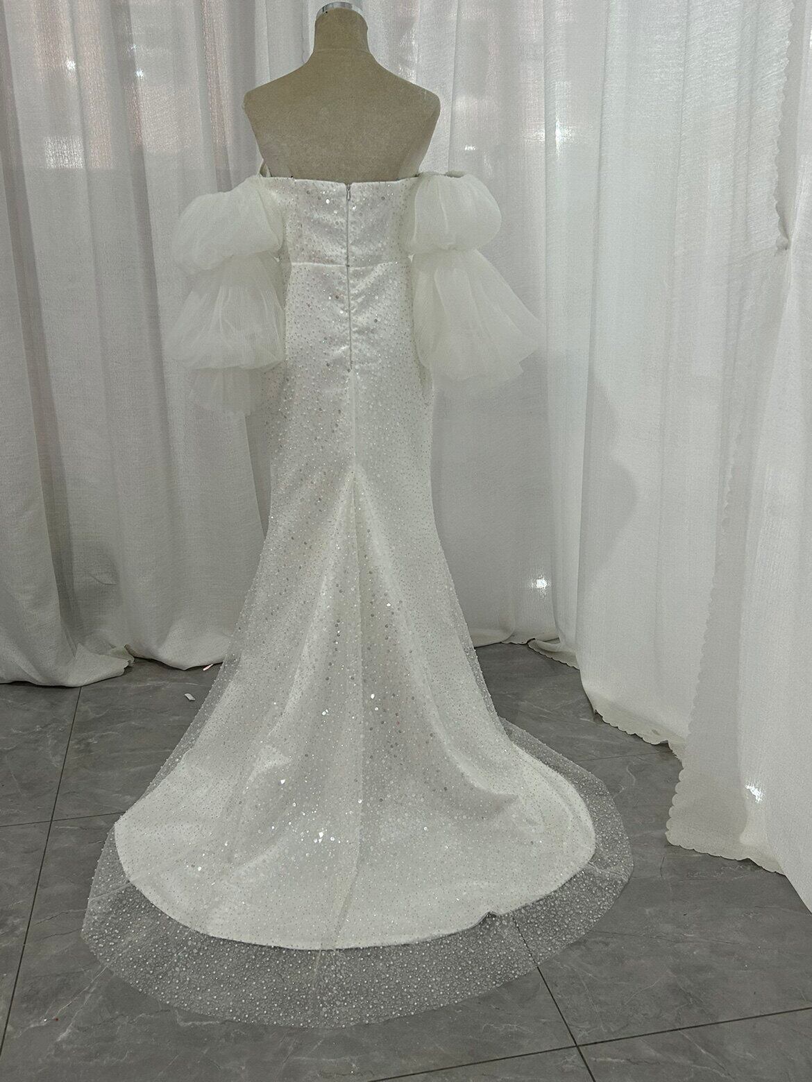 ウエディングドレス バルーンスリーブ マーメイドライン インポートビジューレース ファスナー 結婚式 優雅なシルエット